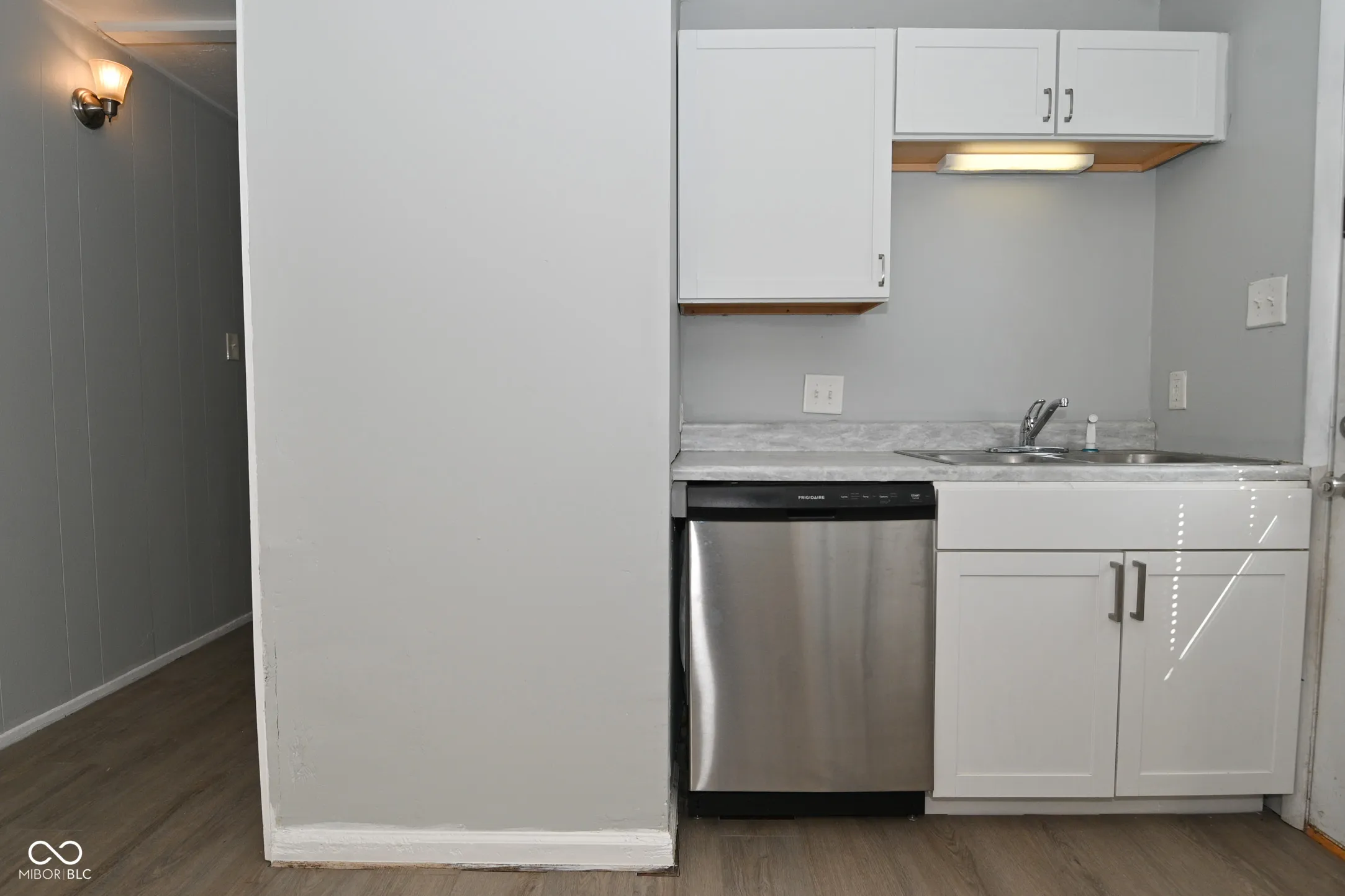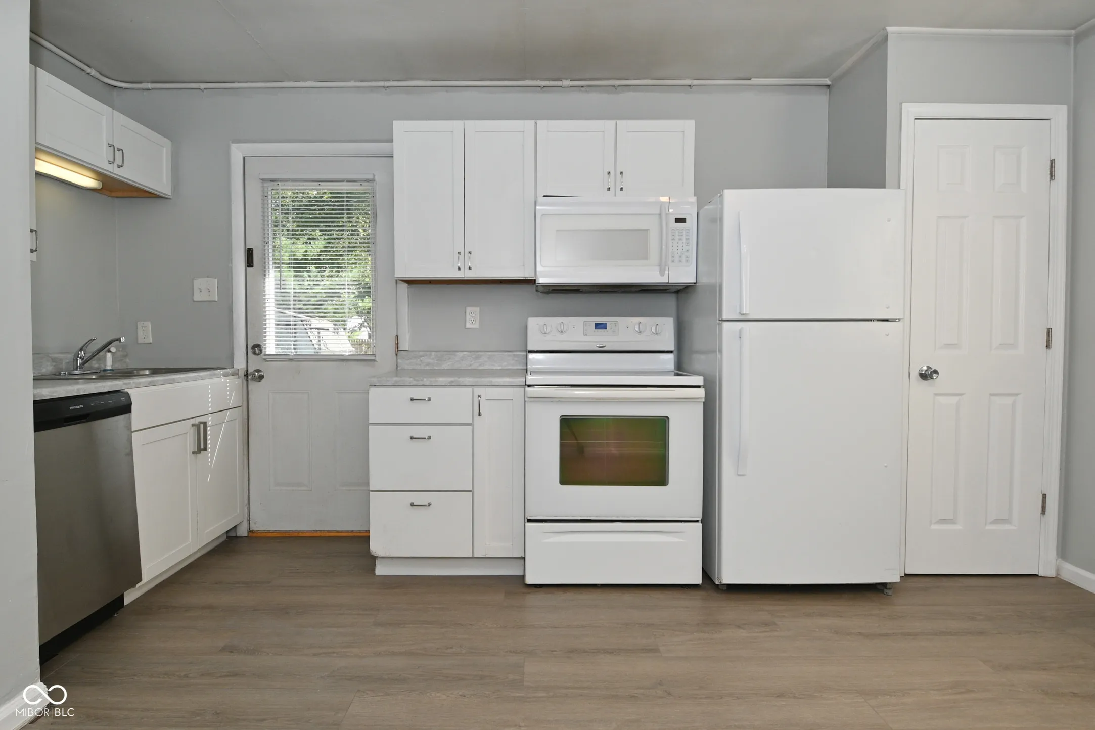 Nestled at 455 Southgate DR in Greenwood, IN, this inviting home in Johnson County offers a wonderful opportunity; it is ready for you to move in. Recent updates include brand new carpet in the living room and the three bedrooms, new engineered hardwood in the hallway and kitchen, new paint throughout the interior of the house, a new kitchen sink and counter tops, and a newer roof. The water heater is only one year old. The living room offers a warm and welcoming atmosphere, highlighted by a beautifully beamed ceiling; imagine relaxing in this space, where the architectural detail adds character and charm. The kitchen is equipped with shaker cabinets enhanced with crown molding, creating a stylish area for culinary endeavors. This single-family residence includes three bedrooms and one full bathroom within its 960 square feet of living area. The property also features a partially fenced backyard and a shed, all situated on a generous 7200 square foot lot. Built in 1958 on a slab foundation, this home offers a blend of classic charm and modern convenience. This Greenwood residence presents an opportunity to establish yourself in a comfortable and conveniently located home.