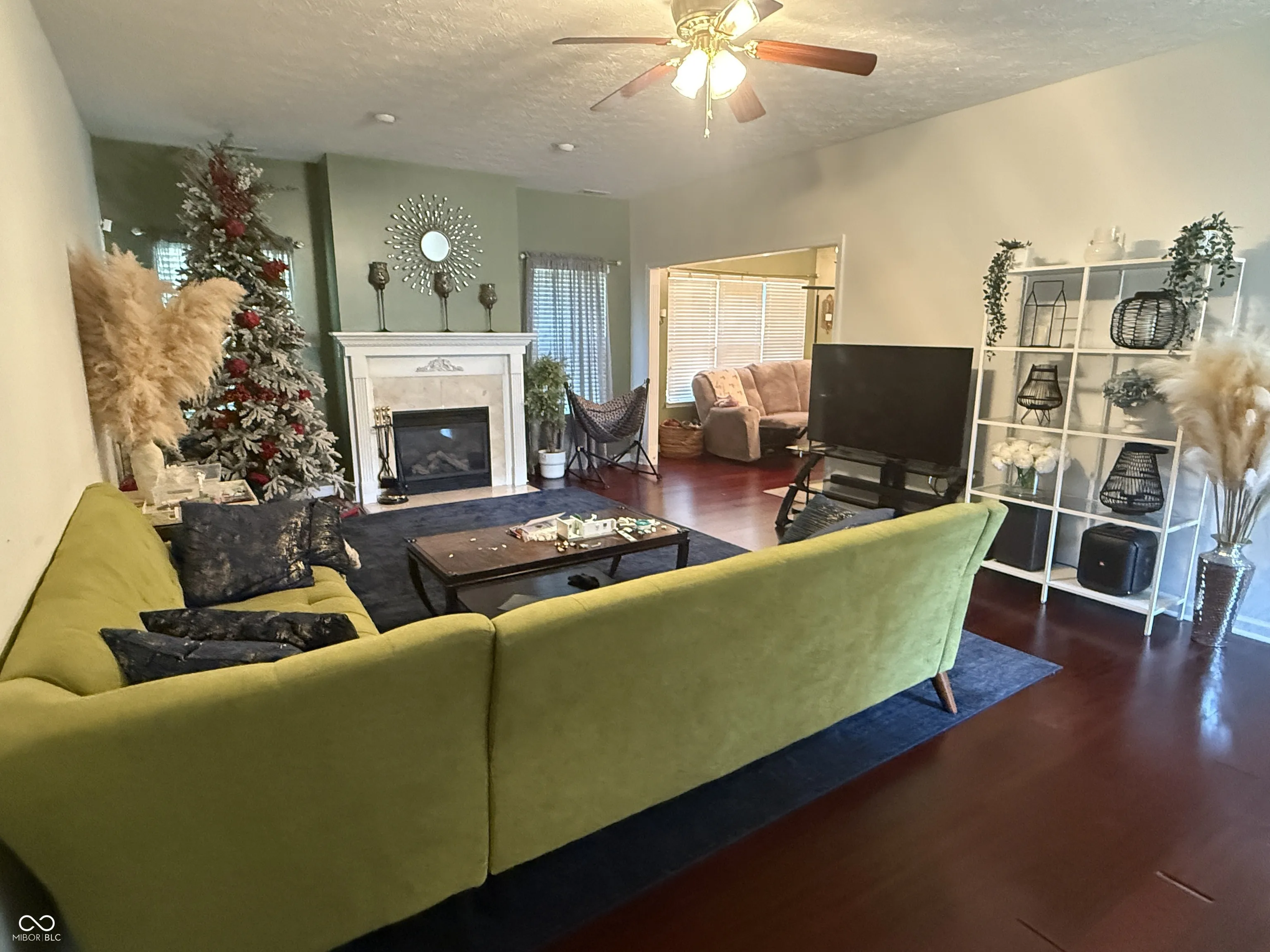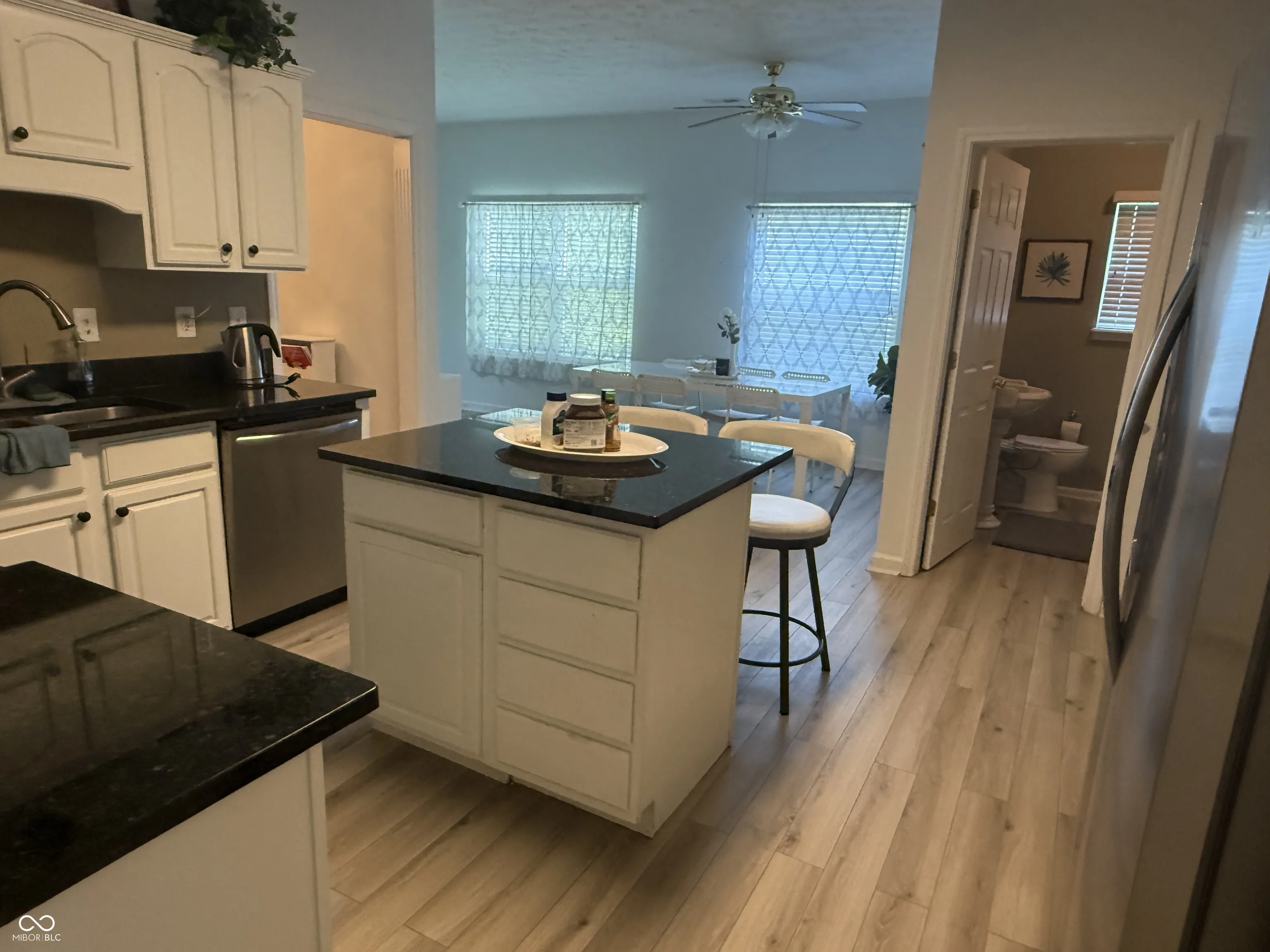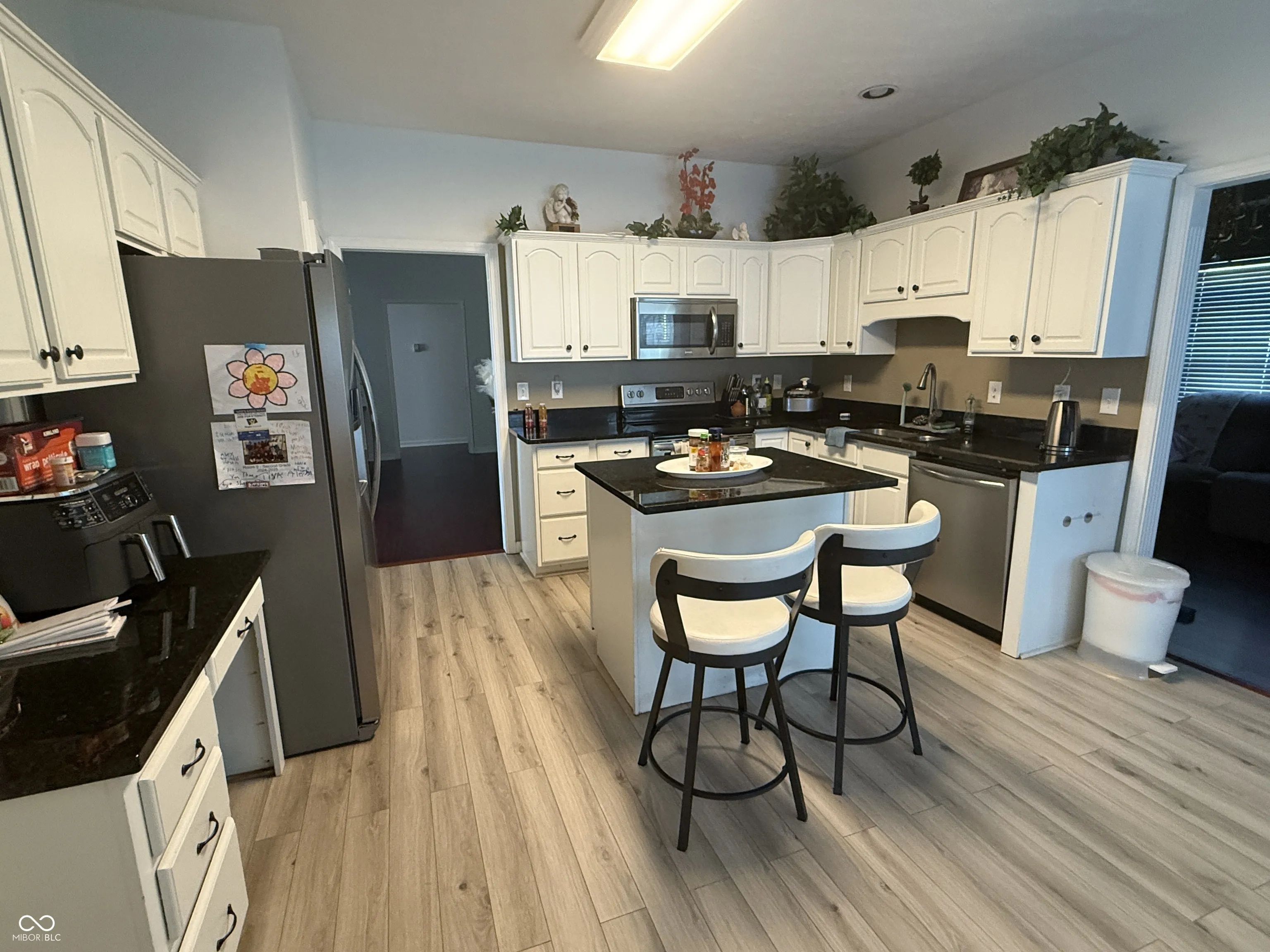 The Magnolia is a small custom community just off of 135. Imagine having plenty of space in the 22×14 living room which is large enough for two couches or a large sectional with the gas fireplace heating up the room as the weather cools in the near future. The kitchen is truly a focal point, featuring granite countertops and a large kitchen island, perfect for preparing meals and enjoying casual dining at the kitchen bar. Lots of cabinets plus a pantry. Best feature of kitchen is the breakfast area which is large enough for a farmhouse table plus the extended breakfast area has flex space that could double as a home office, playroom or sitting area. Several rooms have raised ceilings. Formal dining room currently used as a den but opens from kitchen and also into living room. This ranch home has three bedrooms and two full bathrooms plus a half bath (which is unusual for a ranch home) that serves as a combination laundry room/bathroom. Cabinet space is galore in the laundry/bath area too! Backyard has a large concrete patio (trampoline does not stay) and the yard has plenty of space for the little ones to play. Mini barn stays! Home is 1857 sq ft but feels much larger! This home is designed for comfortable living and priced well for its custom features! Laminated Hardwood throughout except for entry and bathrooms which are tiled.