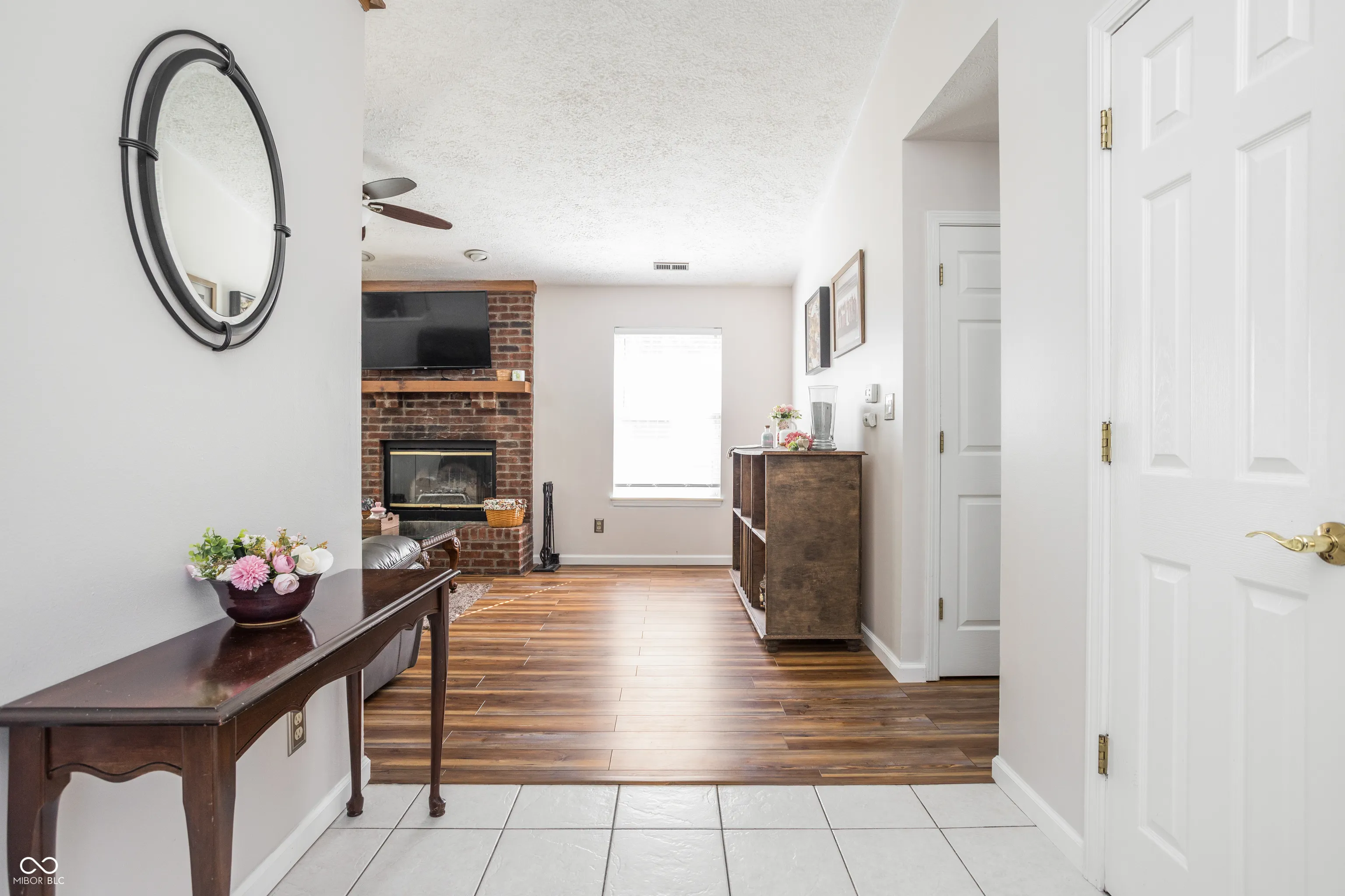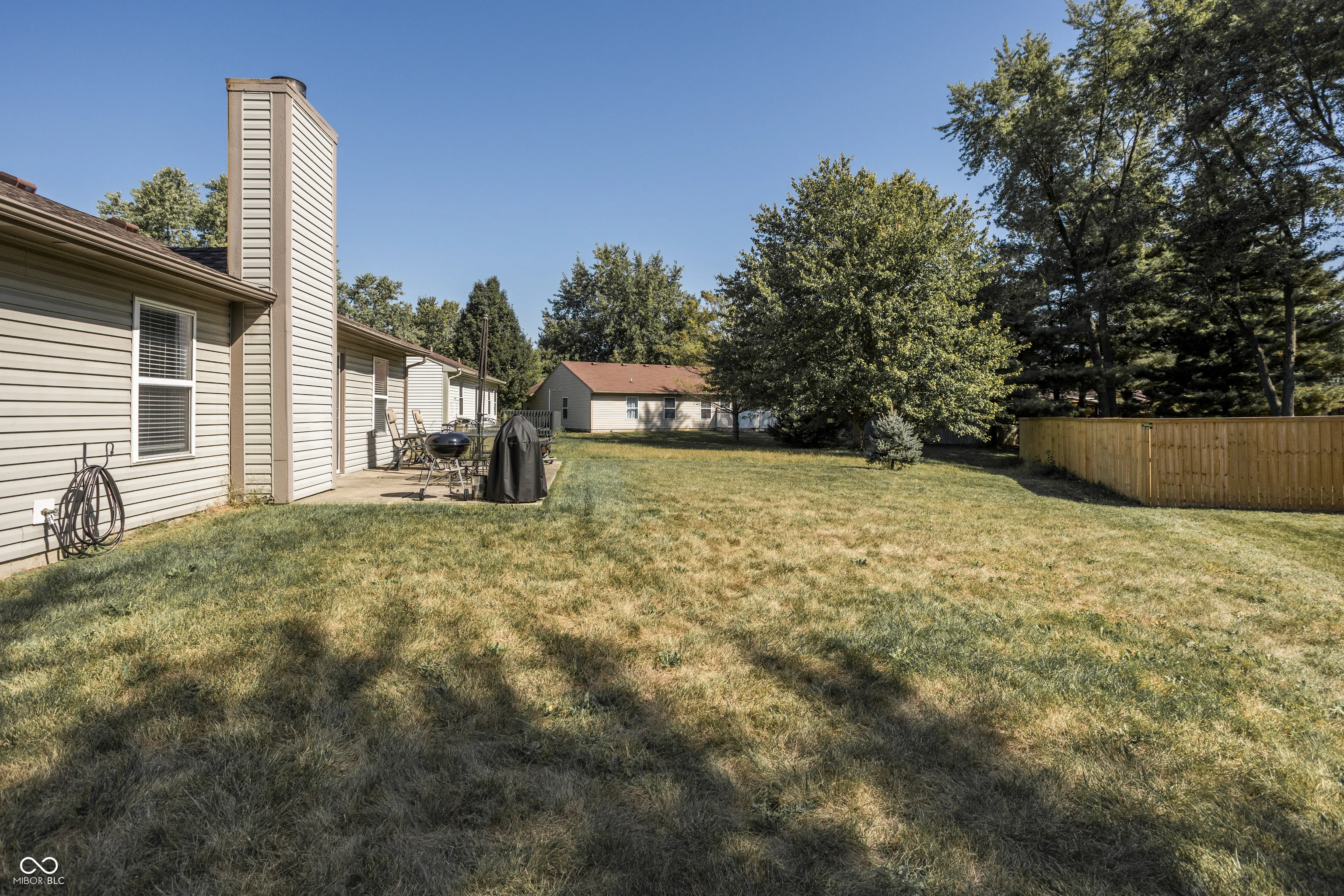 Discover easy living in this beautifully maintained ranch-style home! Located in Wayne Township Schools, this 3-bedroom, 2-bath home offers both comfort and convenience in a peaceful setting within walking distance to the B&O Trail and just 10 minutes from Eagle Creek Park and Golf Course, where you can enjoy miles of trails, kayaking, and scenic lake views. Step inside to a bright entryway leading to a spacious open floor plan with luxury vinyl plank flooring and a cozy wood-burning fireplace in the living room – perfect for relaxing evenings. The eat-in kitchen provides plenty of counter space, natural light, and room to gather with family or friends. The split floor plan is ideally set up with the primary suite on one side and two additional bedrooms on the other, offering privacy and functionality. The primary suite also includes a handicap-accessible shower for added comfort. Outside, enjoy the private, tree-lined backyard or take a stroll around the community’s two scenic ponds, the perfect backdrop for morning walks or sunset views.