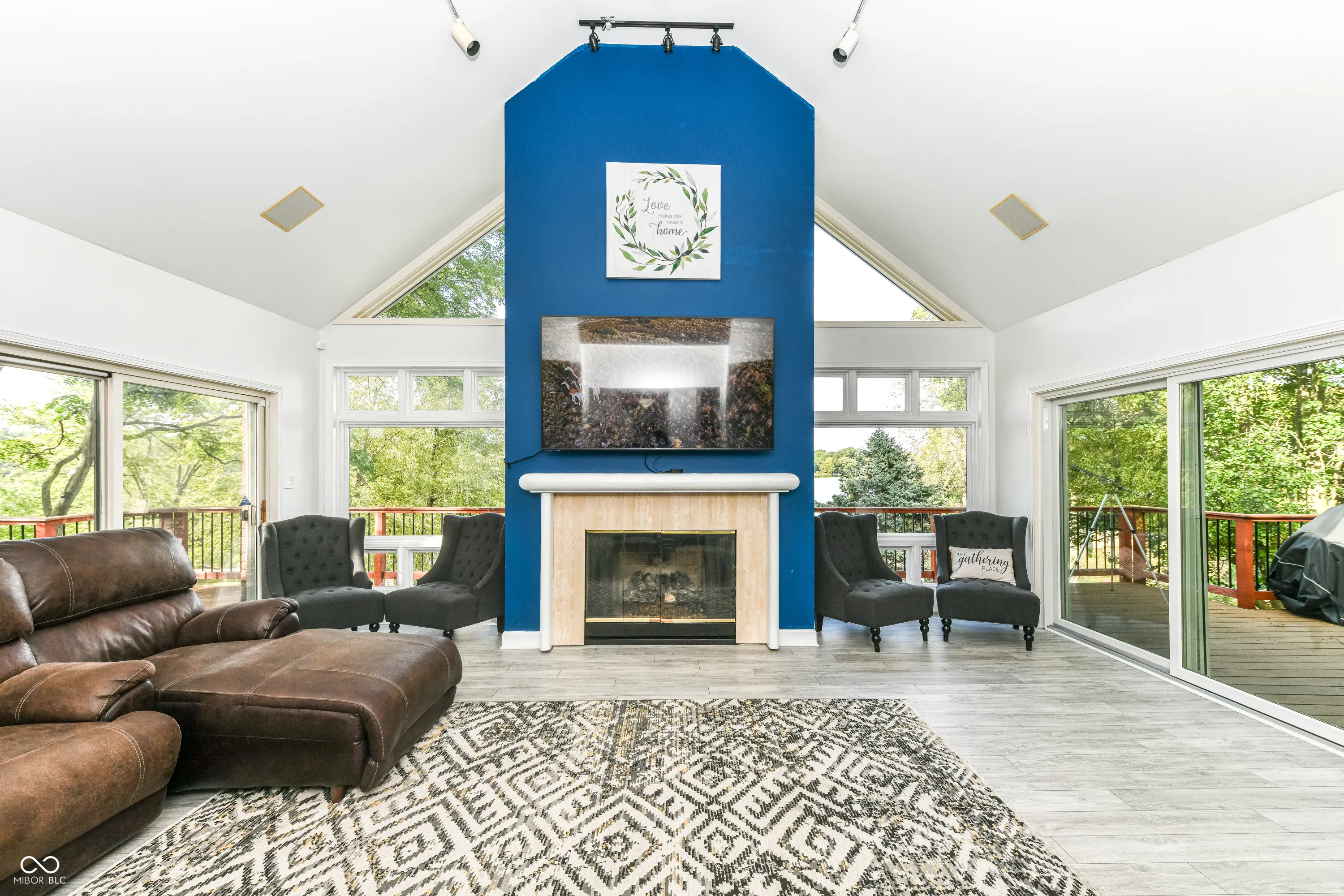 Lake Life with Style and Space! Welcome home to this beautifully updated ranch-style retreat with a walkout basement and serene lake views from the owner’s suite, family room, and lower level. From the moment you enter, the marble tile entryway sets the tone for the elegance throughout. The main level features all new luxury vinyl plank flooring, an updated kitchen with sleek new countertops and an induction cooktop, french-door wall oven, plus a dining room designed for entertaining. Allow me to point out the stylish smart blinds gracing the dining room windows! The family room impresses with vaulted ceilings, a cozy wood-burning fireplace, plenty of space for entertaining and open to the expansive deck area. The owner’s suite is a private escape with screened porch access, a fireplace, and custom built-ins. The en suite bath offers a new walk-in shower, updated Jacuzzi tub, dual sinks and of course towel warmers. The walkout basement expands your living space with 9-foot ceilings, a wood-burning fireplace, a full bath, and in-law quarters complete with a sitting room and kitchenette-ideal for guests or multi-generational living. Whether you’re enjoying morning coffee on the porch, hosting friends in the dining room, this home blends comfort, versatility, and lakefront tranquility in every detail. For the active members theres lap swimming, boating on your 18′ fishing pontoon (Parti Kraft 180 ES 25 hrs on the motor) kayaking or paddle-boating.