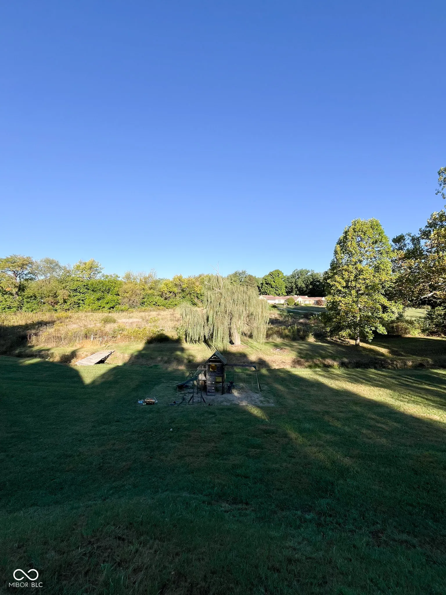 This charming two-story home offers a perfect blend of in-town convenience and country-like aesthetic. Situated on a rare 3.72-acre lot in Ladoga, this property offers an expansive setting featuring mature trees, a creek, and a livestock barn. This home greets you with a large foyer and an open staircase, with access to a large living room featuring French doors. The dining room anchors the center of the home with beautiful hardwood floors and space for large family gatherings. The adjoining kitchen features a large pantry, access to a dedicated laundry room, and the main floor full bathroom. There are three bonus rooms that round out the main level floor plan, offering opportunities for an office, play room, exercise room, or hobby space. Upstairs, you will find a full bathroom and three bedrooms, including a generous primary bedroom with double closets. A floored attic provides ample extra storage space. The exterior is just as impressive, with features perfect for summer fun and hobbies. Enjoy a covered porch and a main-level deck. For the hobby farmer or animal lover, the versatile two-story barn comes equipped with livestock stalls and provides direct access to the pasture. The property also includes an oversized 2-car detached garage.
