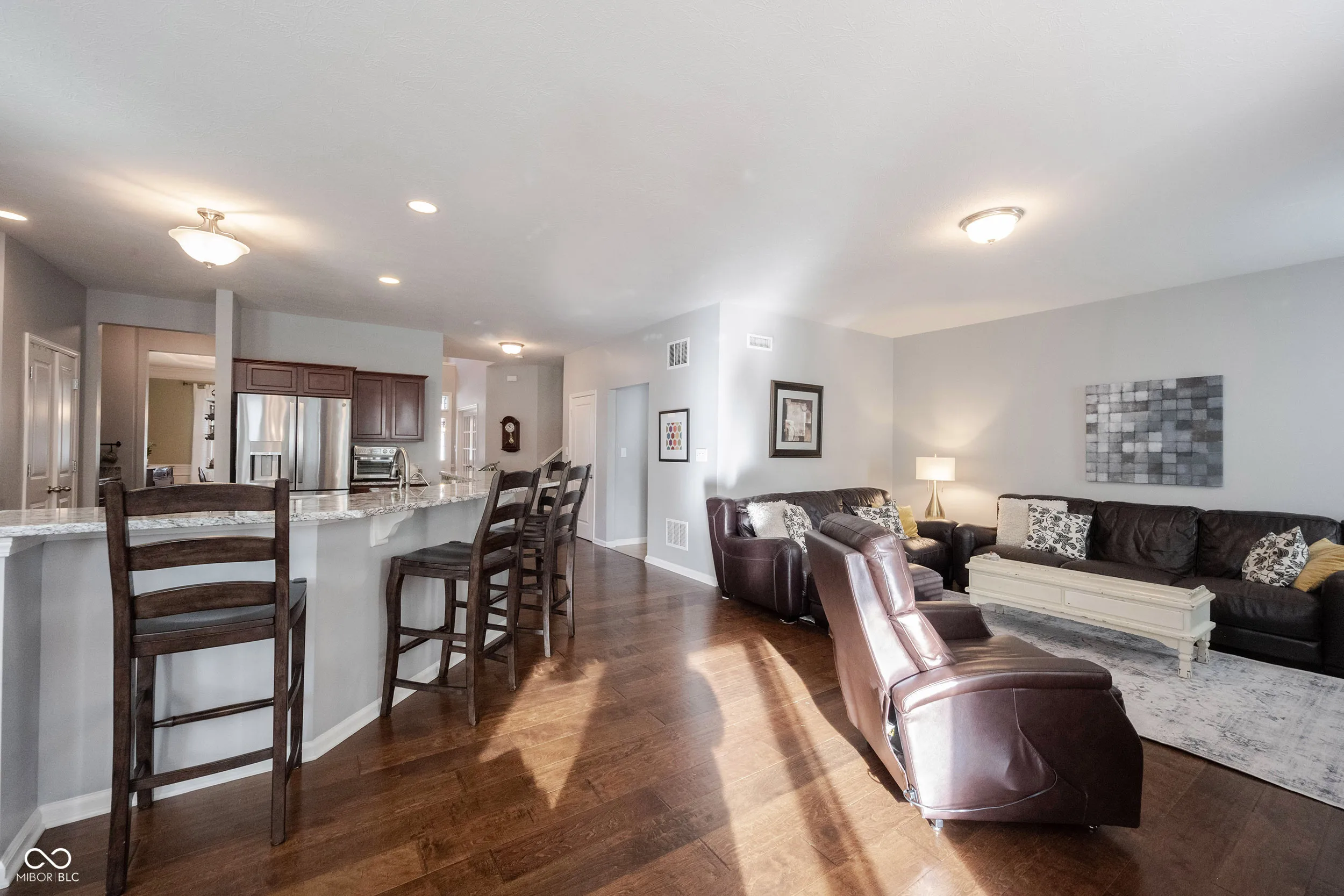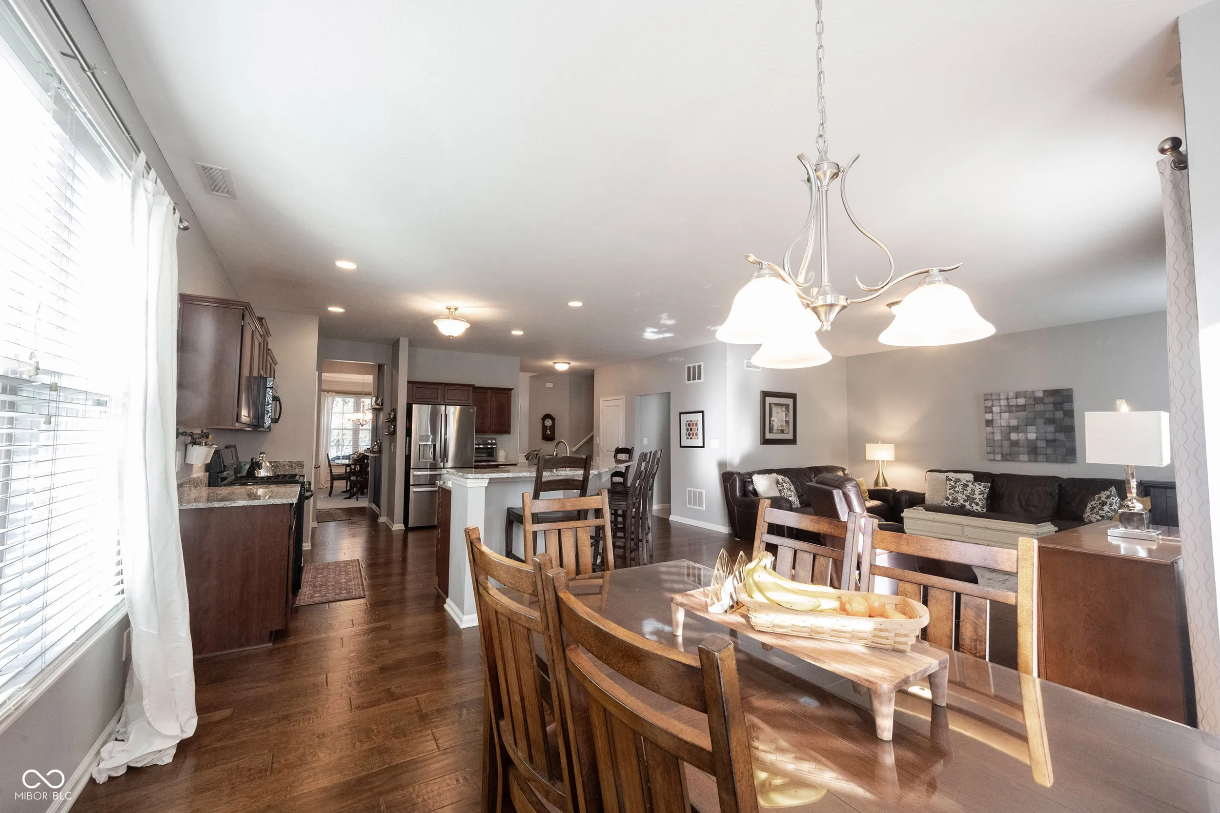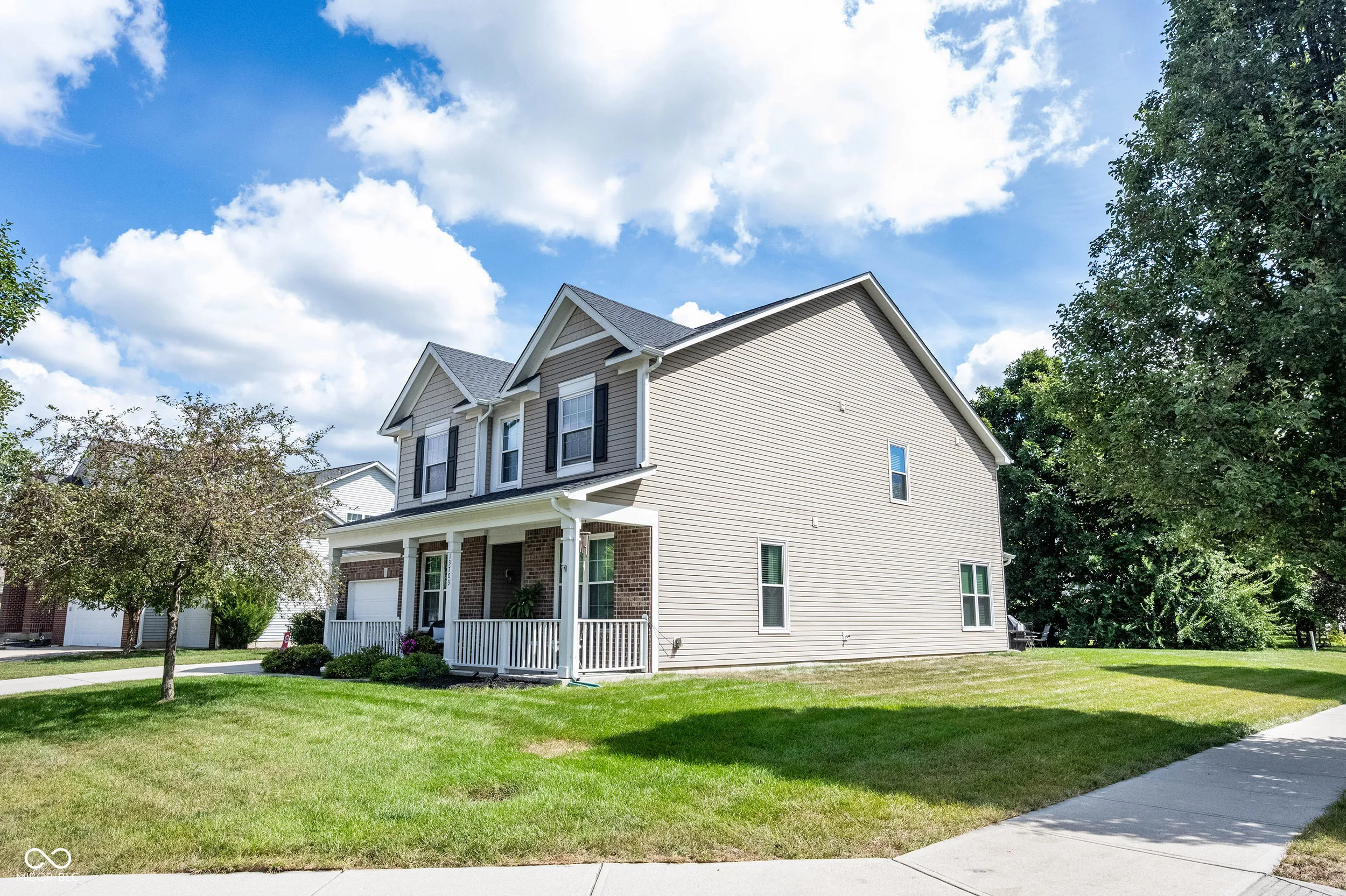 Welcome to this beautifully maintained 4-bedroom, 2.5-bathroom home, perfectly situated in the heart of Fishers. Boasting exceptional curb appeal, the home features a large covered front porch, ideal for relaxing and enjoying the peaceful, welcoming neighborhood. Step inside to an inviting main floor with an open-concept layout connecting the family room, breakfast nook, and kitchen (all with hardwood flooring) – perfect for everyday living and entertaining. A formal living room, dining room, and half bathroom complete the main level. Upstairs, all four bedrooms provide ample space and comfort. The primary suite features a walk-in closet and a private bathroom with double sinks. The second full bathroom, also with double sinks, serves the remaining bedrooms. Convenience is key with the laundry room located on the upper level. Additional highlights include a spacious garage with extra storage and wiring for an electric vehicle. The community offers fantastic amenities, including a pool, two parks, and a wooded walking trail. The location is ideal – close to everything Fishers has to offer while maintaining a quiet, peaceful setting. This home combines style, comfort, and convenience, all within a vibrant and bike-friendly neighborhood. Don’t miss the opportunity to make it yours! Welcome home!