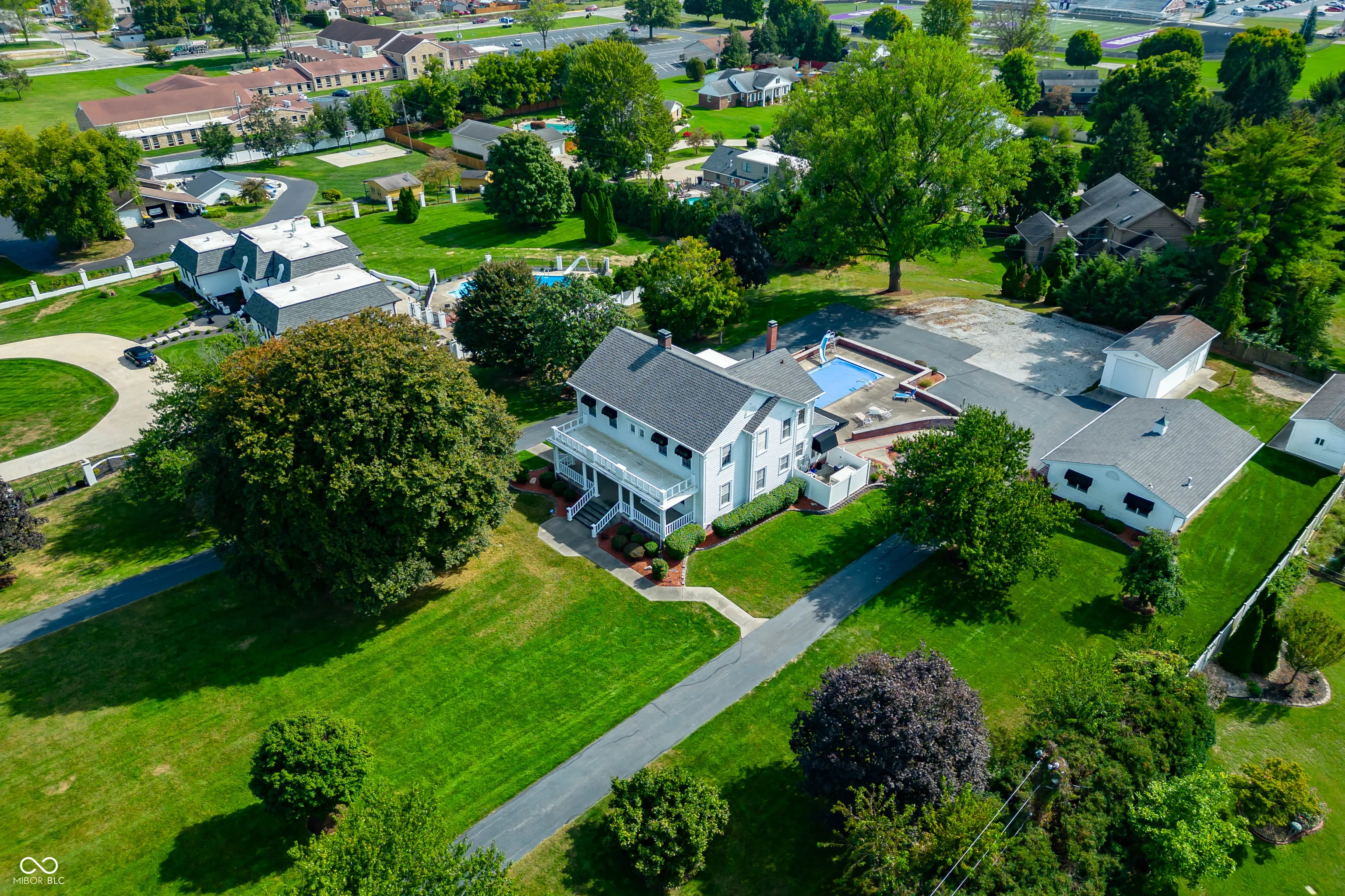 Step back in time with this beautifully preserved 1920 American Colonial home that blends timeless charm with modern-day comfort. Located in a peaceful, established neighborhood, this stately 5-bedroom, 3-bath residence showcases classic craftsmanship with its symmetrical facade, tall windows, and welcoming front porch that invites you right in. Inside, you’ll be greeted by warm hardwood floors, tall ceilings, and intricate woodwork that echo the character of a bygone era. The spacious living room offers a cozy setting for gatherings, complete with large windows that fill the space with natural light. The formal dining room is ideal for entertaining-perfectly suited for family dinners or hosting special occasions. The large kitchen is the heart of the home, offering plenty of counter space, cabinetry, and potential for personalization. A bright breakfast nook or prep area gives this space a comfortable flow that’s perfect for everyday living. With five generously sized bedrooms, including a main-level option and upper-level suite, this home provides flexible living arrangements. Each room offers its own charm-whether it’s the original wood trim, built-in shelving, or unique layout that reflects the home’s historical roots. The three bathrooms have been thoughtfully updated over time while maintaining classic details, blending functionality with character. Outside, the property features a spacious yard with mature trees, 3 garage buildings, and an ingrown pool. One garage includes a full kitchen and bathroom. There’s plenty of room for gardening, entertaining, or simply relaxing on the porch after a long day. Whether you’re drawn to its architectural history or the opportunity to make it your forever home, this property is truly a rare find. From the moment you step inside, you’ll feel the warmth, charm, and history that only a 1920 Colonial can offer. Schedule your showing today and experience the timeless beauty of this one-of-a-kind home.
