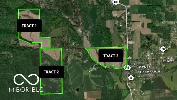 AUCTION! Sealed bids due 10/23/2025 at 5PM Tract 2 An excellent opportunity awaits to own productive farmland or expand your investment portfolio! Conveniently located near Freetown, IN, this property is offered in multiple tracts with flexible purchase options: Tract 1 (T1): 68.76 deeded acres, Tract 2 (T2): 80 deeded acres, Tract 3 (T3): 62.5 deeded acres. Each tract offers its own unique characteristics, featuring gently rolling tillable acreage, mature trees, and the perfect setting for a future rural estate. This land will be offered as 3 tracts that will be sold as individual tracts, or a whole farm option will be offered [which includes all 3 tracts]. Sealed bids due 10/23/2025 at 5PM. The nearby Hoosier National Forest provides endless recreational opportunities, while the property’s location offers quick access to Nashville, Seymour, and Columbus. Possession of the tillable land will be granted after the 2025 crop harvest. Looking for a farm that can generate a high ROI? Negotiate a crop lease with a local farmer, and hunt this farm yourself, or lease out the hunting rights also!