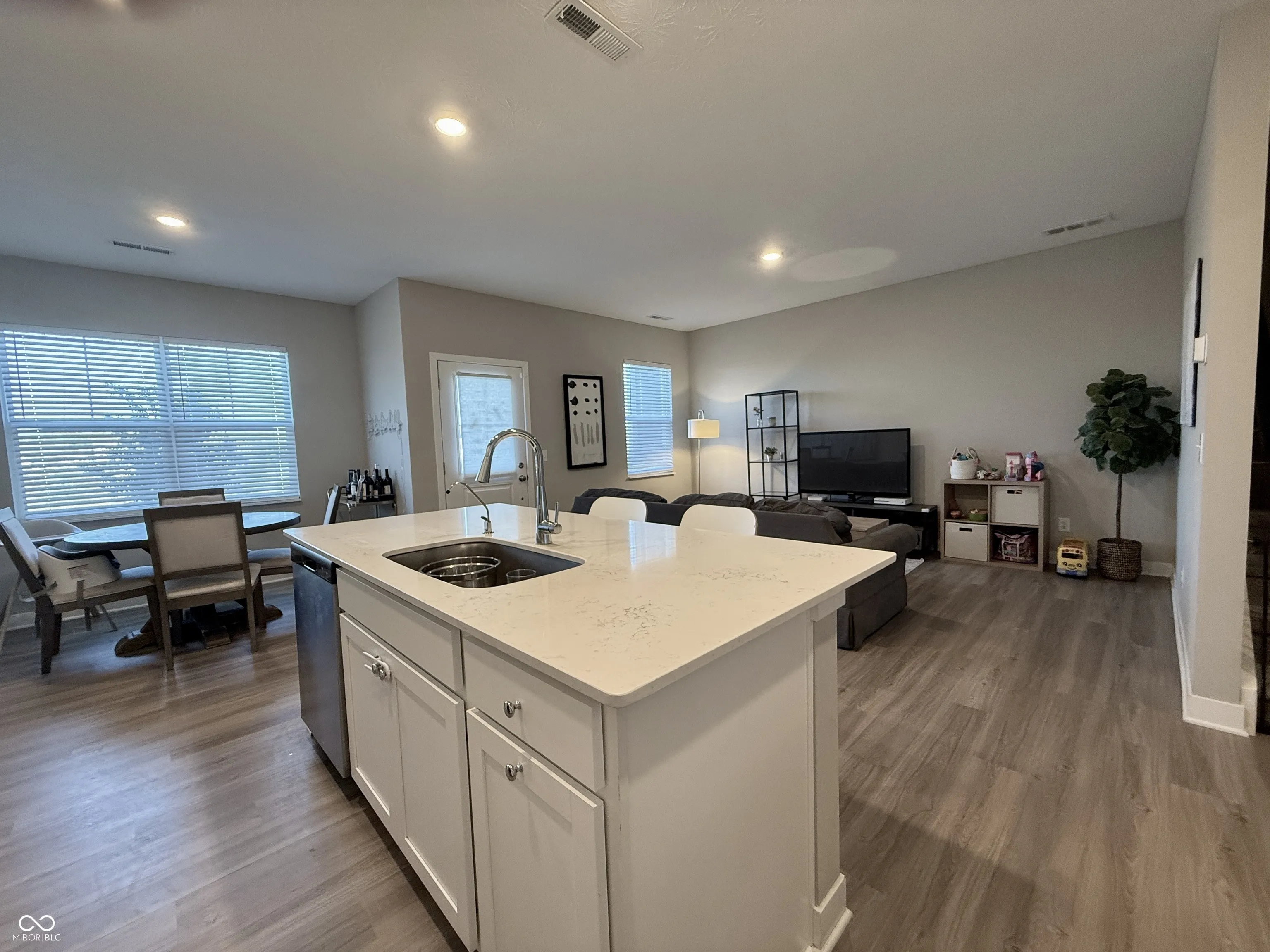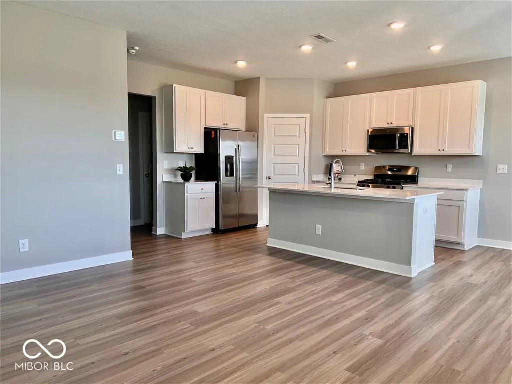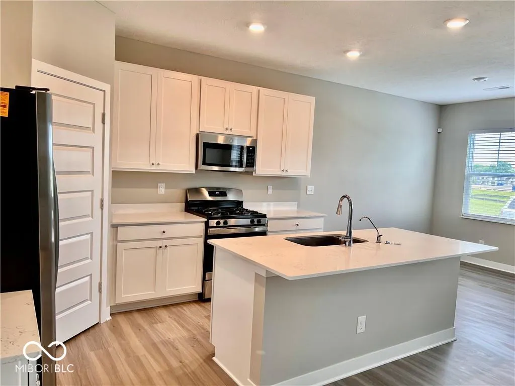 Welcome to this beautifully designed 3-bedroom, 2.5-bath townhome offering 1,816 sq. ft. of low-maintenance living in a vibrant community. Blending elegance with functionality, this home features a contemporary open-concept layout and stunning pond views that create a peaceful, scenic backdrop. The main level boasts stylish LVP flooring throughout, seamlessly connecting the bright and spacious living room, dining area, and modern kitchen. Large windows flood the space with natural light, making it perfect for both relaxing and entertaining. The kitchen is a chef’s delight with quartz countertops, stainless steel appliances, and a breakfast bar for casual dining. Upstairs, the private owner’s suite offers a generous bedroom, a walk-in closet, and a spa-like ensuite bath featuring dual sinks and a walk-in shower. Two additional bedrooms share a full bath and provide flexible space for guests, family, or a home office. A versatile loft area adds extra functionality-perfect as a reading nook, playroom, or second living area. The convenient upstairs laundry makes everyday living easy. Additional highlights include an attached two-car garage with ample storage and access to premium community amenities-located just across the street! Enjoy the clubhouse, swimming pools, tennis courts, pickleball, and playground, all within steps of your front door. Situated in the highly regarded Washington Township School District, and offering easy access to SR-32, US-31, and downtown Indianapolis, this townhome is ideal for anyone seeking a stylish, low-maintenance lifestyle in a prime location.