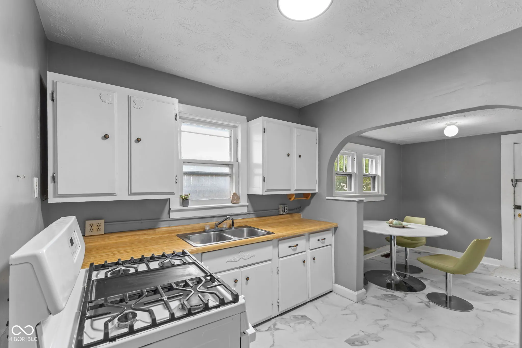 Nestled in the old Southside Historic neighborhood, this adorable 3-bedroom, 1-bathroom home has 1,025 square feet of finished space on the main level, plus a large unfinished basement. Elegant doorway arches and built-ins add a touch of sophistication from the 1930s, and the refinished hardwood floors add charm and warmth throughout. The floor plan features two LARGE living areas (virtually staged as a family room and formal dining room), but the heart of this home is the spacious eat-in kitchen, featuring painted cabinets with butcher-block look countertops, a gas range and updated fridge. You can enjoy the outdoors from the charming covered front porch or from your private backyard, lined by established trees. There could be off-street parking opportunities on the backyard concrete pad with alley access, or it could be a great spot to add a future garage. There’s ample space for extra storage in the unfinished basement, which also houses laundry connections and mechanicals. Updates include new luxury vinyl plank flooring in the kitchen and 3rd bedroom and a newer furnace and central air conditioning. This charming haven is just a few minutes from Eli Lilly, Lucas Oil Stadium, shops, dining, Garfield Park and many more downtown Indy attractions and is ready to be your new home!