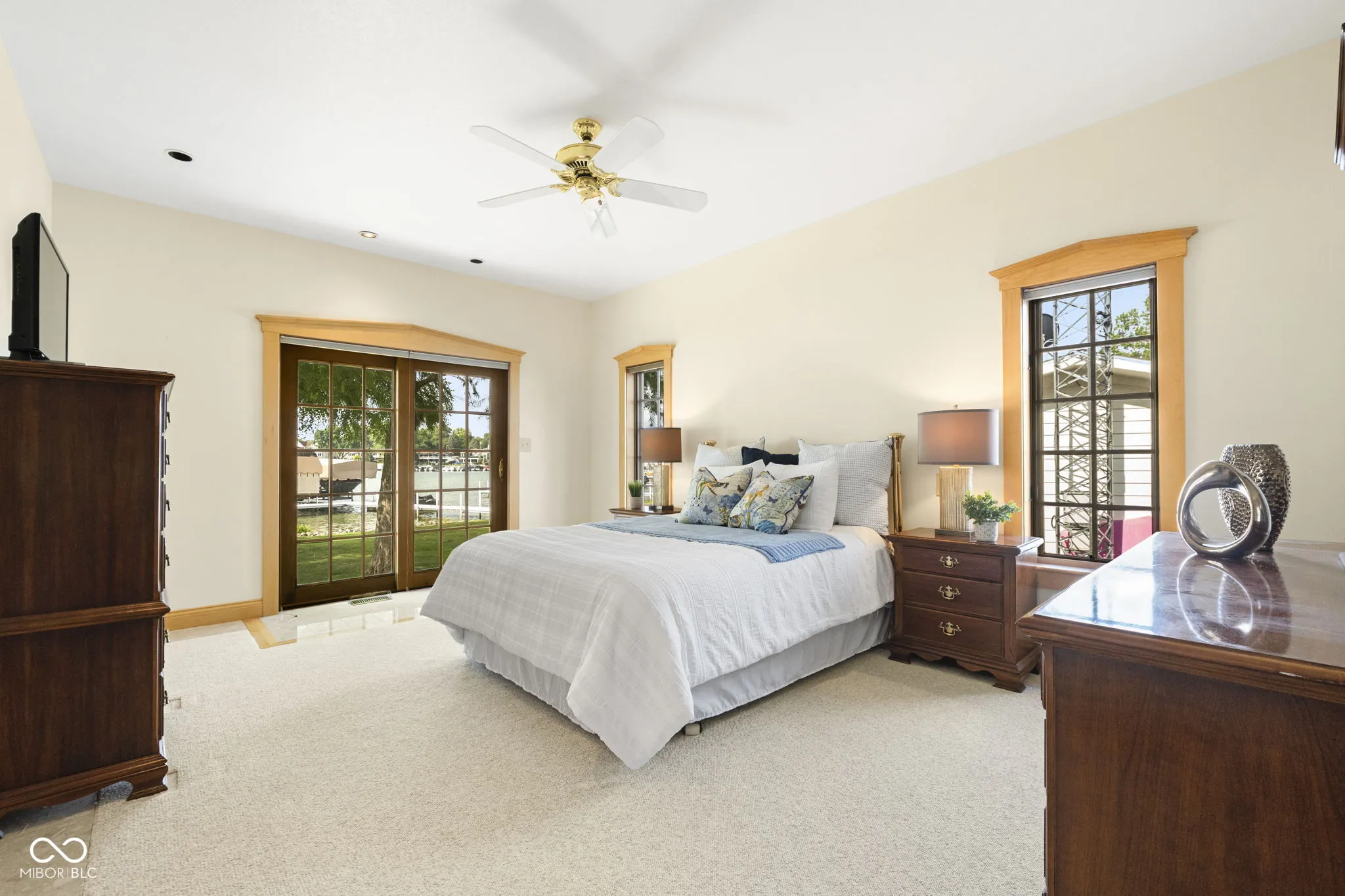 Set on 100 feet of private frontage in the sought-after Feicks Point neighborhood, this custom lakefront home offers rare quality, space, and comfort in one of Lake James’ most desirable settings. With water views on both sides and a design built for connection, this is a home that brings people together across generations, seasons, and milestones. Inside, there are 5 bedrooms, 4 full baths, and 2 half baths thoughtfully arranged to support both everyday living and extended stays. From the custom cherry and maple woodwork to the high-end kitchen featuring granite countertops and a Sub-Zero refrigerator, every detail reflects craftsmanship built to last. Natural light fills the home’s gathering spaces, including a spacious sunroom with floor-to-ceiling windows, ideal for morning coffee, afternoon reading, or evening games after a day on the water. The open layout connects the kitchen and living areas, making it easy to host holidays, weekends with friends, or quiet evenings at home. Additional features include a game room with wet bar, a cozy library, flexible loft space, and a dedicated office, plus a separate guest suite with private entrance and kitchenette, perfect for extended family or visiting guests. Outside, enjoy a flat, shaded lakeside yard perfect for lawn games or summer dinners. The dock is ready for boating, swimming, and lakefront living at its best. Lake James is one of Indiana’s premier all-sports lakes, known for its clear water, connected basins, and year-round recreation. Feicks Point offers a unique blend of privacy, prestige, and community close to Angola’s conveniences and just minutes from Pokagon State Park. It’s a place where neighbors become friends, traditions are built, and ownership often spans generations.