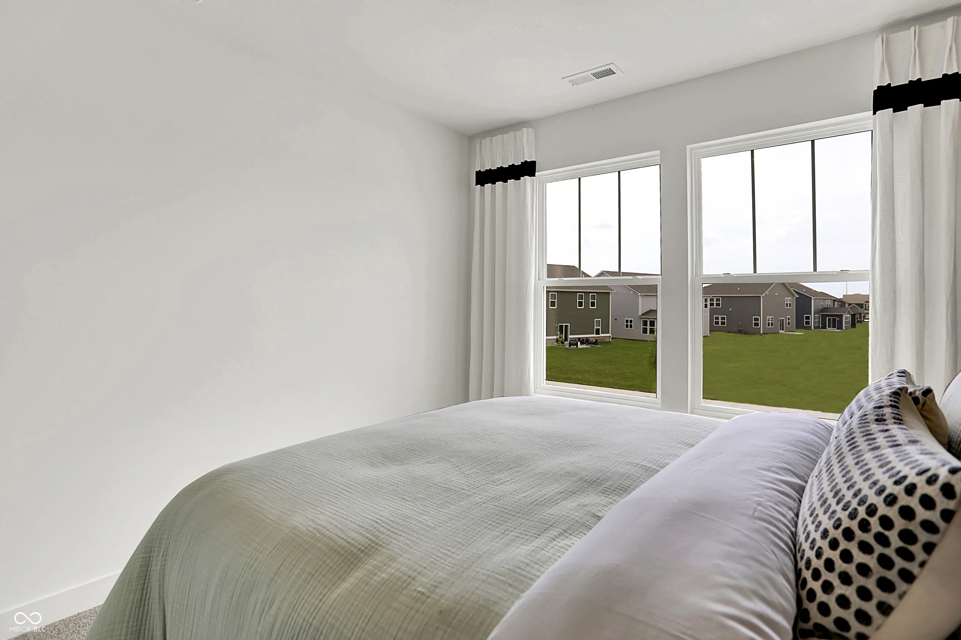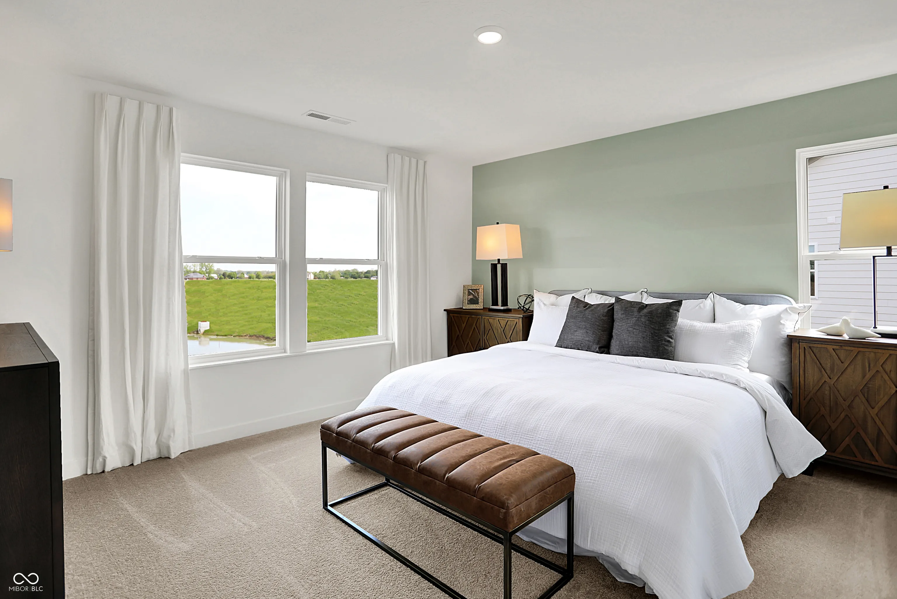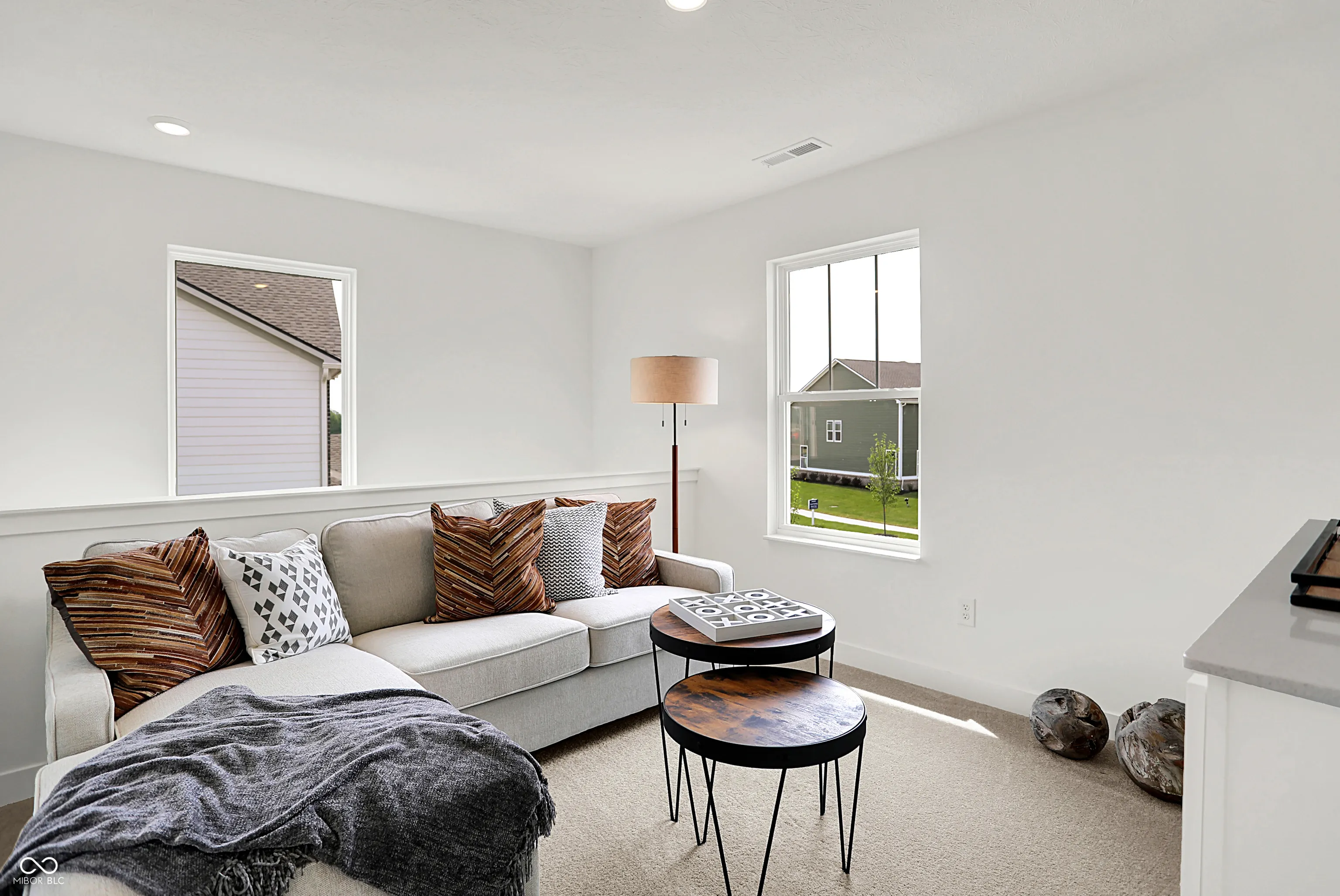 Carriage Duplex is a series of new paired homes for sale at Grand Vista, a master-planned community coming soon to Greenwood, IN. Residents will have access to stunning amenities including a relaxing swimming pool, pool house and playground set. The community offers proximity to Old City Park for outdoor recreation and high-end shopping and dining options at nearby Greenwood Park Mall. The first floor of this two-story home shares an open layout between the kitchen, dining area and Great Room for easy entertaining, along with access to an outdoor space. Upstairs is a luxe owner’s suite with an en-suite bathroom and a spacious walk-in closet, as well as two secondary bedrooms near a versatile loft that serves as a second-floor shared living space. *Photos/Tour of model may show features not selected in home.