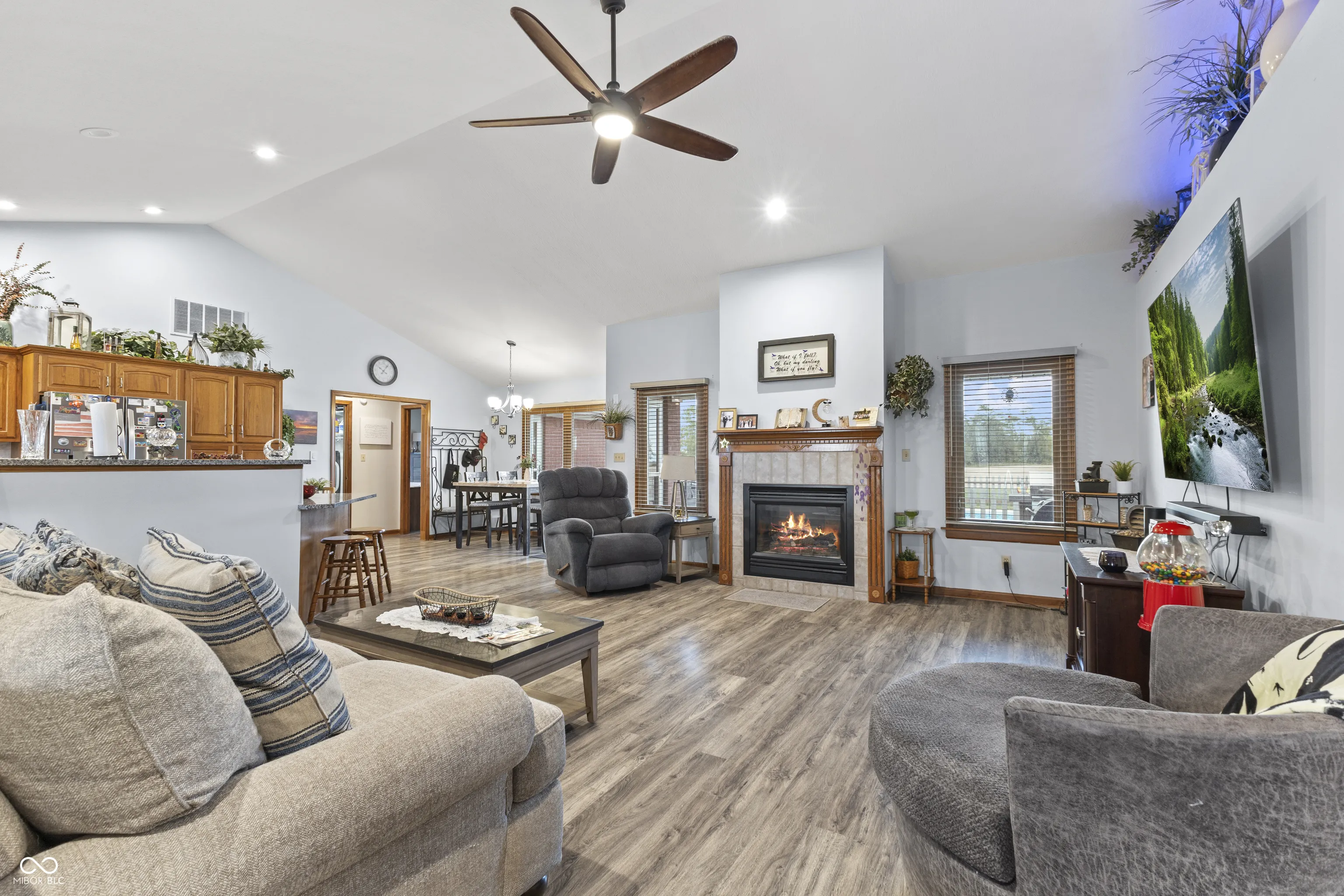 Enter this welcoming 3-bedroom, 2-bathroom home and make it your own. Featuring an open concept with natural light and views across open pastures. The kitchen boasts granite countertops, stainless appliances, and plenty of cabinet space. The large open family room with cathedral ceiling, a gas log fireplace, and breakfast area. The primary bedroom includes a bathroom with tub and separate shower, along with a large walk-in closet. The lower level consists of a bar area, a half bathroom, and a rec/play area. The backyard features a large in-ground pool complete with fountains and a bubbler at the shallow end, along with an automatic pool cover. The backyard also features a large patio area which is perfect for entertaining. Many updates have been made to this home which are noted in the additional information. The hot tub and Island grill are not included in the sale but could be negotiated and sold on a separate bill of sale. Special financing incentives available on this property from Sirva Mortgage. Schedule your tour now. This is a must-see home!