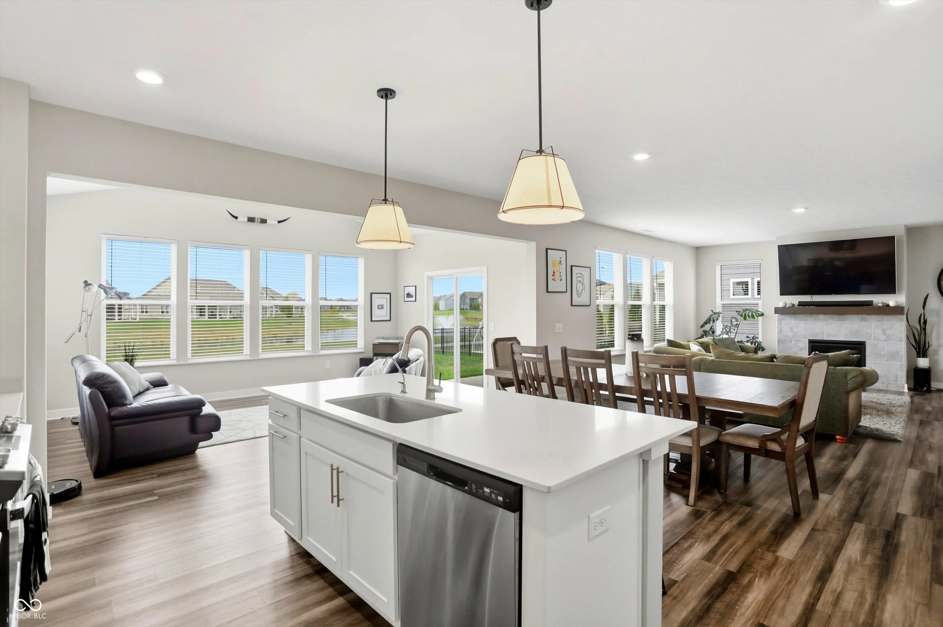 Perfectly positioned between Brownsburg’s top-rated schools and Avon’s everyday conveniences, this former model home blends location, lifestyle, and function. Nestled on a premium pond lot directly across from the community pool and playground, and backing up to a neighborhood walking trail that connects to the B&O Trail now extending to Speedway, this property truly offers the best of both worlds. Inside, you’ll find a flexible floor plan with four spacious bedrooms and a loft that can easily serve as a fifth bedroom or bonus space. The main level features multiple living spaces, including a sunroom and living room, creating options for household needs. The owner’s entry is equipped with a half bath, built-in boot bench, large walk-in pantry, and extra storage closest. The three-car finished garage offers depth enough for a full-size pickup truck, while the extended back patio with privacy arbs makes outdoor relaxing. The primary suite impresses with a fully tiled shower and dual vanities, and every bedroom includes generous closets, most with walk-ins. Smart home technology throughout ensures seamless modern functionality, while the upstairs laundry room provides extra space for folding, hanging, and storage. This specific floor plan, combined with the upgrades and premium lot, cannot be built again at this price point, making it an incredible opportunity in one of the area’s most convenient and connected locations.