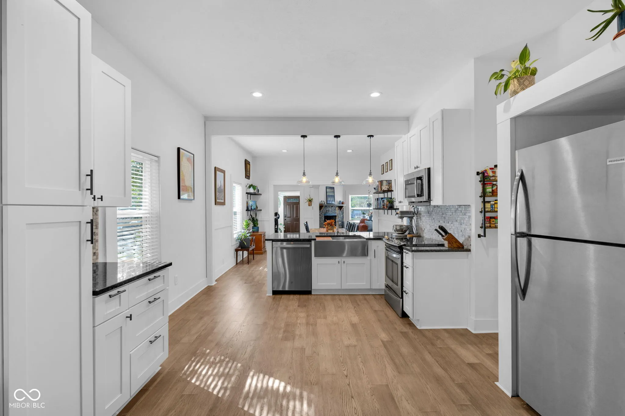 UPDATED CUTIE | NEW ROOF | NEAR DOWNTOWN. Nestled in charming Windsor Park, this 2 bed 2 bath home offers an open and updated living space close to vibrant downtown amenities. As soon as you pull up, you’ll notice the striking curb appeal, which is highlighted by the stunning landscaping, bold paint, and a brand new front door. Walk inside, and you’ll see the high ceilings, large functional kitchen, and cozy living room with stone fireplace. An entrance foyer, abundant shaker cabinetry, and a first-floor laundry room help add convenience and functionality. Head downstairs and you’ll discover a finished bonus room and 2nd full bath – ideal for extra hangout space, workout area, or ensuite 3rd bedroom if desired. Head out back to find a nice large deck, extra storage space, and a *heated* 2 car garage surrounding a fully fenced in yard. Brand new roof (2024) and newer mechanicals add peace of mind to this little oasis in the city. Walkable to so many amenities, it’s unreasonable to name them all – Beholder, Kan Kan, Amelia’s, Spades Park, and Pogue’s run trail – two blocks. Factory Arts District – 4 blocks. Bottleworks, North Mass Boulder or Monon Trail – 20 min walk or 5 min bike ride. This home is perfect for that person looking to live in a low stress home on a quiet street near downtown. Also ask me about $10,000 in grant money from PNC Bank! (Does not have to be first time buyer.)