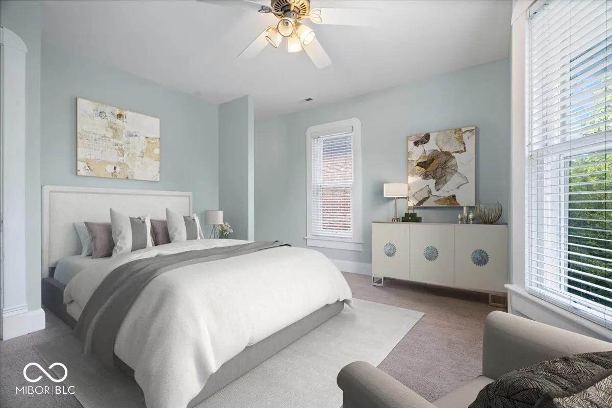 Welcome to one of the most well preserved homes in Historic Fletcher Place! Step inside this charming early 1900s Queen Anne Victorian where you are greeted with beautiful hardwood floors and custom built-in shelving around a warm and inviting fireplace. An easy stroll to all of downtown Indy’s sports and entertainment, this home’s location makes for the best game day gatherings and access to all of downtown’s amenities. The home features raised ceilings and detailed woodwork retaining the turn of the century charm. The kitchen is equipped with a large island offering ample space for meal preparation, entertaining and casual dining. The Shaker cabinets provide a timeless aesthetic, while a kitchen bar creates an inviting space for a quick breakfast. All appliances are included, including stainless steel kitchen appliances with gas range, and washer and dryer. Upstairs features two primary suites with tons of closet space. Each bedroom has an updated bathroom with tiled floors and baths. The home features dual zone HVAC, a newer roof and a basement providing ample storage space. Beyond the interior, relax on the covered front porch with neighbors and friends or step out back to enjoy the privacy of a fenced backyard with a patio that extends the living space. The home also features a detached 2-car garage with a large attic for additional storage.