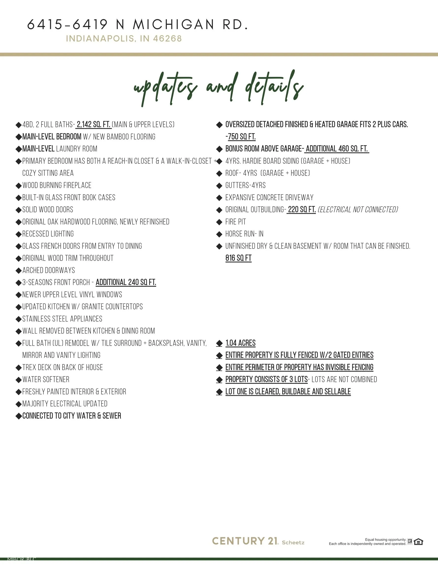 Live your vintage-modern dream on over an acre-plus rare bonus space and buildable lot! Welcome to Leland Place, where classic 1920s charm meets modern versatility on 1.04 fully fenced acres, offering the freedom & space many buyers dream of. With open yard areas, fencing already in place, and no HOA, this property is well-suited for raised-bed gardens, chickens, and outdoor entertaining- maybe even a pool! Step onto the inviting three-seasons porch-ideal for morning coffee or evening unwinding-before entering a sun-filled living room with original hardwoods and a cozy fireplace. The main-level bedroom offers privacy for guests or multi-generational living, while the updated kitchen flows into a bright dining area, perfect for gatherings after a day in the garden. Upstairs, you’ll find three additional bedrooms and a flexible sitting nook ideal for work, reading, or creative pursuits. The clean, dry basement provides ample storage or space for a home gym. A rare finished, heated garage with a 460 sq ft bonus room above offers endless options-studio, workshop, office, or hobby space-while a charming outbuilding is waiting to be transformed (outbuilding is Sold As-Is). Two gated entries enhance privacy and function, and a cleared .36-acre secondary lot provides the option to build, sell, or expand your vision. Located near top-rated Pike schools, major employers, and everyday amenities, this property blends convenience with the freedom to grow-literally. This unique property offers space, flexibility and endless potential. Back on Market due to Buyer’s failure to meet final condition for loan approval.