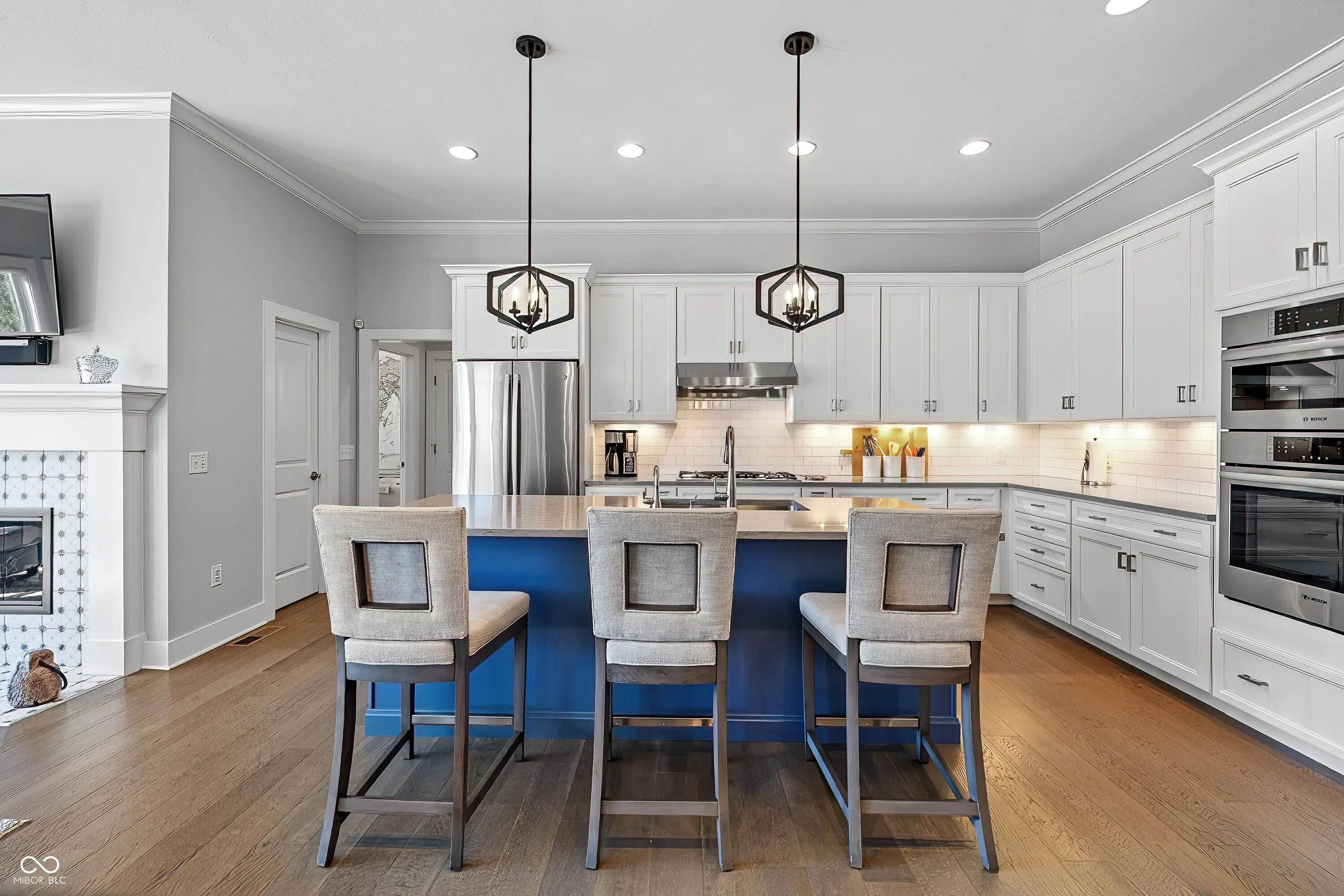 This spectacular ranch home in the Overlook at Legacy has hardwoods throughout main floor. Great split floor for privacy with guests. SS Appliances, quartz tops and dream kitchen opens to Great room, open dining area and open porch overlooking 16 acre common area with walking trail. Finished basement features 4th bedroom and bath plus large rec room and potential theatre area. Extra features include heated garage with epoxy floors, new hot water heater 2025, exterior paint 2024, wood burning fire place with gas insert.