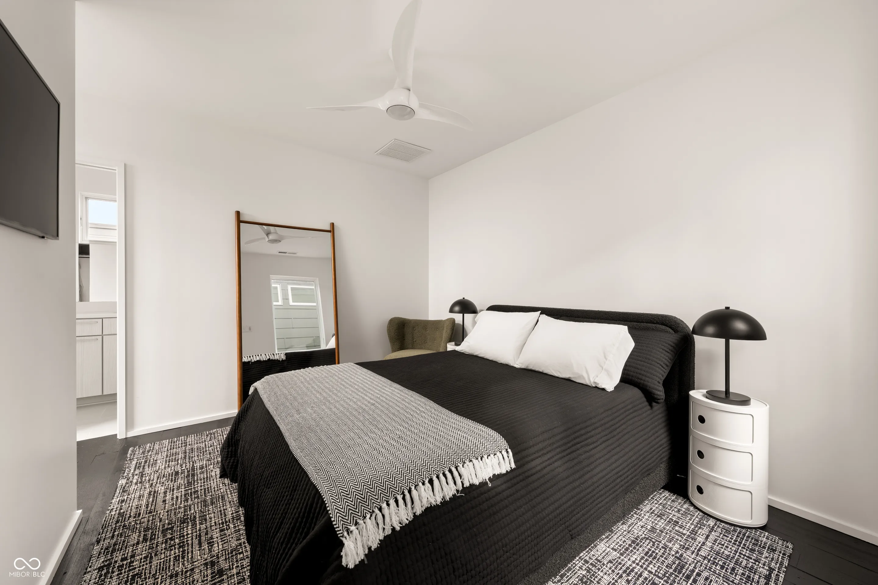 Welcome to this Cottage Home property that captures the energy, artistry, and sophistication of downtown living, positioned directly across from the North of Mass Avenue (NoMA) district, Indianapolis’s most dynamic up-and-coming destination for culture, cuisine, and creativity. From First Fridays to local art galleries, swanky cocktail lounges, and chef-driven restaurants, this location offers a lifestyle that is evolving and connected. Just steps from Mass Avenue, this retro cottage delivers a design experience that’s truly one-of-a-kind. Every inch has been thoughtfully remodeled, blending architectural artistry with livable luxury: tiled spaces, warm colors, sleek surfaces, and textures added to feature walls. The main level features open living and dining areas, a chef’s kitchen with white quartz countertops, warm tile backsplash and hood, Thermador appliances, and elevated designer lighting. A pocket office overlooks 10th Street, while a hidden center courtyard and screened porch with a hot tub create private outdoor retreats. The fenced front yard and stone entry add both curb appeal and separation from city life. A show-stopping bourbon and cigar lounge with vaulted ceilings, ventilation, wet bar, and floating shelves with ladder access overlooks NoMA and the Factory Arts District. Upstairs, dual primary suites offer modern baths and walk-in closets, while a guest bedroom and laundry complete the level. The finished basement adds a retro lounge, bedroom, and full bath. Outside, the double lot transforms into an urban homestead in the heart of downtown. Offered fully furnished, this home unites design, location, and lifestyle into one unforgettable address.
