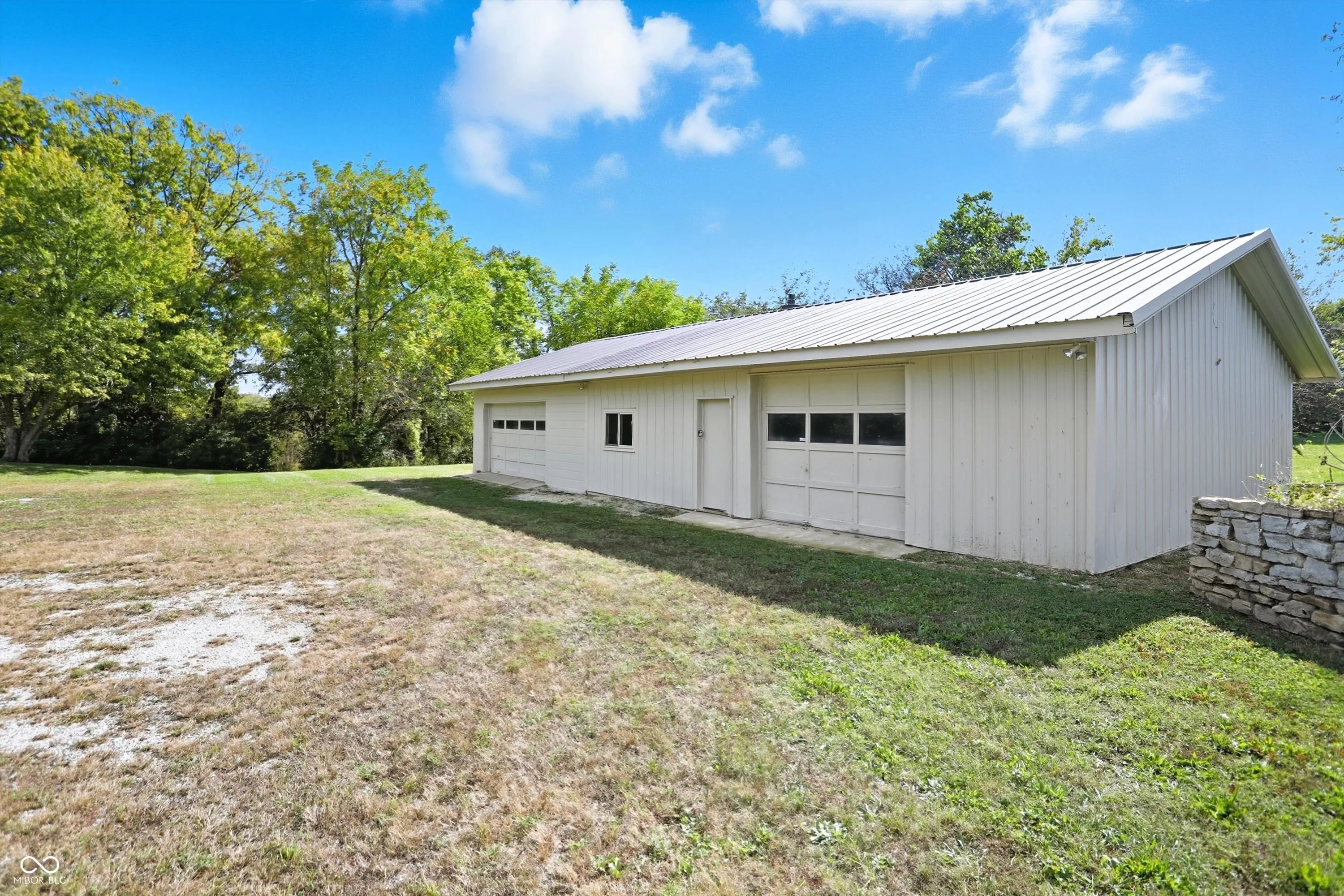 7.82 Acre Oasis! If you love the outdoors, this is your slice of paradise! Approach the cozy Bedford stone home sitting on a hill at the end of a brand new private shared driveway. Pull up right next to the sunroom door or follow the drive around to your safe haven, a stunning backyard, boasting of an oversized 3 car det gar and massive entrance to the walkout basement! 3bd/1bth and laundry on the main level, with endless possibilities in the full unfinished basement! This home offers two fireplaces and an abundance of original hardwood floors, newer metal roof, HVAC, and vinyl windows! The garage/shop is every man’s dream with concrete floors, new windows, fresh paint, and electric! Sip your morning coffee or enjoy evening cocktails from the massive sunroom overlooking perhaps the most private and serene backyard on this side of the Mississippi!