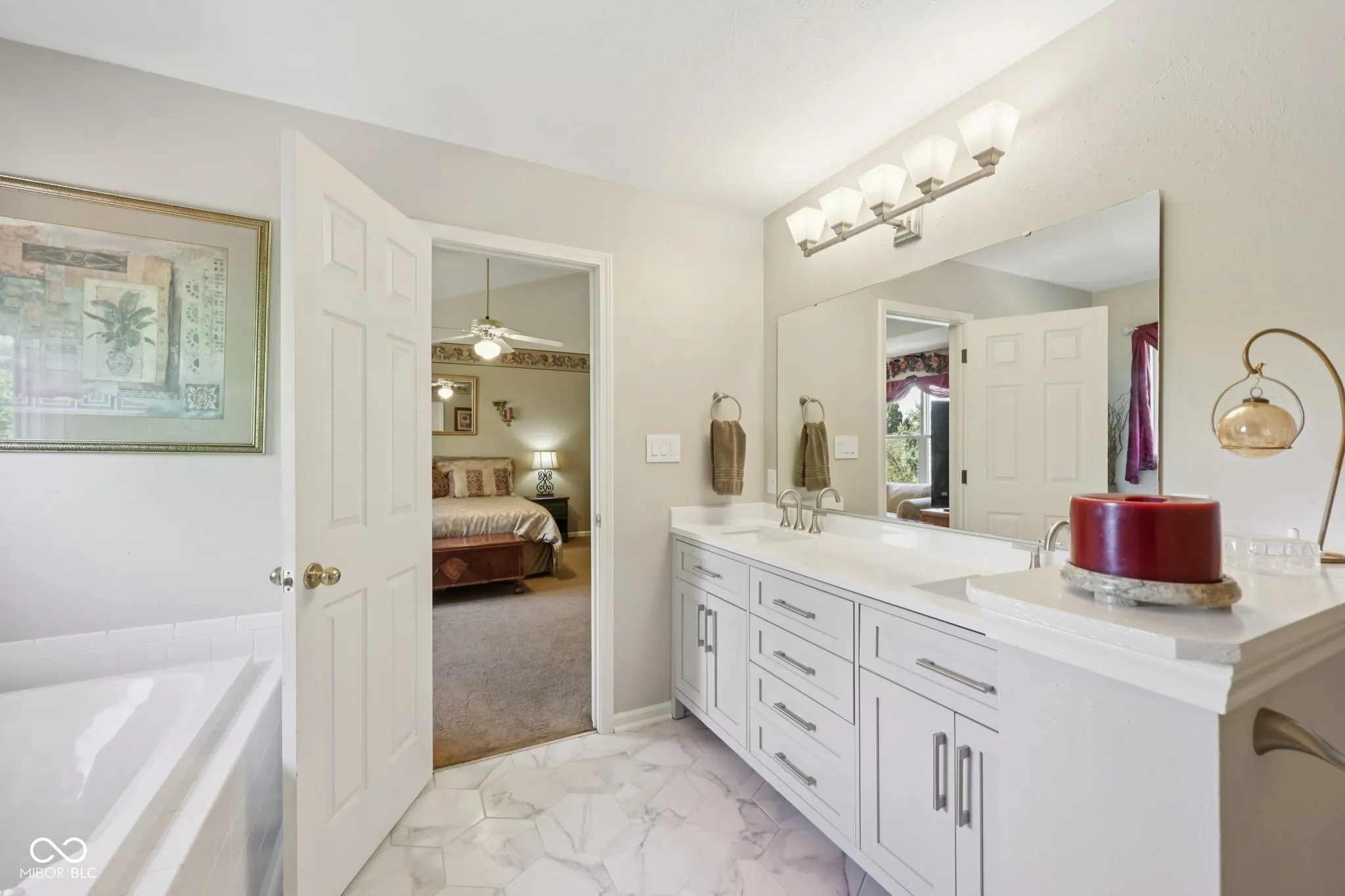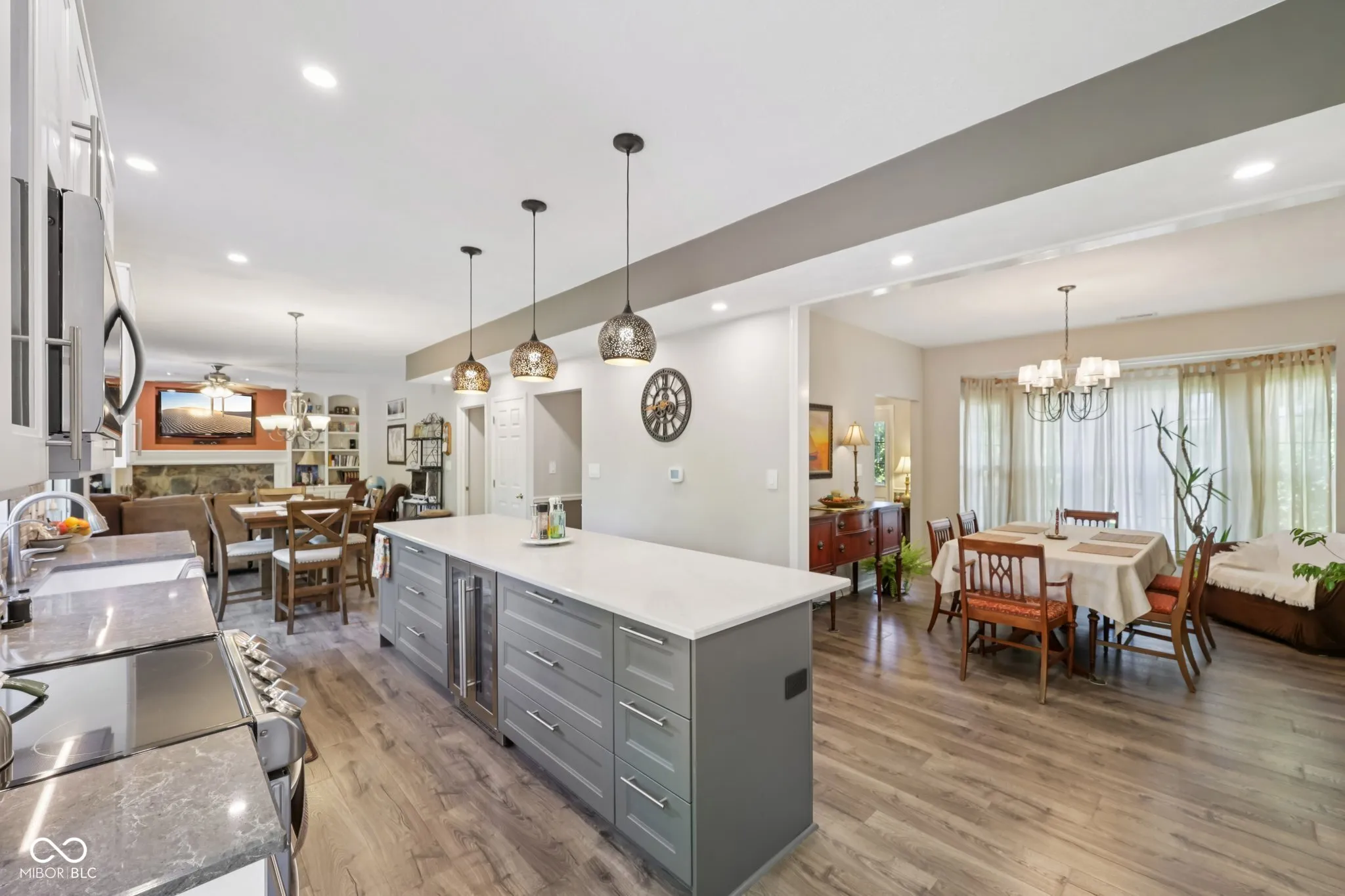 Experience refined living in this beautifully updated home where modern craftsmanship meets timeless design. The chef’s kitchen showcases premium LG appliances, a KitchenAid dishwasher, quartz countertops, and illuminated cabinetry that blends sophistication with everyday convenience. Open-concept living invites relaxation and entertainment, enhanced by built-in surround sound and a seamless flow between spaces. Retreat to the fully remodeled primary suite featuring a spa-inspired bathroom with elegant tile work, a custom double-sink vanity, and a spacious walk-in closet designed for luxury and function. The finished basement offers additional living and entertainment space with granite countertops, recessed lighting, and impeccable attention to detail. A Pella sliding door with integrated blinds opens to a large, private backyard-ideal for outdoor gatherings or tranquil evenings. With a three-car garage, refined finishes throughout, and a design that balances comfort with sophistication, this home embodies modern elegance at every turn.