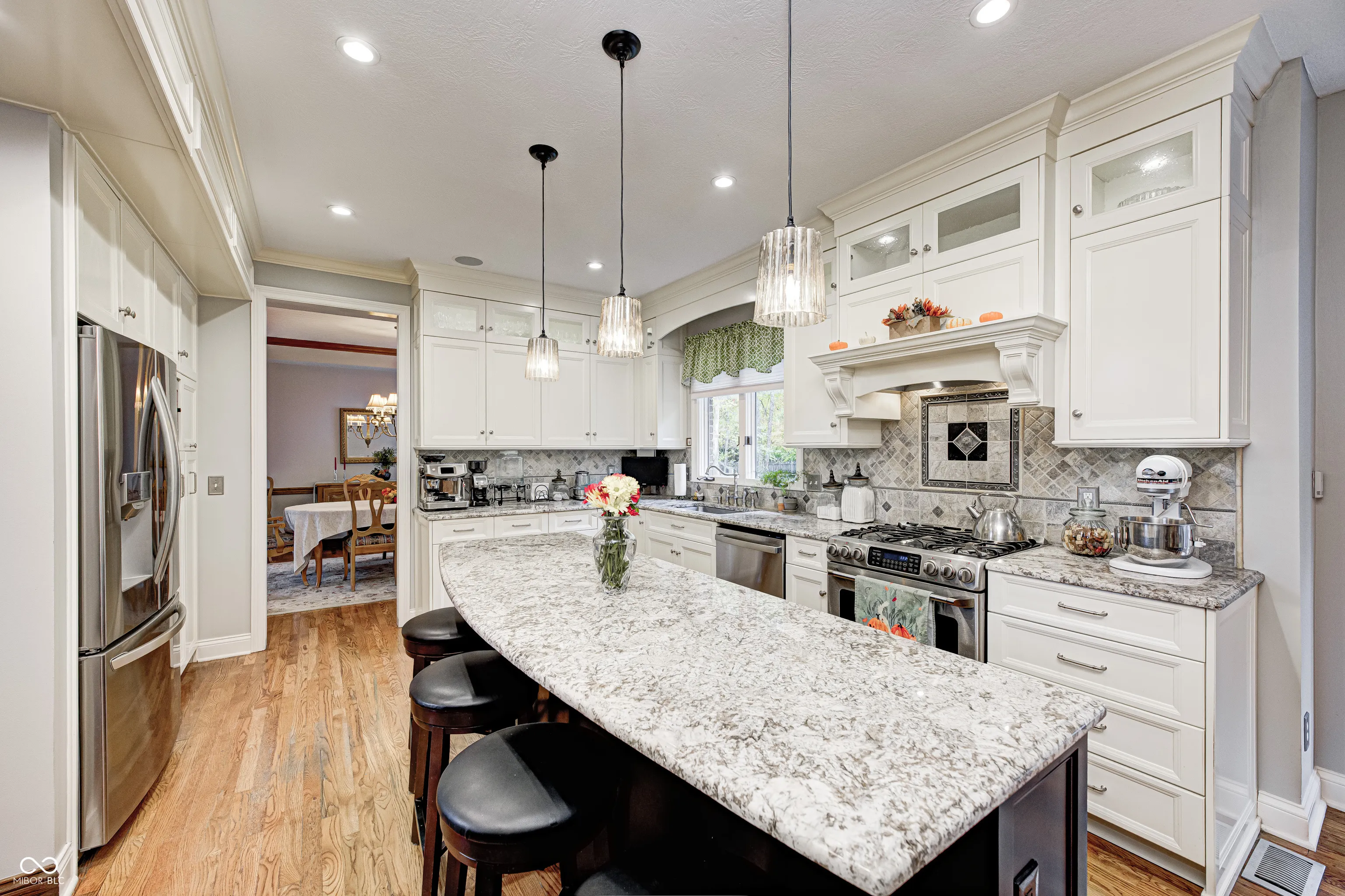 Custom-built 4 bed, 2.5 bath home in the desirable Woodlands at Windermere neighborhood in Fishers. Features an all-brick front and sits on a gorgeous large lot with mature trees and a full rear fence. Enjoy hardwood floors, crown molding, and a beautifully remodeled kitchen with a large center island, granite countertops, tiled backsplash, stainless appliances, and glass-front upper cabinets with lighting. The primary suite offers a vaulted ceiling and gas log fireplace. Additional highlights include a main floor office with French doors, family room with brick wood-burning fireplace, spacious deck, full daylight basement (unfinished), and 3-car side-load garage. Convenient to I-69, shopping, dining, and top-rated HSE schools.