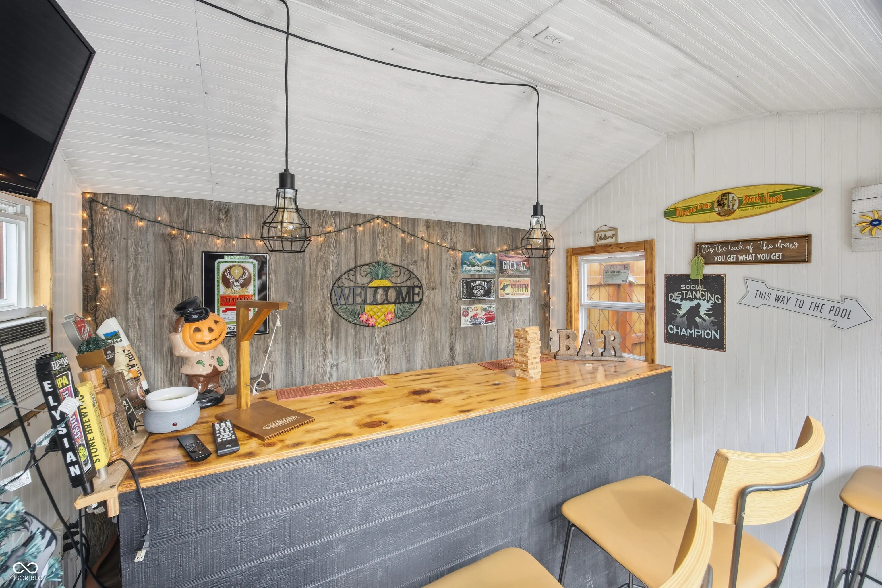 Stop your scroll! Imagine living in this thoughtfully updated home with an inviting remodeled kitchen, a relaxing full-wall stone fireplace, and a backyard pool and cabana bar built for fun. This delightful 3-bedroom, 2-bath ranch is updated, well-maintained, and ready for you to move in. The heart of the home is the remodeled kitchen (2021), an inviting space featuring new cabinets, subway tile, and beautiful stained butcher block counters. It includes a full suite of stainless steel appliances (2020) and a bright space perfect for your everyday coffee or dinner with family and friends. Enjoy new laminate flooring (2024) and new recessed lighting (2021) throughout the main living areas. Relax in the family room centered around a welcoming full-wall stone fireplace and hearth. A French door opens directly to the patio, blending indoor and outdoor living. The new furnace (2023) offers peace of mind. The primary bedroom features plush new carpeting (2025) and a unique wood panel feature wall, and a full bath with shower. The two additional bedrooms also have fresh new carpeting (2025), and the guest bathroom is a stylish standout with a navy vanity and gold accents, floating shelves and a tiled tub/shower combo. Your Private Oasis Awaits- The backyard is an absolute summertime dream! The patio overlooks a fantastic in-ground pool complete with a diving board and slide. The pool cabana bar is the perfect spot to watch the game or relax poolside. Outside storage is covered with two new mini-barns. Location: Ideally situated just north of Franklin Central High School, moments from Wanamaker shops and local dining. Start Living-Move in just in time to create lasting holiday memories around that welcoming stone fireplace. This home is the backdrop for your best life, ready for fun, whether it’s a staycation summer or a cozy winter. Make this dream your daily reality. Virtual tour and photos available soon, but schedule your tour now through Showing Time app