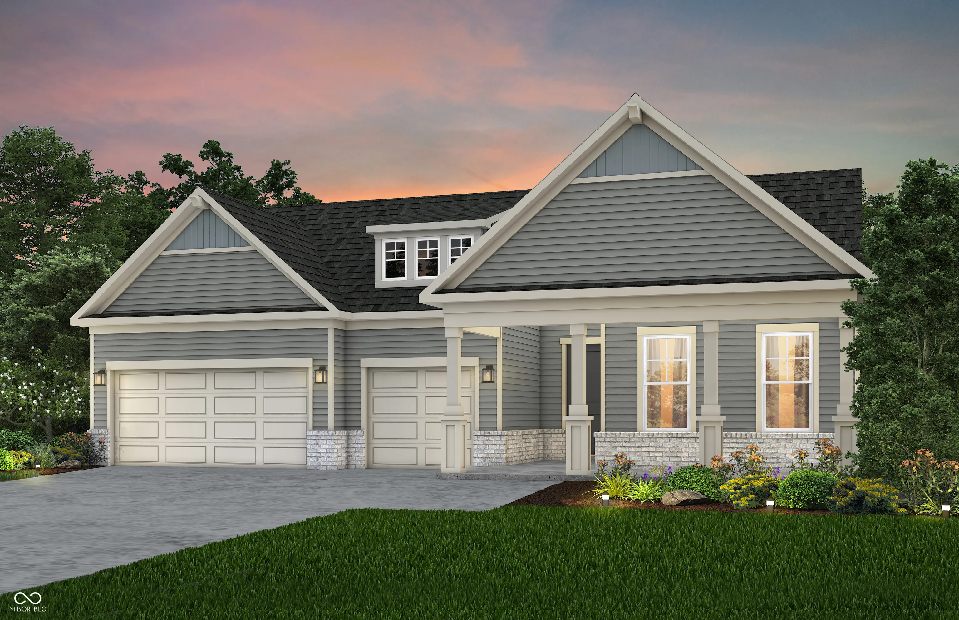 Step into the thoughtfully designed Renown floor plan at Finch Creek by Del Webb, where style meets functionality. The heart of the home is the gourmet kitchen, boasting 42″ cabinetry, sleek quartz countertops, a tile backsplash, and built in gas stainless steel appliances. Perfectly positioned, the kitchen flows seamlessly into the gathering room, dining cafe area, , which opens onto a extended covered patio-ideal for entertaining or relaxing. A flex room with doors provides versatile space for an office, hobby room, or quiet retreat. The owner’s suite is a true haven, featuring an en-suite bath with quartz countertops and a resort-like walk-in shower, complete with luxurious tile finishes. Two additional bedrooms with their own en-suite baths provide privacy for guests. The Finch Creek by Del Webb community is where lifestyle takes center stage. Residents enjoy TV streaming and internet included, plus convenient seasonal opening and closing of irrigation systems. The resort-style amenities include indoor and outdoor pools, a state-of-the-art fitness center, pickleball and bocce ball courts, and a clubhouse featuring social programming led by a full-time Lifestyle Director. A high-tech simulation room offers virtual golf and other sports, while 8.5 miles of walking trails, pocket parks, and a dog park encourage an active, outdoor lifestyle. Ideally located just minutes from I-69, Hamilton Town Center, top-rated hospitals, golf courses, and downtown Noblesville