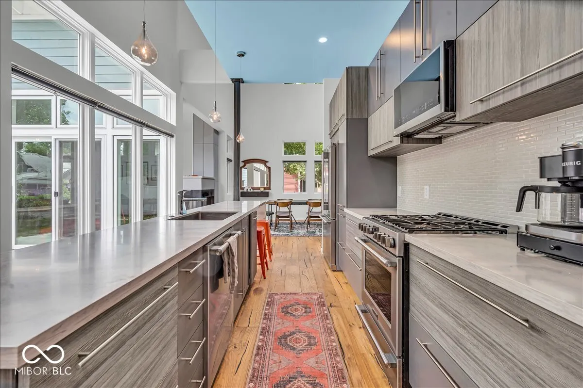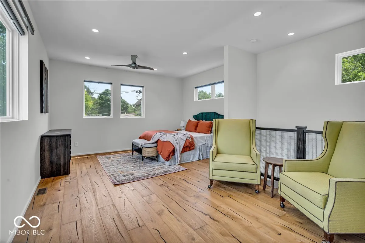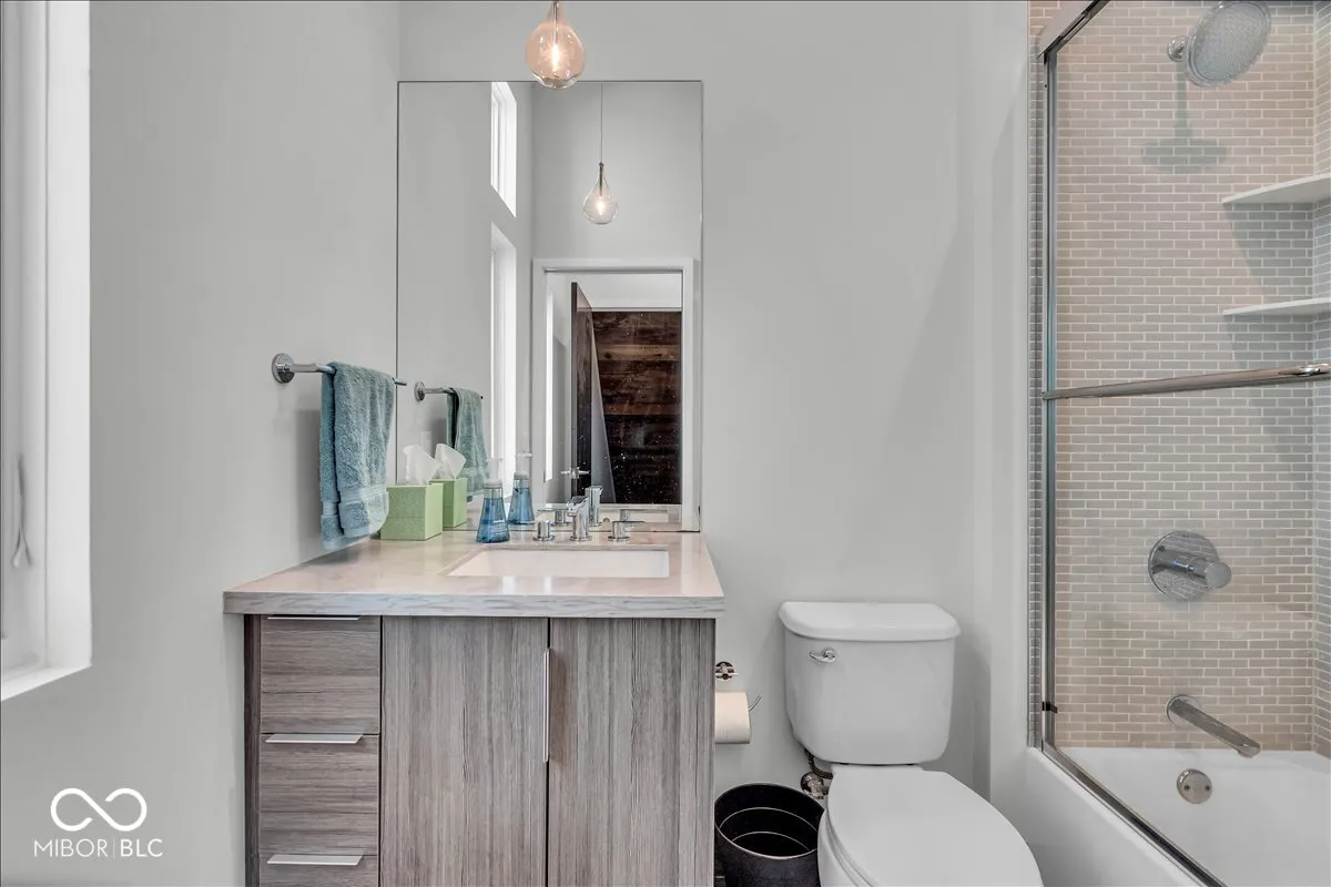 Welcome home to this beautifully furnished, newer construction residence, walkable in minutes to the renowned BOTTLEWORKS and FACTORY ARTS DISTRICTS of Indianapolis! Sojourn to 8th Day Distillery, Centerpoint Brewing, Sidedoor Bagel, the Bottleworks Hotel, the Garage Food Hall, Modita and more, within steps of your sweet front porch. This truly impressive home COMES FULLY FURNISHED and boasts an open-concept floor plan with sleek finishes, soaring ceilings and streams of natural light. Well-appointed chef’s kitchen is complete with stainless steel appliances, sparkling countertops and a large island perfect for entertaining. Convenient main floor auxiliary bedroom offers plenty of space for family, guests or even a home office. Upstairs, the primary suite is a true retreat, boasting a generous sitting area and spa-like ensuite bath. Lower level is perfect for movie nights and gaming and hosts a third bedroom for ultimate versatility. Outside, enjoy ample space to relax with friends under the stars around the cozy gas firepit. Tandem 2-car garage provides room for all your toys. With its unbeatable location, you’ll have effortless access to gourmet restaurants, local indie shops and enthralling entertainment. Don’t miss out on the opportunity to call this contemporary gem your new home!