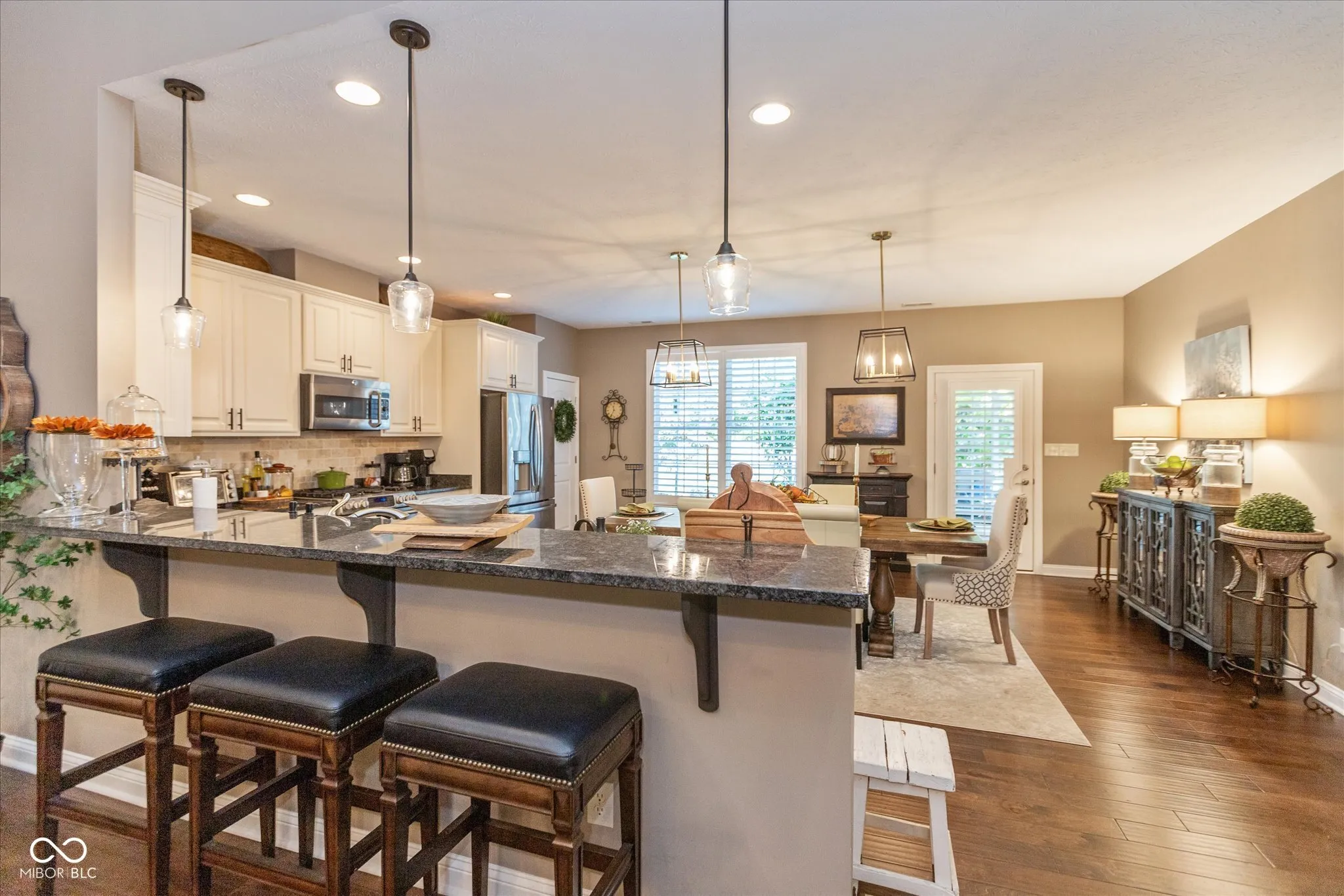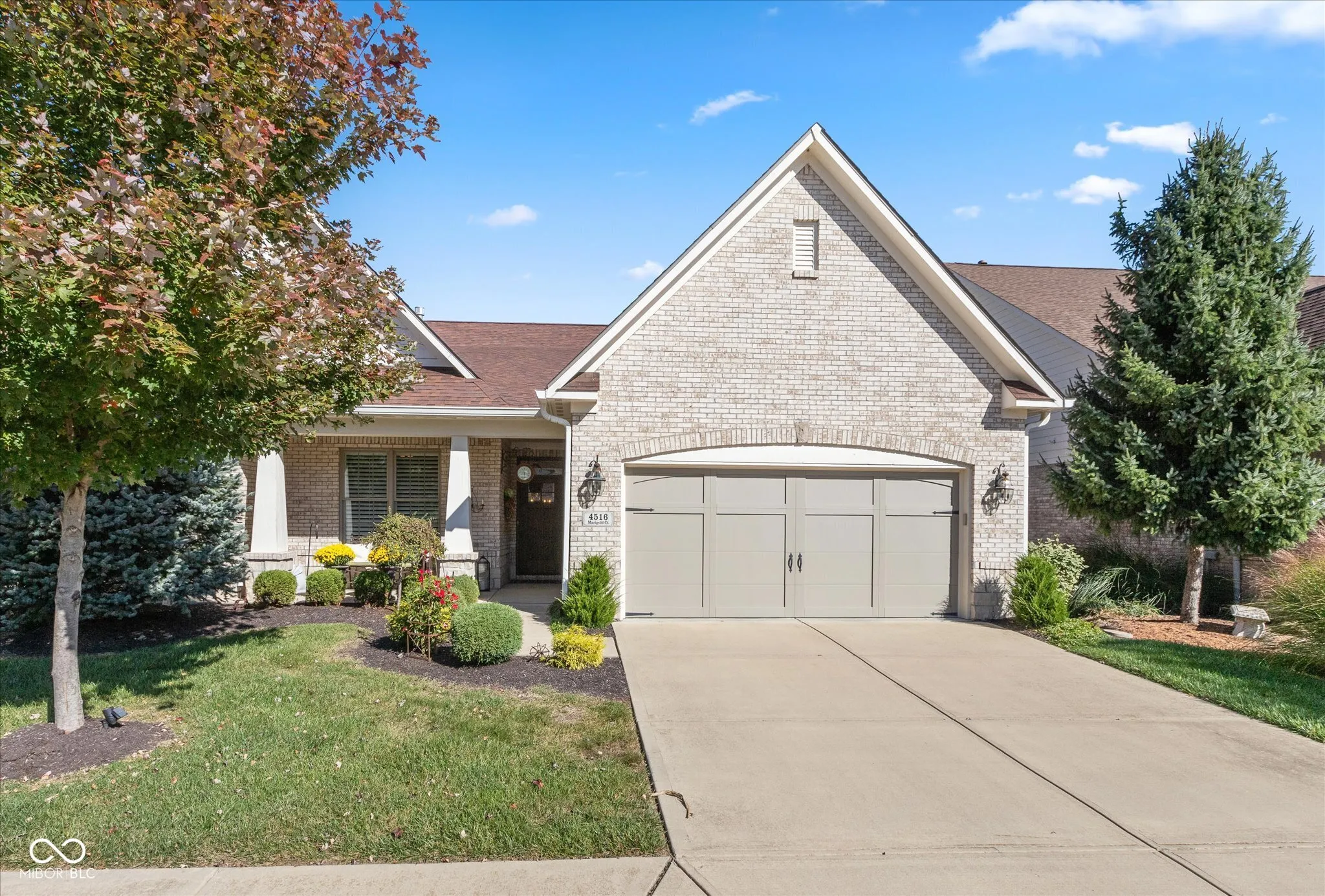 Nestled in the charming gated community of 4516 Marigold CT, GREENWOOD, IN, this attractive condominium offers a delightful residential experience. Imagine evenings spent in the great room, the vaulted ceiling creating a sense of spaciousness, while the fireplace provides a warm, inviting glow. The screened-in porch offers a bright, airy space to relax and enjoy the changing seasons. The kitchen is designed with both beauty and functionality in mind, featuring stone countertops and a backsplash that adds a touch of elegance, while the kitchen bar and kitchen peninsula offer convenient spaces for meal preparation and casual dining. Retreat to the bedroom, where a tray ceiling and crown molding add a touch of sophistication, while the bathroom offers a double vanity and a tiled walk-in shower, creating a spa-like experience. This property also features a covered porch, laundry room, and outdoor living space, providing ample opportunities to enjoy the outdoors. This 1863 square foot, three-bedroom, two-full-bathroom condominium, built in 2016, is a wonderful opportunity to enjoy a comfortable and carefree lifestyle.