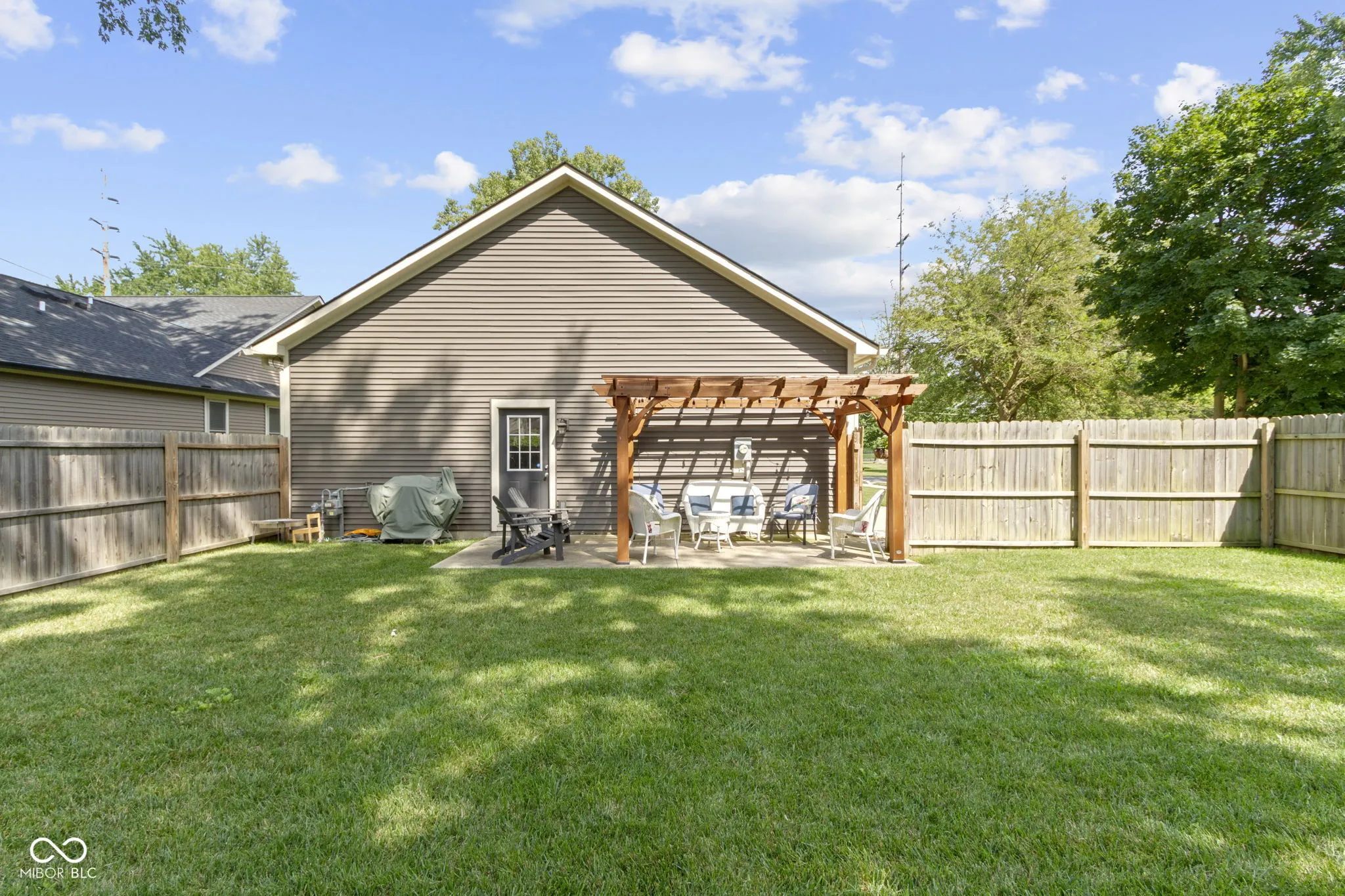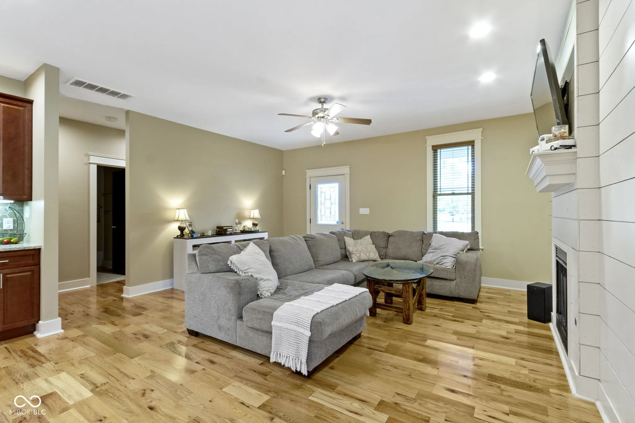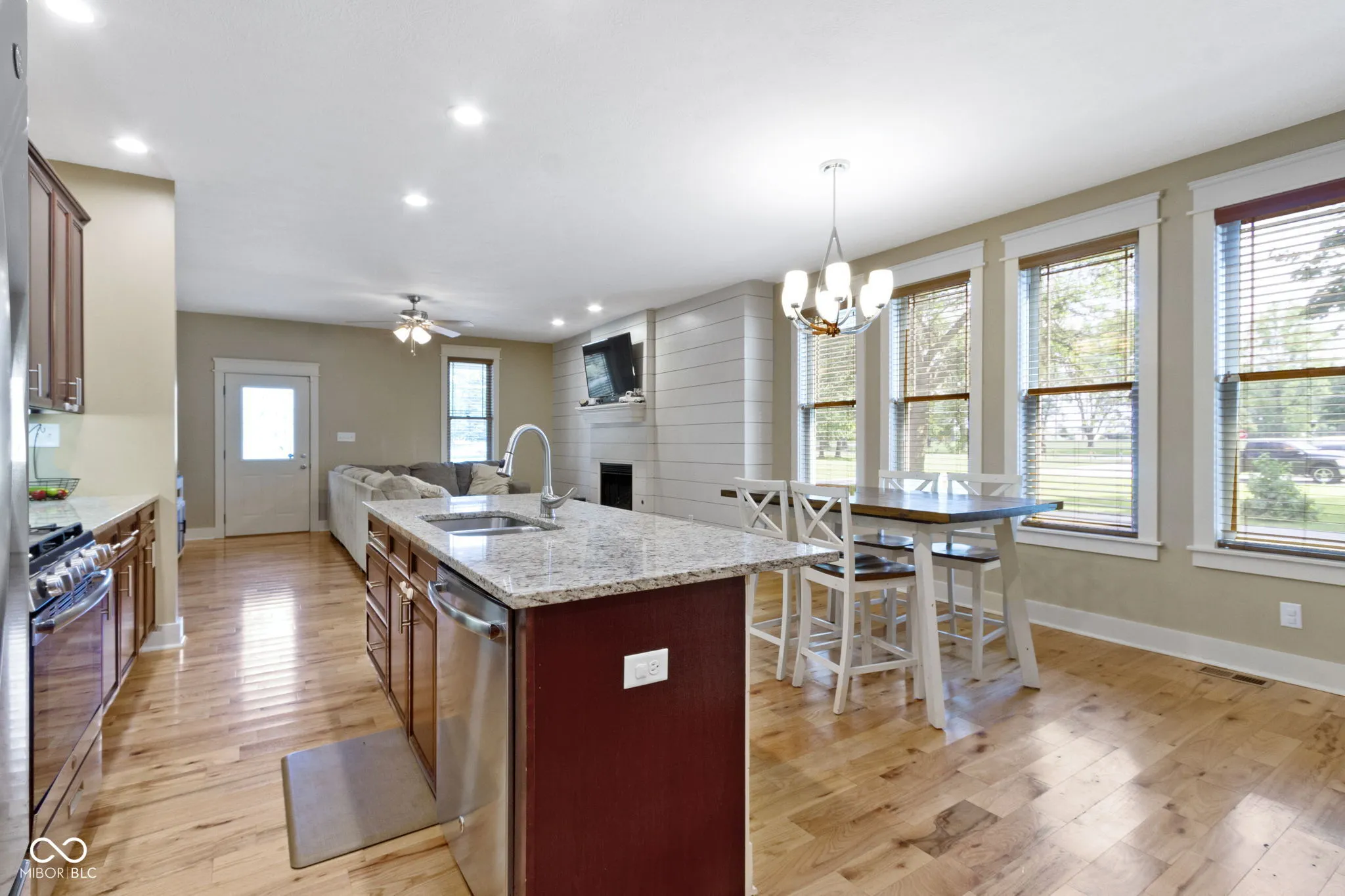 Feast your eyes on this delightful exclamation point of a home, dressed to impress and practically winking at you from the curb. Step inside and be wowed by a living room that’s not just a room, but a vibe-anchored by a cozy fireplace and a seriously stylish shiplap wall that whispers, “Come on in and stay awhile!” The open floor plan invites you to pirouette from the living room to a kitchen that’s ready for its close-up: shaker cabinets, stone countertops, a backsplash that adds just the right amount of pizzazz, and both a kitchen bar and large island practically begging for your next soiree. The primary bedroom continues the charm with a shiplap feature wall and a spa-like ensuite complete with a jacuzzi tub-your own private oasis after a long day. Two full bathrooms offer plenty of space and function, including a double vanity that promises no more elbowing matches during the morning routine. Outside, the fenced backyard whispers sweet nothings of summer barbecues, while the patio and pergola are ready for your most memorable outdoor moments. From the front porch, enjoy tranquil views of the pond while sipping a cup of coffee. You’re also just a short stroll to the Big 4 Trail, which leads you through the Abner Longley Park to the playground and splash pad-the ultimate family-friendly bonus! Let’s not forget the essentials: a dedicated laundry room, walk-in closet that’s practically begging for a shopping spree, and all the comfort of one-story living wrapped up in style. This gorgeous home is a one-level symphony of warmth, convenience, and character-ready for its next maestro.