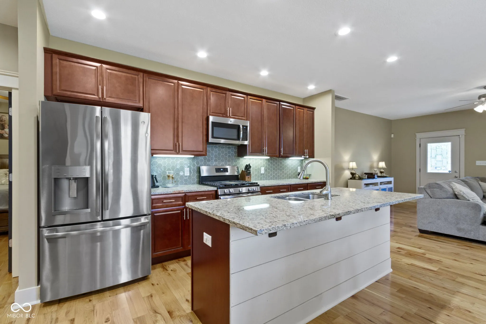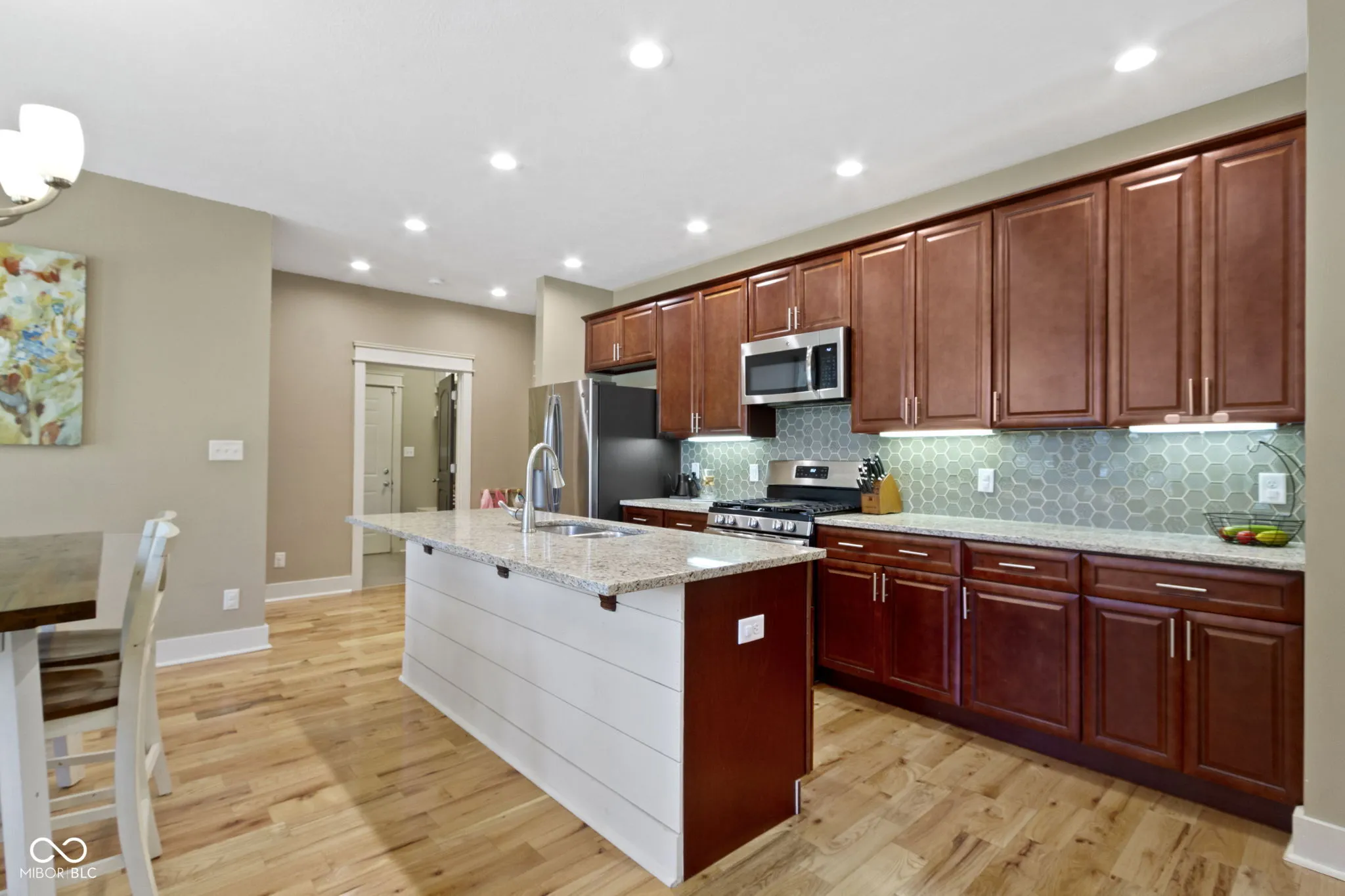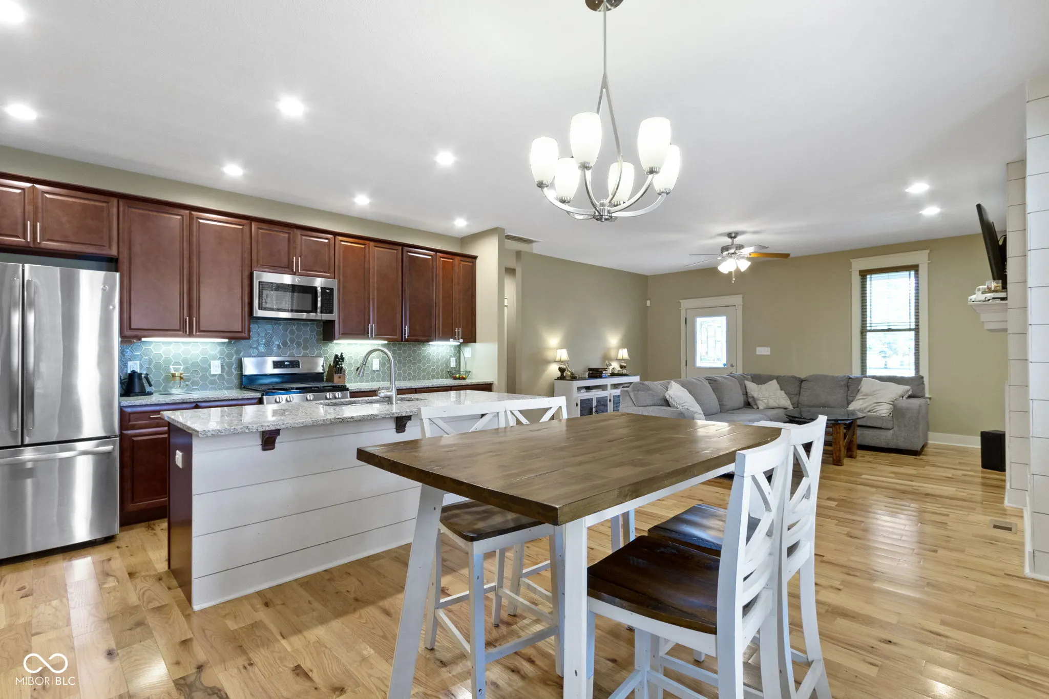 Feast your eyes on this delightful exclamation point of a home, dressed to impress and practically winking at you from the curb. Step inside and be wowed by a living room that’s not just a room, but a vibe-anchored by a cozy fireplace and a seriously stylish shiplap wall that whispers, “Come on in and stay awhile!” The open floor plan invites you to pirouette from the living room to a kitchen that’s ready for its close-up: shaker cabinets, stone countertops, a backsplash that adds just the right amount of pizzazz, and both a kitchen bar and large island practically begging for your next soiree. The primary bedroom continues the charm with a shiplap feature wall and a spa-like ensuite complete with a jacuzzi tub-your own private oasis after a long day. Two full bathrooms offer plenty of space and function, including a double vanity that promises no more elbowing matches during the morning routine. Outside, the fenced backyard whispers sweet nothings of summer barbecues, while the patio and pergola are ready for your most memorable outdoor moments. From the front porch, enjoy tranquil views of the pond while sipping a cup of coffee. You’re also just a short stroll to the Big 4 Trail, which leads you through the Abner Longley Park to the playground and splash pad-the ultimate family-friendly bonus! Let’s not forget the essentials: a dedicated laundry room, walk-in closet that’s practically begging for a shopping spree, and all the comfort of one-story living wrapped up in style. This gorgeous home is a one-level symphony of warmth, convenience, and character-ready for its next maestro.