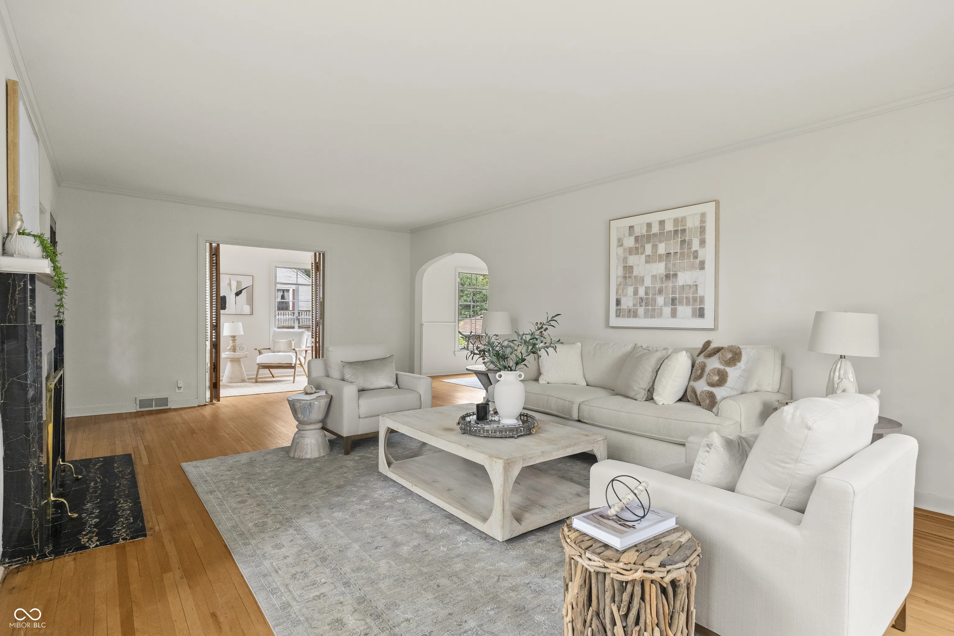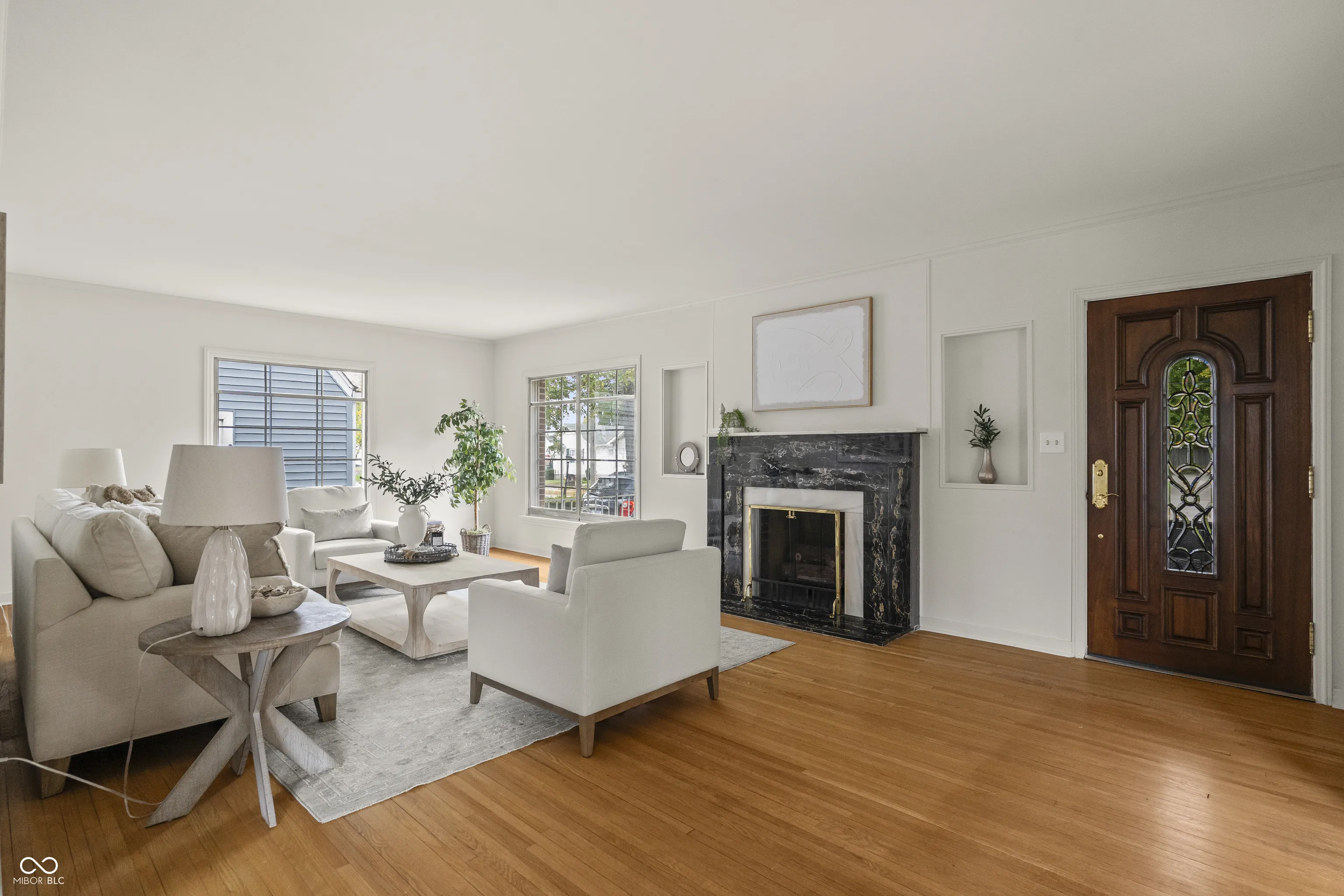 Discover the epitome of timeless elegance in this beautifully updated four bedroom masterpiece, perfectly situated on a prime corner lot in downtown New Castle. Step inside to original hardwood floors glowing under huge picture windows that flood the open-concept main level with natural light. A cozy fireplace anchors the living room, flowing into a charming breakfast nook and formal dining room. The remodeled kitchen shines with a built-in Sub-Zero fridge, electric induction cooktop, built-in oven, and hidden dishwasher tucked into the solid wood cabinetry. The primary suite is a serene retreat with a custom cedar-lined closet and plenty of natural light. Upstairs, you’ll find three more versatile bedrooms with matching cedar-lined storage and another full bathroom. The fully finished basement, with new carpeting, a second fireplace, and a half bathroom, offers space for entertaining or maybe even a home gym! Outside, an elevated patio with a built-in gas grill overlooks a tranquil koi pond and brick fenced in yard, perfect for gatherings with friends and family. A one-car attached garage and low-maintenance exterior with fresh landscaping give this house practicality and show stopping curb appeal. Steps from shops, parks, and New Castle Community Schools, with I-70 nearby for easy commutes to Indianapolis or Muncie, this home blends small-town charm with convenience. This home is priced to sell! Schedule a tour today before it’s gone.
