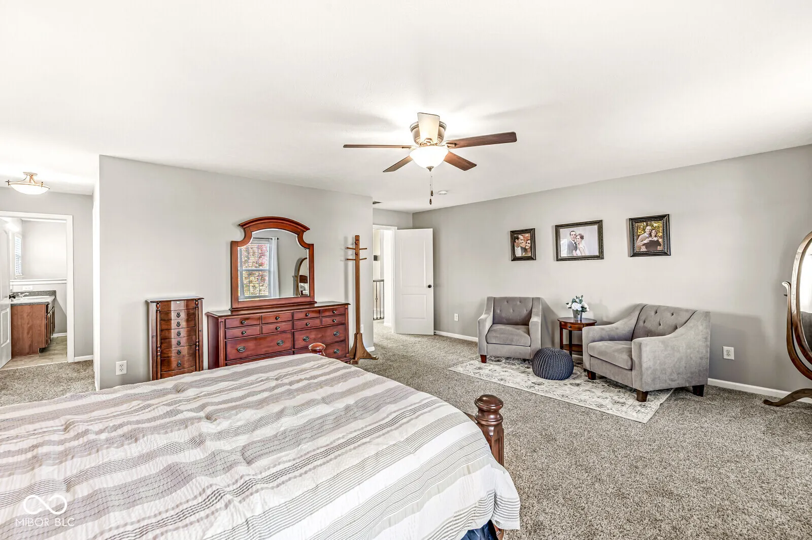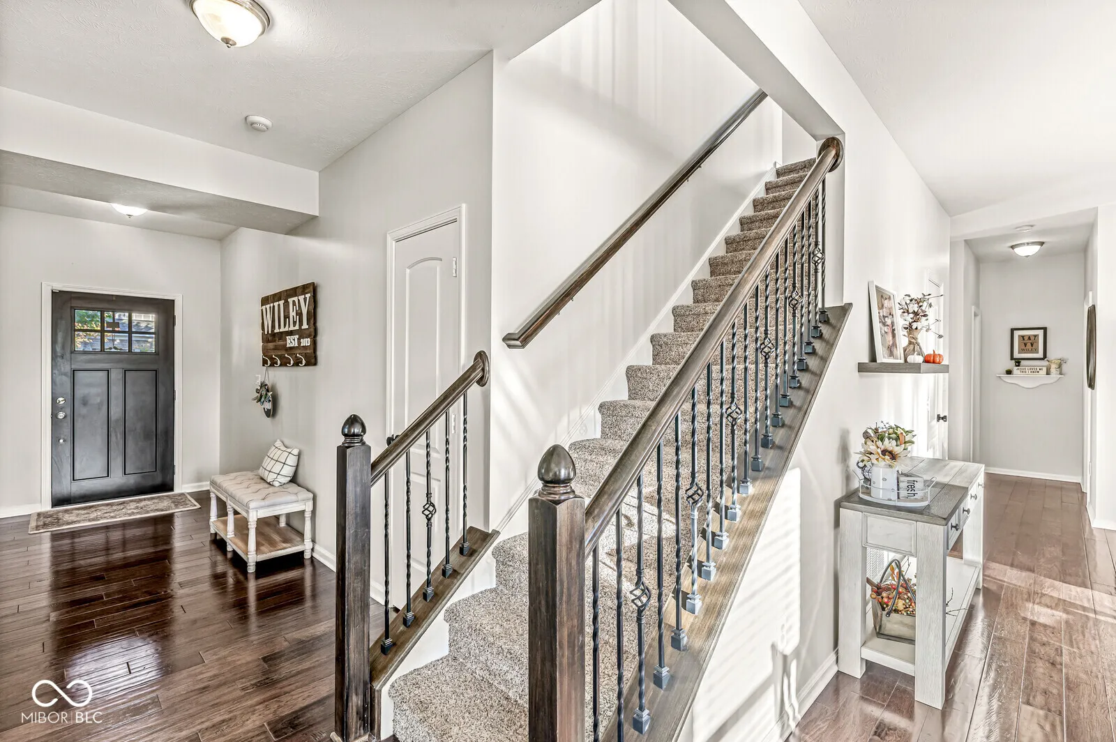 This might just be the one! This truly move-in ready 5 BR (one on the MAIN) wi 3 FULL baths, (primary has tub and shower). Home nestled on a .30 acre coveted corner lot, in established Twin Oaks of Noblesville with nice curb appeal, covered porch, and newly designed/landscaped backyard- includes large deck for entertaining friends and family. Inside, enjoy over 3150 sq. ft. with open concept, great flow of home, Private office wi double french doors, flex room-you choose its function. Features custom upgrades/touches like the loft with electric fireplace-NICE! Immaculately maintained. Discover beautiful preferred real wood engineered flooring on the main. Neutral fresh color palette. Upper BR’s all generous sizes wi ROOM TO RELAX. Primary BR 24′ x19′ (not a misprint). This home is “just right”! Come see for yourself.