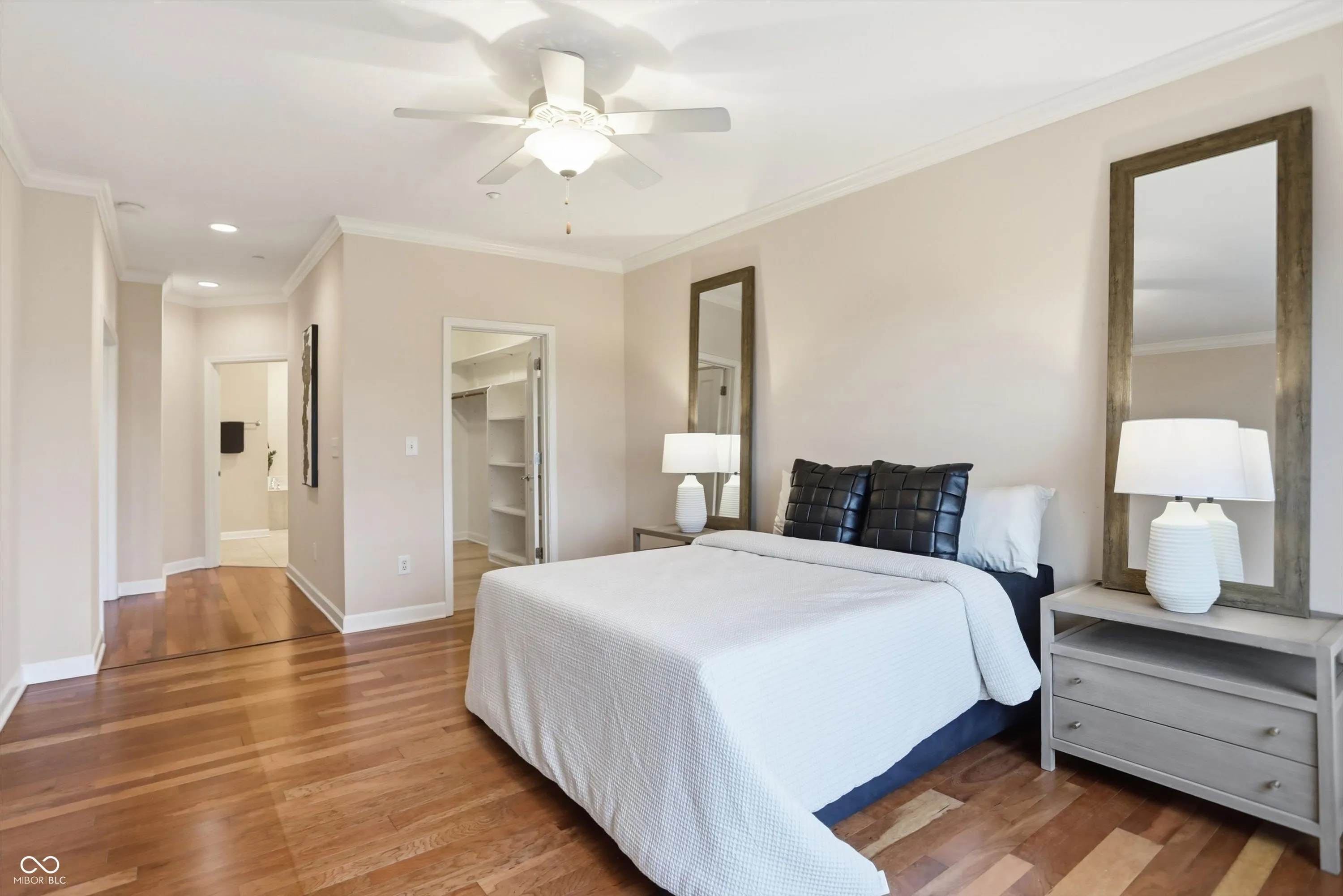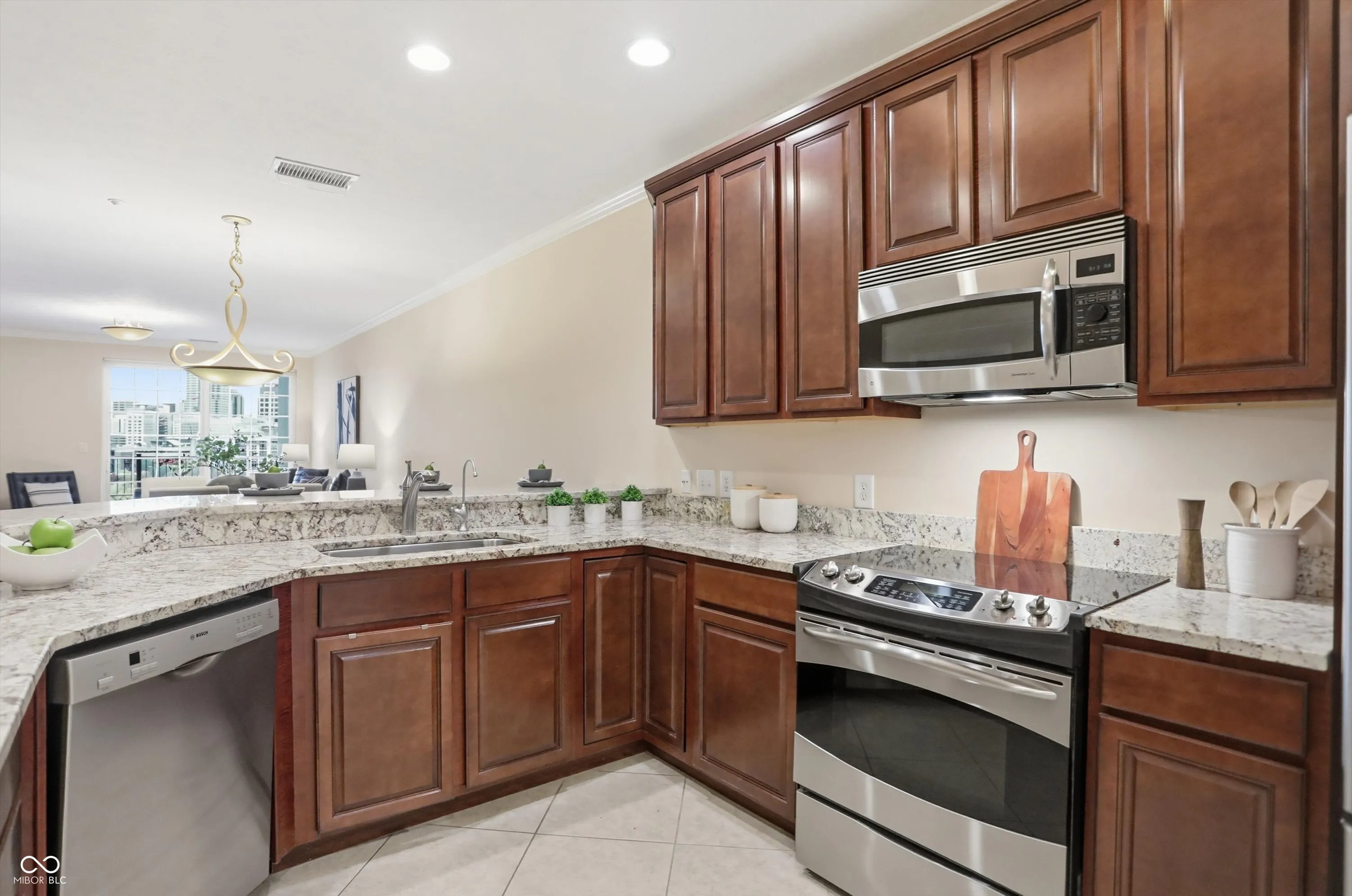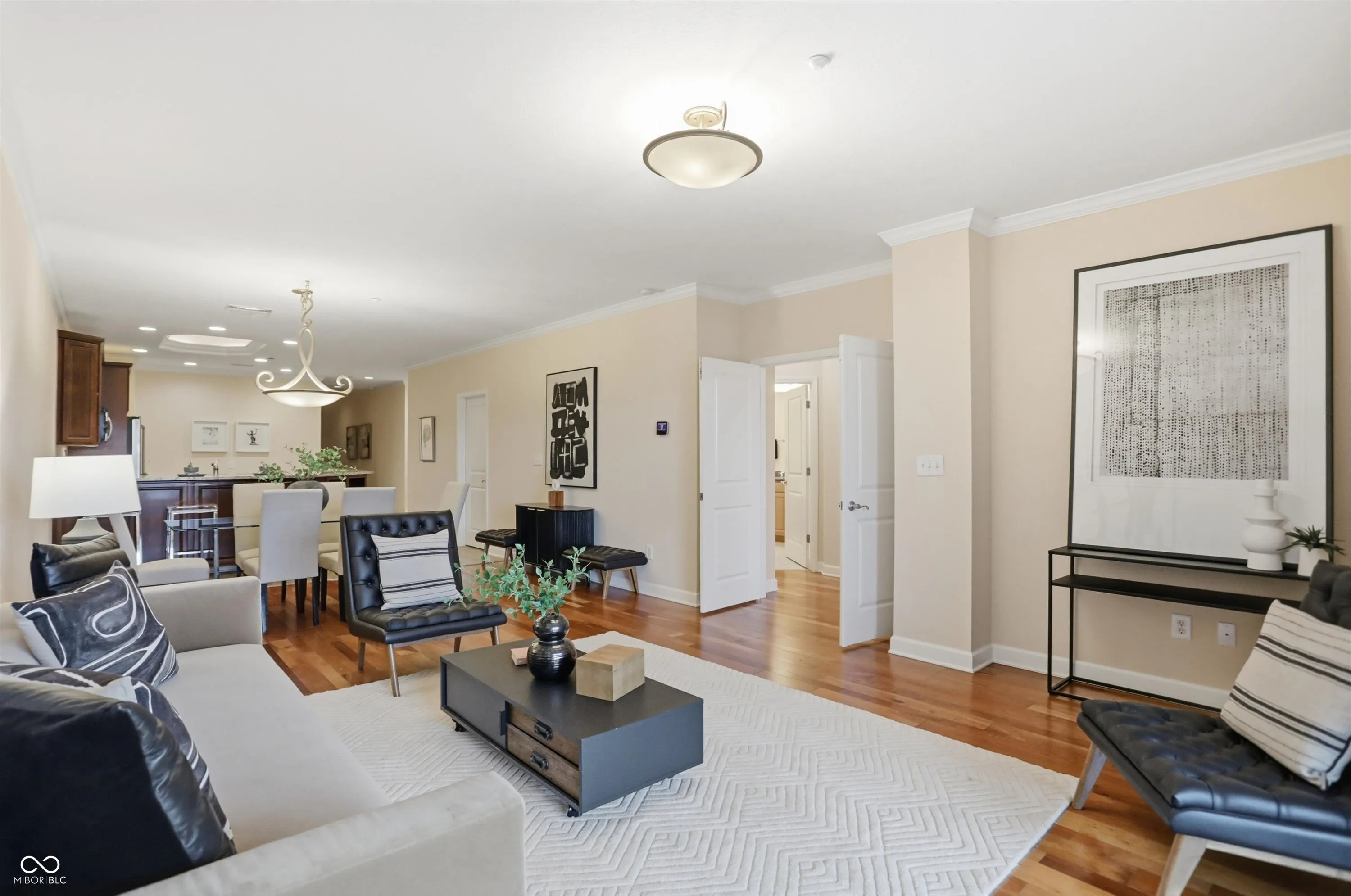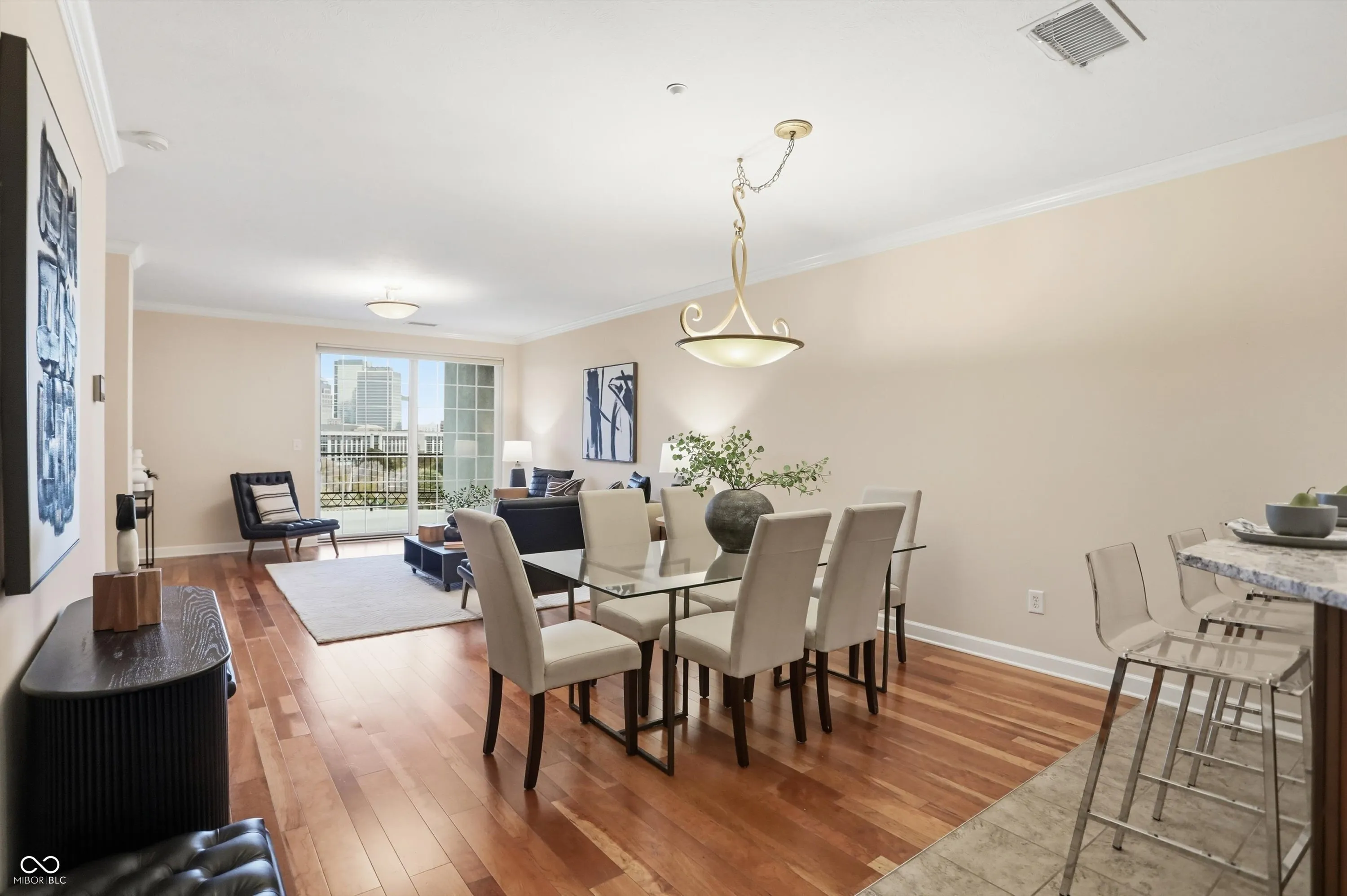The views are amazing from here! Enjoy your beautiful condo downtown on the Cultural Trail, close to Lucas Oil, Gainbridge and all that downtown has to offer. One of the middle units has 3 bedrooms, 2 full baths, and a primary bedroom with spectacular windows to overlook the skyline. Hardwood floors throughout the living area and tile kitchen and bath floors. Walk in closets in two of the bedrooms. A large storage area with shelving located on the third floor next to the exit to your two parking spaces. Guest parking on the 4th floor. A fitness center on the 5th floor. Pick up and drop off dry cleaning located in the fitness center. Secure outdoor pool, hot tub and kitchen to enjoy. Spacious common areas. Hasuno restaurant, hair salon, dental office and Golo golf located on main level of this building. Protected mail room for all deliveries. Don’t miss the opportunity to see this great condo!