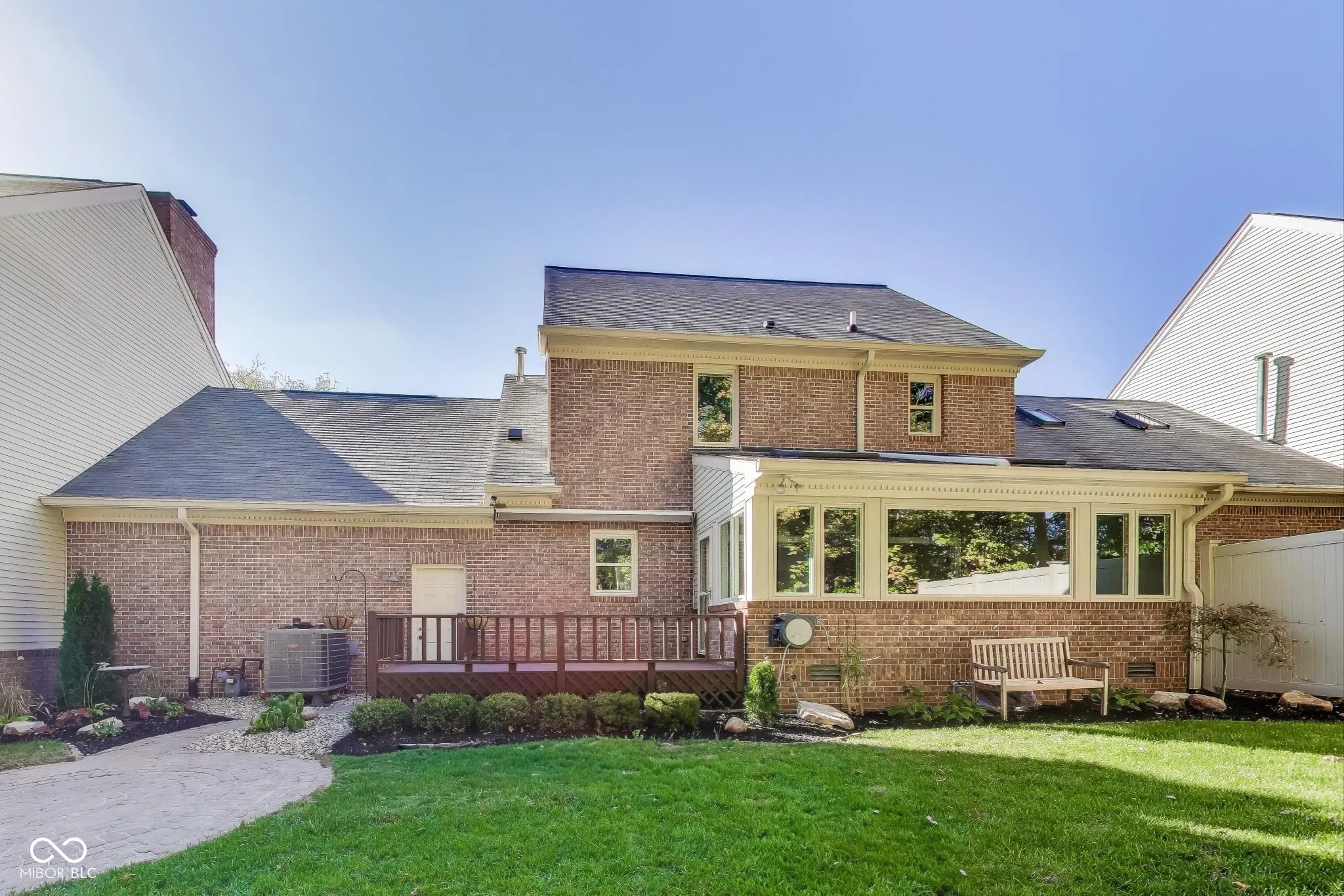Welcome to 13587 Kensington Place, a beautifully crafted townhome tucked within an exclusive one-street community in the heart of Carmel. Thoughtfully designed with timeless finishes, this home combines comfort, charm, and convenience in a prime location. A two-story foyer opens to a warm and inviting living area anchored by a cozy gas fireplace. The kitchen features granite countertops, stainless steel appliances, a gas cooktop, and a reverse osmosis water filtration system. Just off the kitchen and formal dining room, the sunroom offers a bright and peaceful space to enjoy your morning coffee while taking in tranquil backyard views through the new picture windows. Step outside to a newly landscaped and meticulously maintained backyard oasis, where a paver patio, spacious deck, and wooded backdrop create the perfect setting for relaxing or entertaining. Upstairs, the primary suite is bright and spacious with a full bathroom featuring a soaking tub, walk-in shower, and dual sinks. Bedroom two offers a private ensuite bath, while the large third bedroom provides flexibility for guests, a home office, or a comfortable lounge area. The laundry room is conveniently located upstairs for added ease. Over $76K of new updates include all new windows, two new skylights with built-in electric shades, new carpet in the living and dining rooms, fresh paint and caulking throughout, new landscaping front and back, and more. Major systems are also newer for peace of mind, including the water heater (2021), HVAC (2023), heat pump (2023), roof (6 years), and water softener. Enjoy an unbeatable location just a short walk or bike ride along the Monon Trail to downtown Carmel’s Arts & Design District, home to art galleries, boutique shopping, top-rated dining, and community events. Private access to Meadowlark Park, located at the end of the street, offers fishing, walking trails, a playground, and pickleball courts. Come see why Kensington Place is a hidden gem in the heart of Carmel!