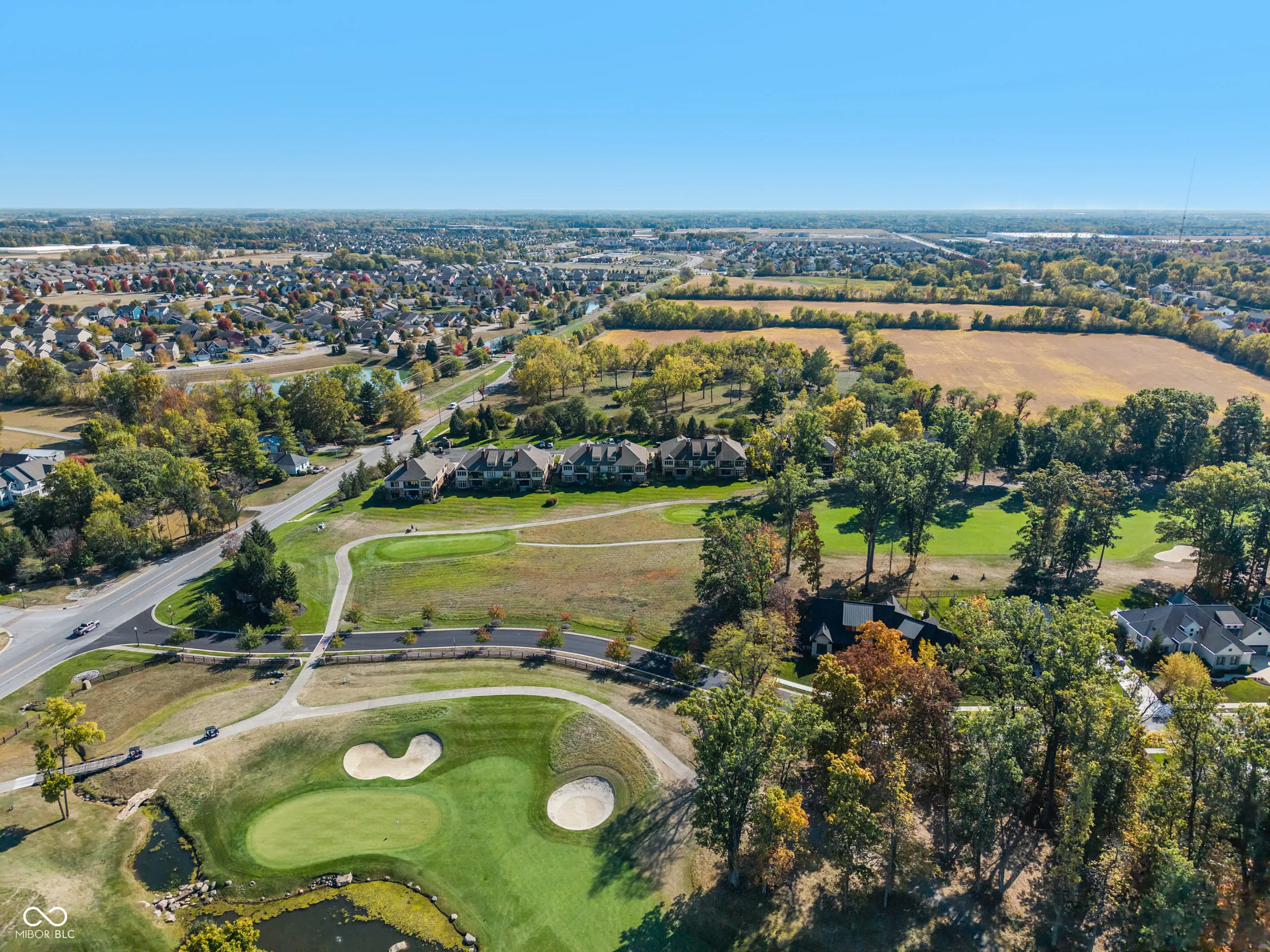 WOW! Luxury living w/impressive views of the private 18-hole Jack Nicklaus Signature designed course in sought after Sagamore. Enjoy a maintenance free lifestyle in the gated community located on the 13th fairway. Welcoming main level & garage entry just steps away from your private elevator for convenience. This high end 2nd level condo offers 3 bedrooms + a den. The large open concept great room/dining room/kitchen flow together making entertaining easy. Soaring ceilings & windows that flood the space w/ natural light and panoramic views overlooking 4 holes on the golf course. Great Room includes cozy fireplace w/ built ins & cathedral ceiling. Kitchen features white quartz counters, tile backsplash, double oven, breakfast bar w/seating for 6, high end cabinets w/dovetailed drawers, pullouts + large pantry. From the Hearth or Breakfast Room step out to a screened in porch + covered balcony to enjoy morning coffee and stunning sunsets. Den w/built ins offers a cozy retreat/office space. Owners suite provides more gorgeous views, towering ceiling, his & her closets. Ensuite bath w/comfort height quartz vanities, soaking tub & shower. 2 additional bedrooms, one w/direct ensuite bath, the other currently used as a family room. 10′ ceilings, 8′ solid doors, quality craftsmanship, size & THE VIEW, nothing compares! Sellers extending a Sagamore Club Membership featuring on site dining, pools, pickleball, tennis, workout facility & classes, social events & kids club. Convenient location just a short drive to everything you need. So much to love!