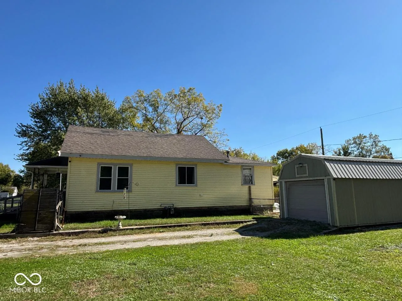 Cozy bungalow on three lots! This well-kept home offers 2 bedrooms plus a partially finished upstairs that could serve as a third bedroom, office, or flex space. Seller reports numerous updates within the last 5 years, including insulated walls and attic, aluminum siding, replacement windows, furnace and central air, vinyl and vinyl plank flooring, front storm and entry doors, and ceiling fans. The bathroom features an updated vanity and walk-in shower, and the large covered wood deck with ramp makes for an inviting front entry. You’ll also love the spacious 12×32 garage built in 2022 – perfect for parking, hobbies, or storage – plus an additional large shed/workshop with covered storage. The mostly fenced yard gives you plenty of space to enjoy outdoor living!