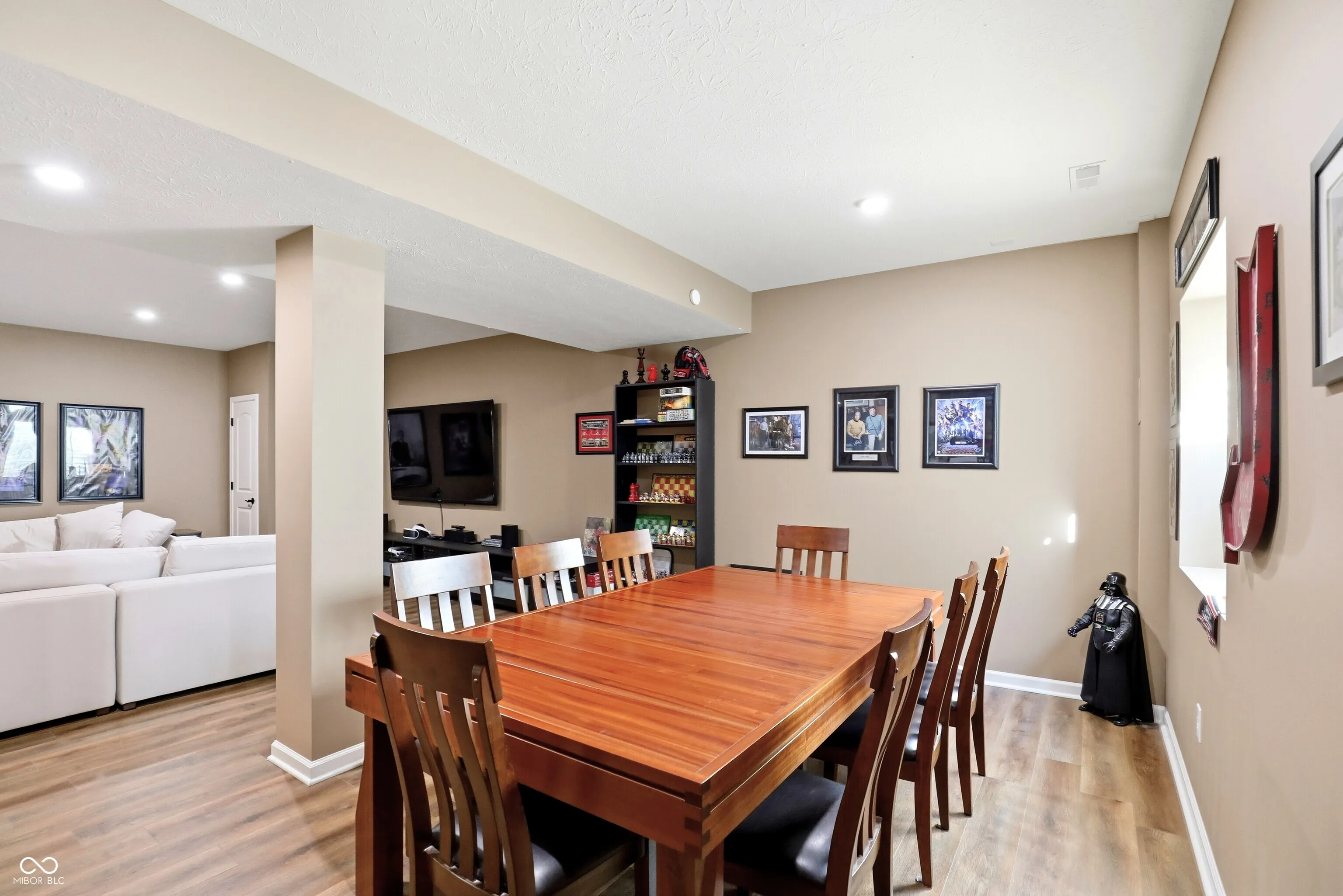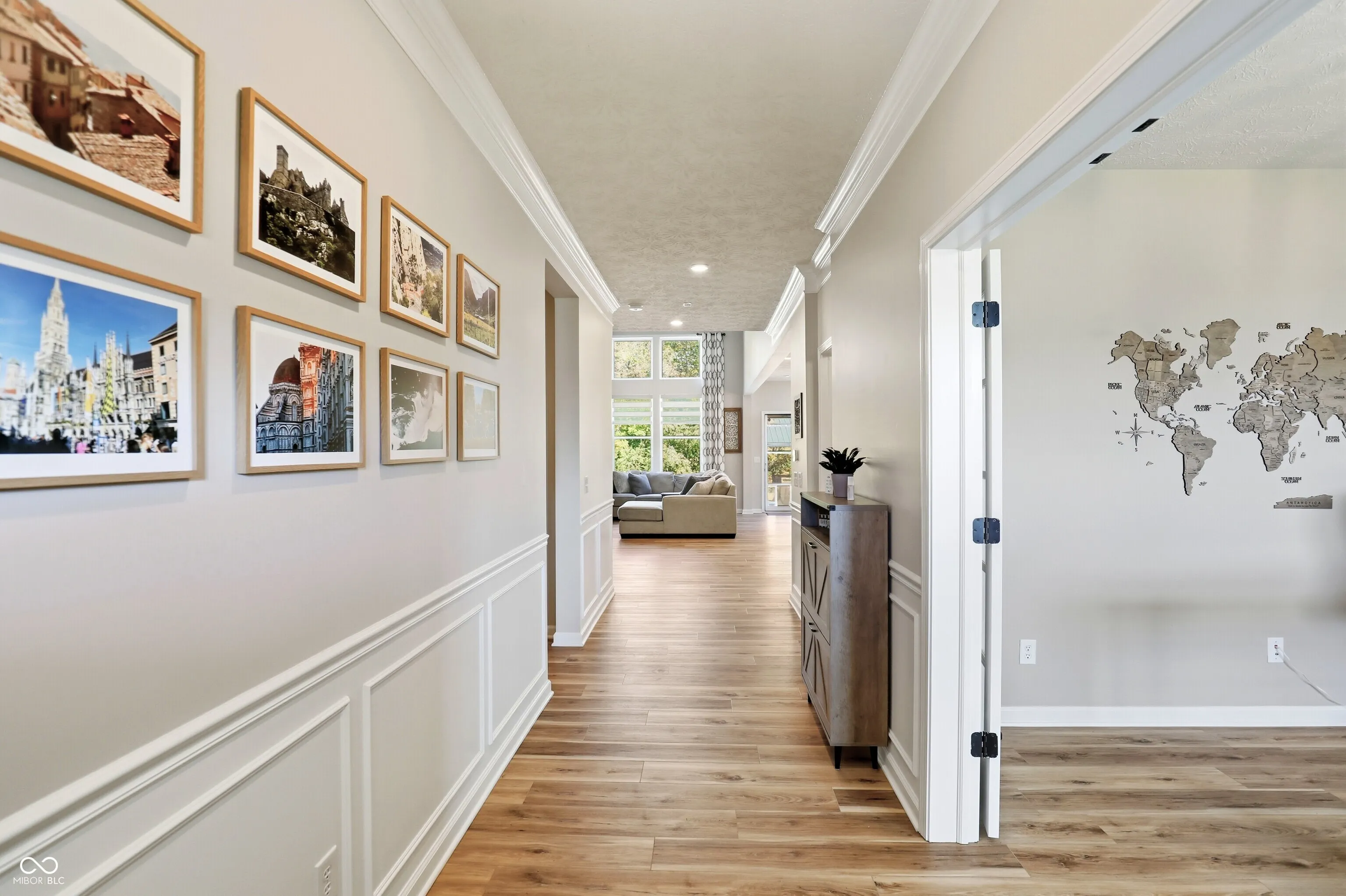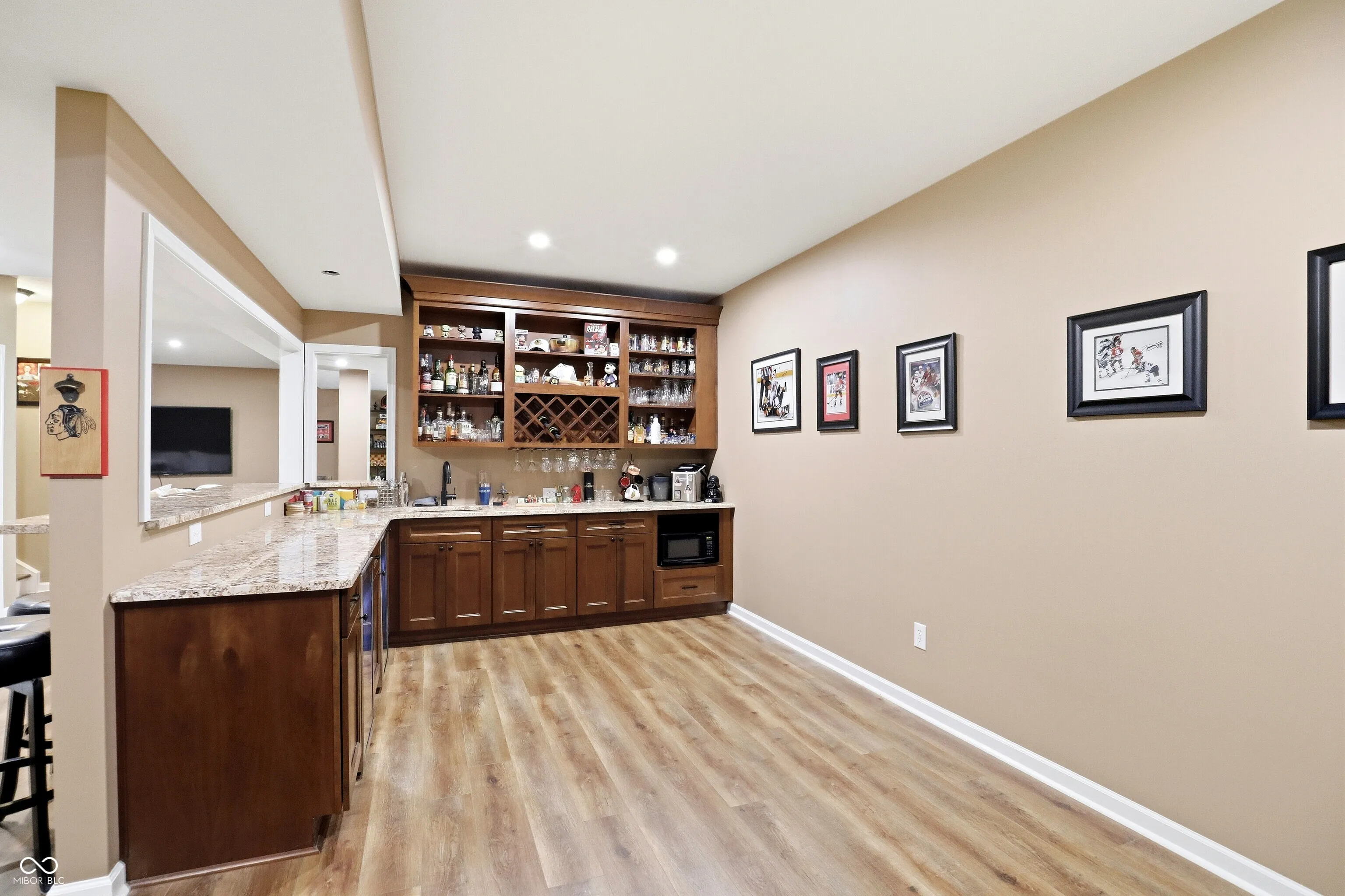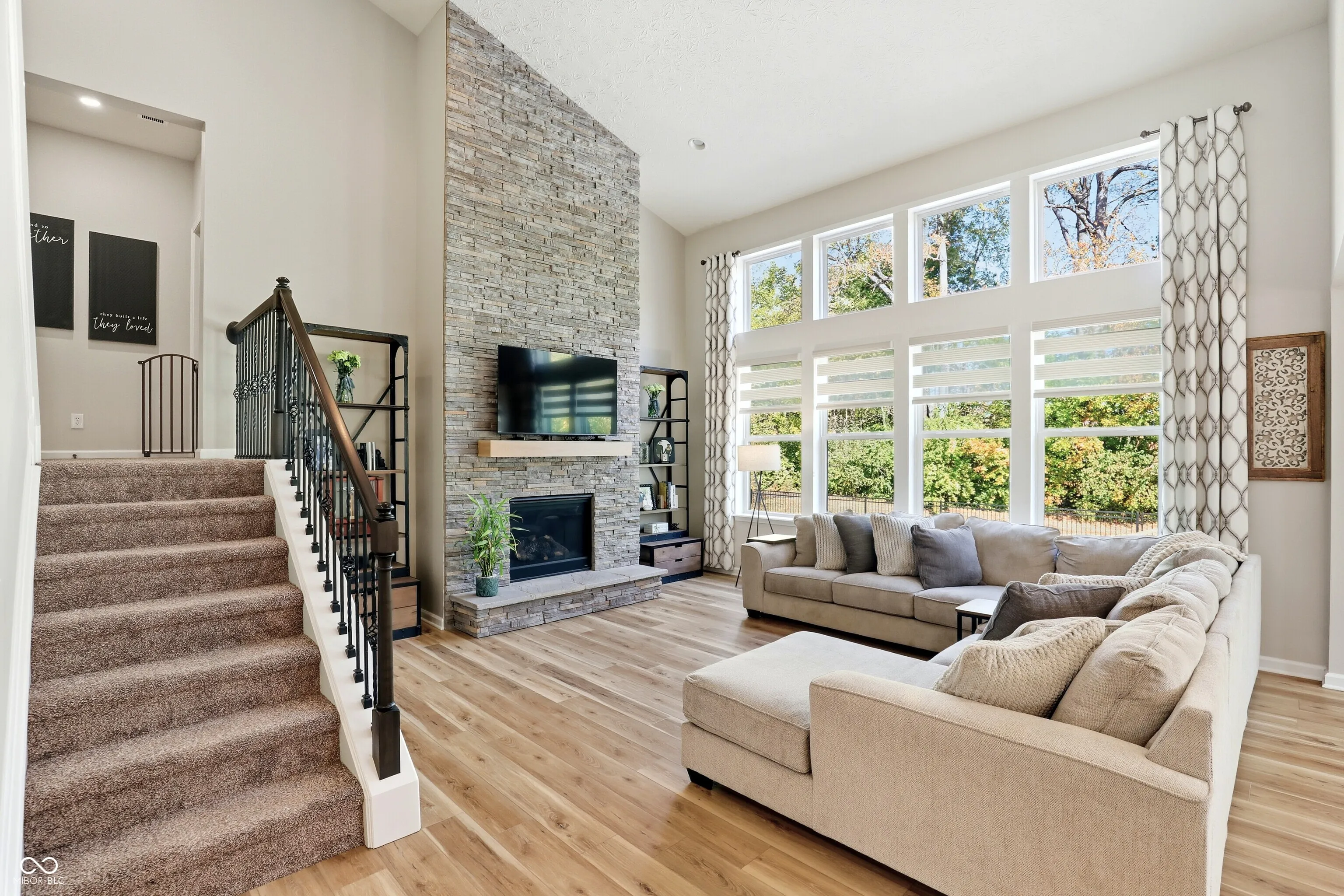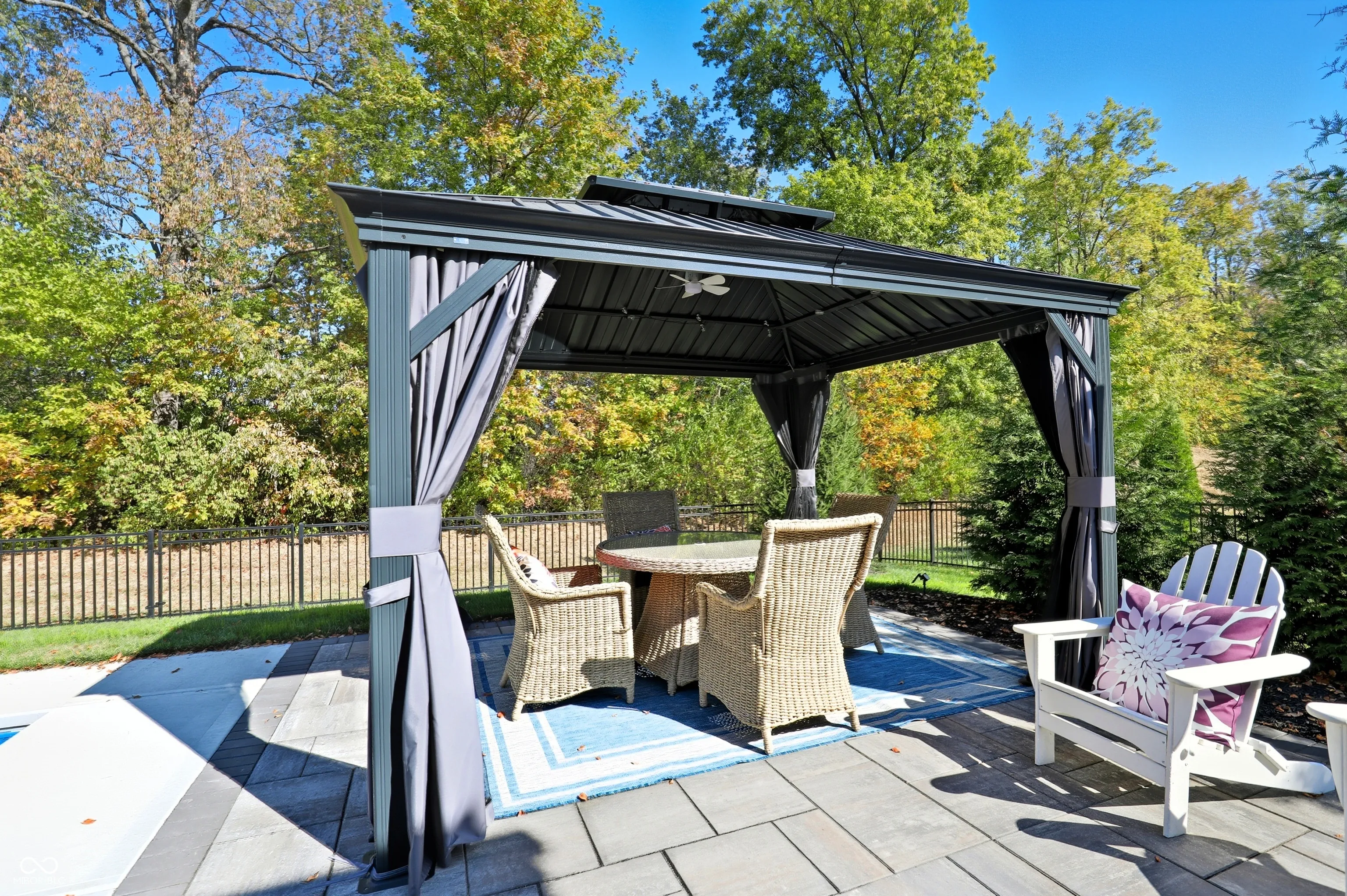 Tucked in Noblesville’s Wood Hollow community, this beautifully updated 4-bedroom, 3.5-bath home blends modern comfort, refined finishes, and exceptional outdoor living. Set on a quiet cul-de-sac and backing up to mature trees, it offers both privacy and a peaceful backdrop that enhances every view. The inviting open floor plan centers around a stunning 2-story great room with a floor-to-ceiling stone fireplace and walls of windows that fill the space with natural light. The gourmet kitchen features new countertops, sink, backsplash, and dishwasher, complemented by a large center island and adjoining dining area-perfect for everyday living and effortless entertaining. A flexible rec room adjoins the main living space, while the split floor plan provides privacy for the spacious primary suite, complete with a spa-like bath and custom closet system. The newly finished lower level expands the home’s functionality, offering a full wet bar, full bath, and generous living area ideal for guests, a home theater, or fitness space. Step outside to your private, fenced backyard retreat featuring a resort-style pool, paver patio, and elegant gazebo for shaded relaxation. Additional updates include new LVP and carpet, plantation shutters, cased windows, smart thermostat, Ring security system, and refreshed landscaping with added trees and lighting. With more than $250K in thoughtful improvements, this move-in ready home embodies modern comfort, timeless style, and an effortless sense of tranquility. Welcome home to Wood Hollow.