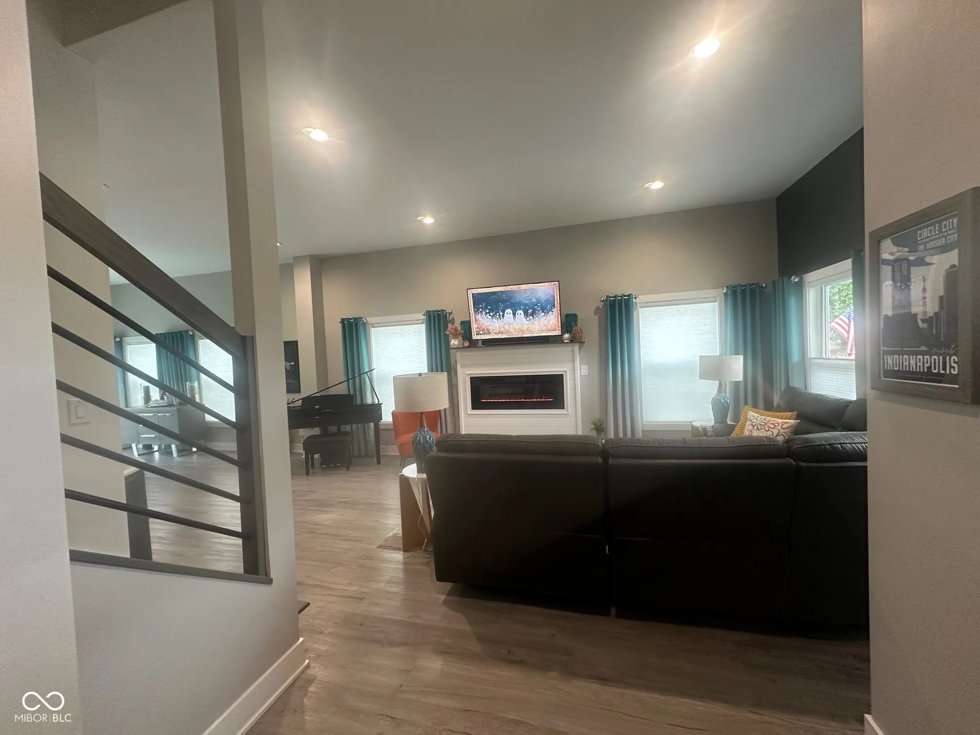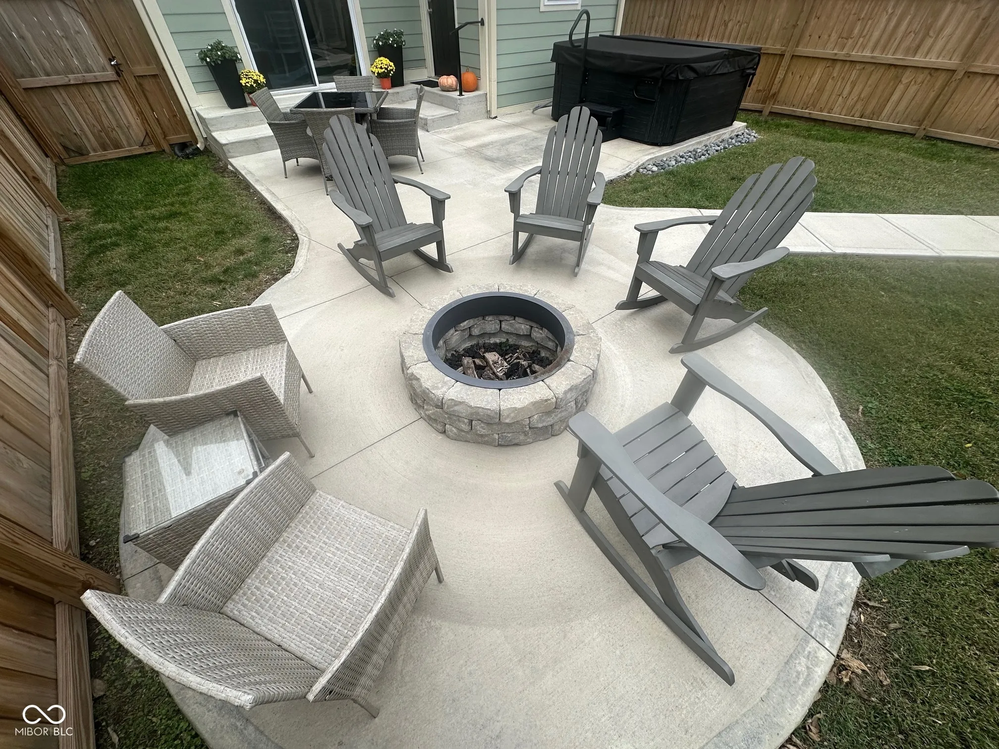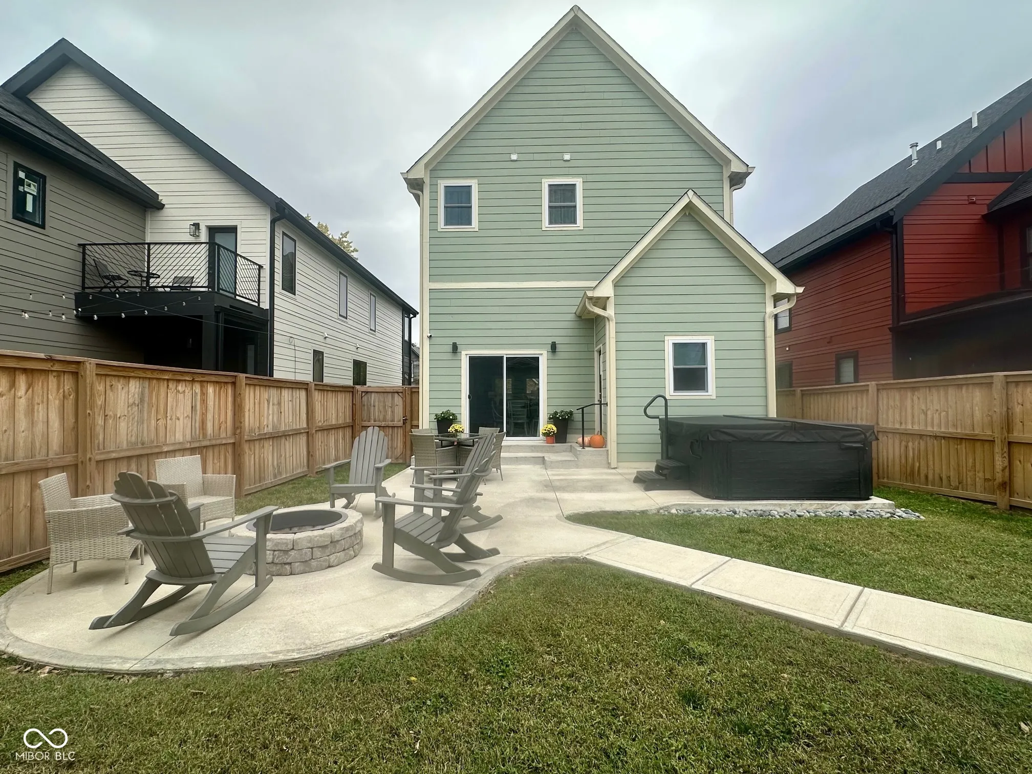 Welcome Home to the Hillside Neighborhood! Experience modern comfort and style in this beautiful like-new build, perfectly situated in the desirable Hillside neighborhood – just a short walk to the Monon Trail, connecting you directly to the Bottleworks District and Mass Ave. Enjoy great curb appeal with a large covered front porch that leads into an inviting open-concept floor plan. The spacious foyer flows into the living room featuring a custom shiplap fireplace surround and opens to an oversized dining and kitchen area – perfect for entertaining. The kitchen offers quartz countertops, stainless steel appliances including double ovens, a walk-in pantry, and ample cabinet space, complemented by a custom box ceiling and stylish finishes. Upstairs, the primary suite serves as a relaxing retreat with a dual-vanity en-suite bath and walk-in closet. Two additional bedrooms share a full guest bath, and the laundry room is conveniently located on the upper level. Step outside to a beautifully landscaped and fully fenced backyard with a custom fire pit and multiple concrete patio spaces designed for entertaining. The finished 2.5-car garage includes natural wood beadboard walls, overhead shelving, and a pull-down attic for additional storage. Notable features and upgrades include: * Water softener & Navien tankless water heater * Zoned HVAC system with electronic dampers & thermostats on both levels * HVAC air purifier for improved indoor air quality * Custom paint colors, top-down/bottom-up blinds, and detailed trim work * LVP flooring throughout main level and primary suite * Wooden staircase with LVP landing and hallway Optional items (negotiable): hot tub, outdoor furniture, and washer/dryer. Modern luxury, thoughtful upgrades, and a prime location – this Hillside home truly has it all!