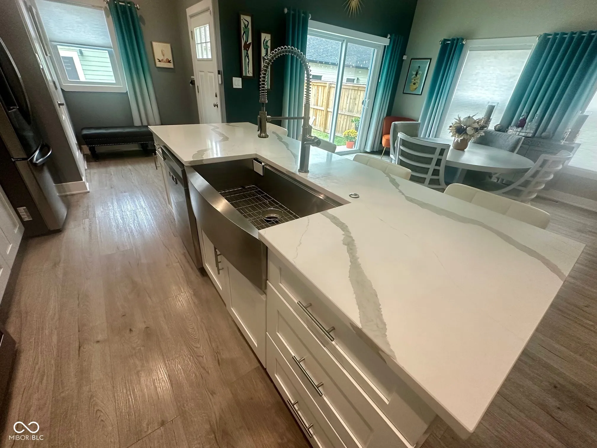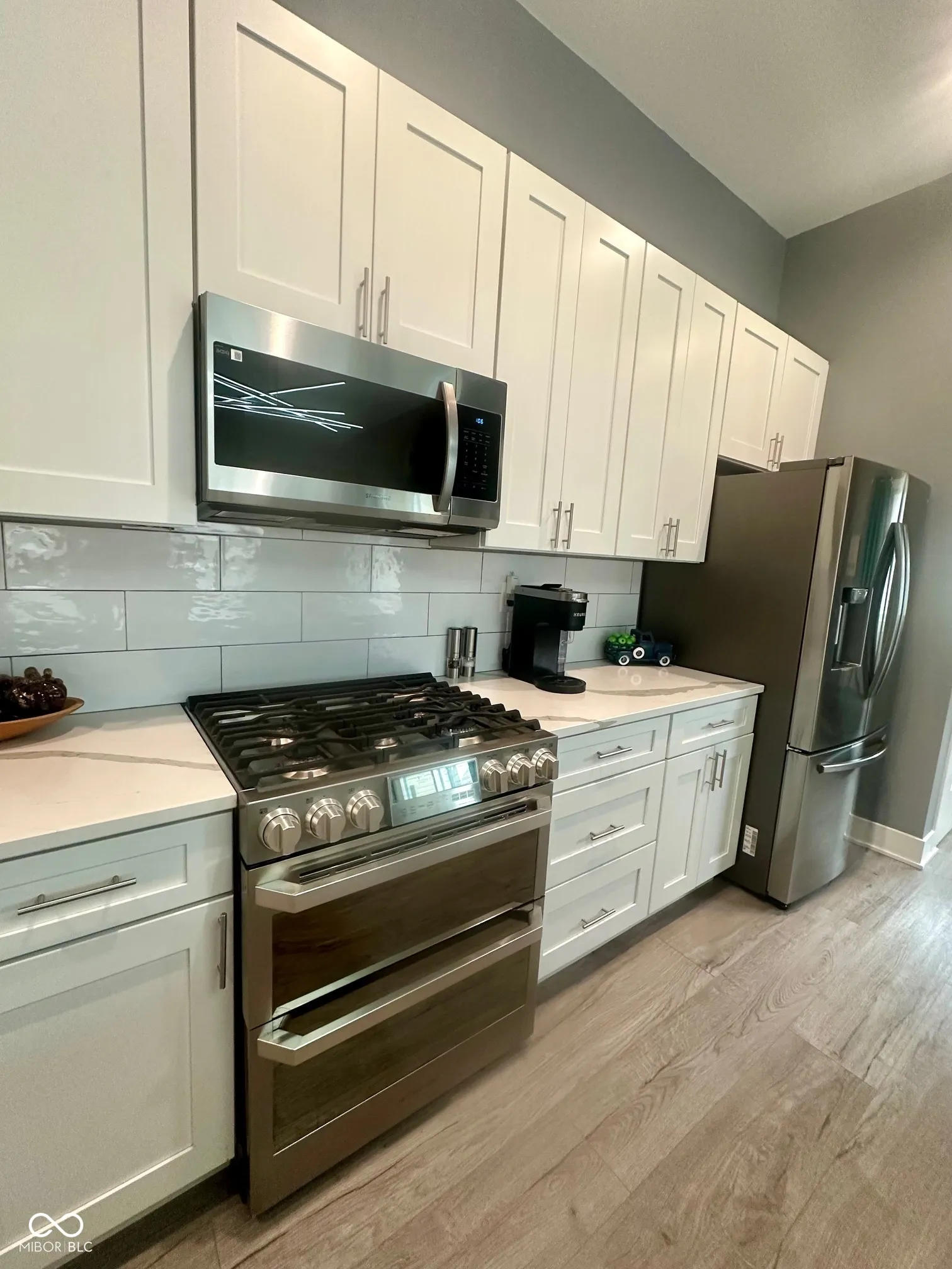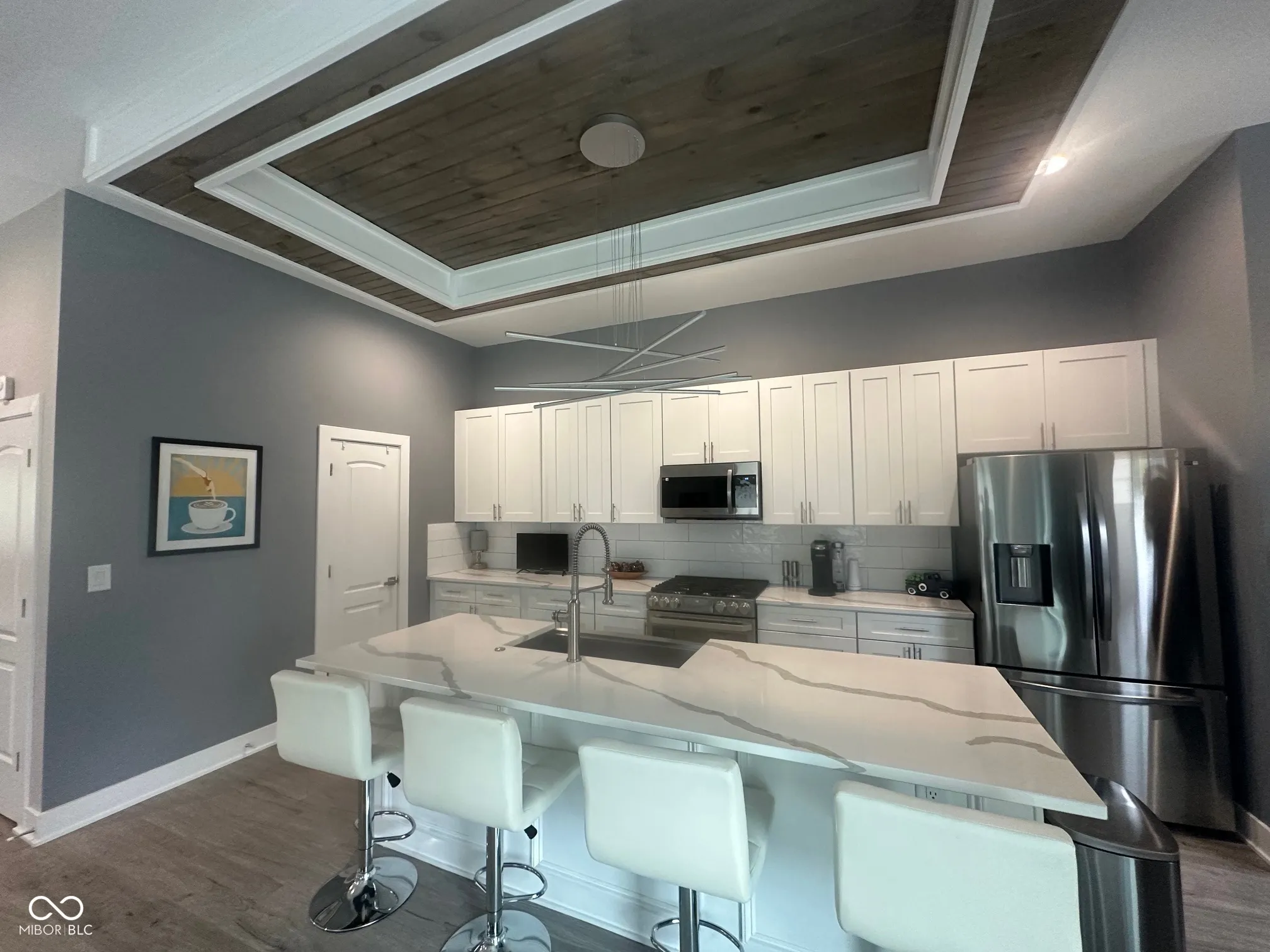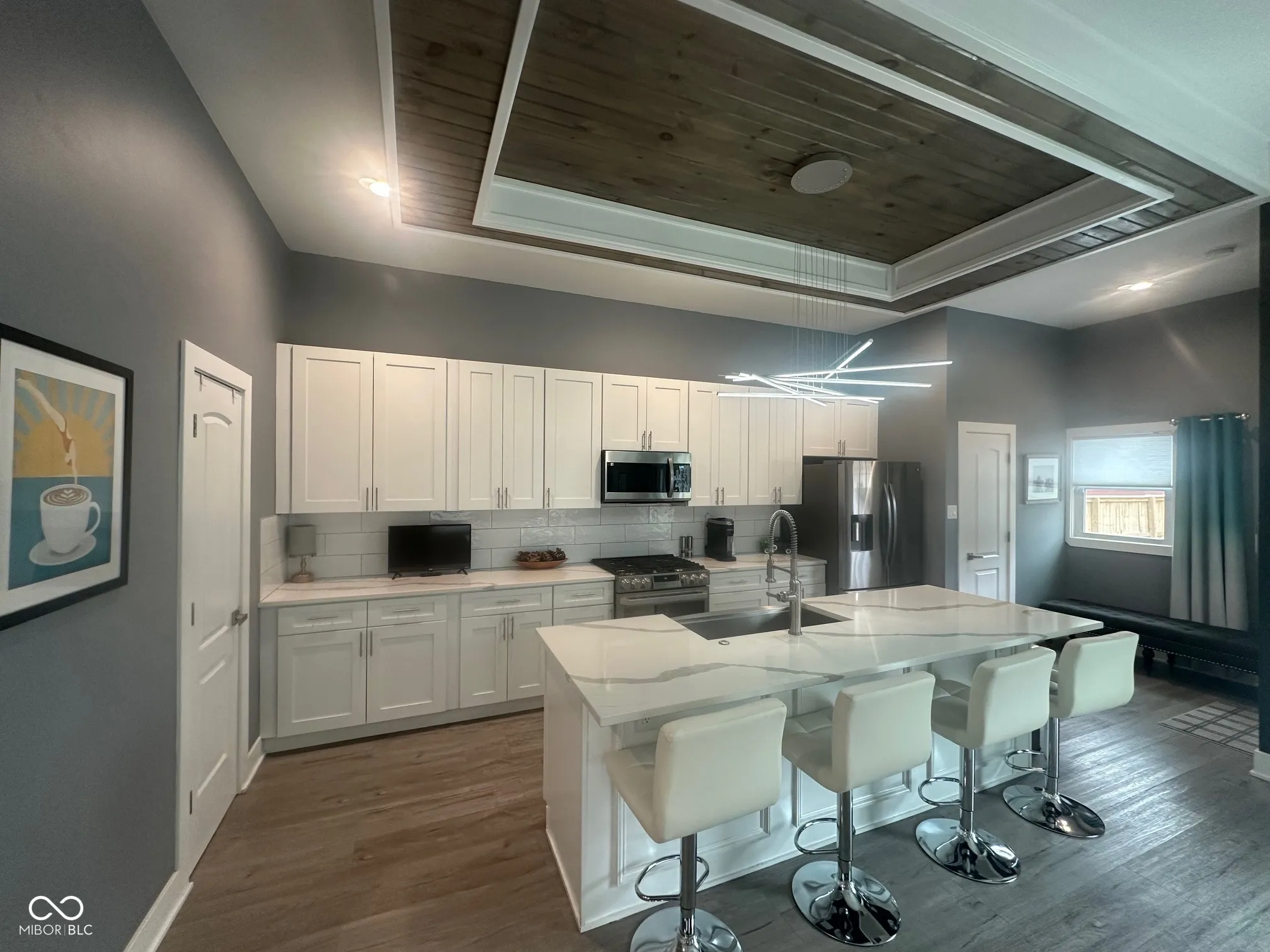 Welcome Home to the Hillside Neighborhood! Experience modern comfort and style in this beautiful like-new build, perfectly situated in the desirable Hillside neighborhood – just a short walk to the Monon Trail, connecting you directly to the Bottleworks District and Mass Ave. Enjoy great curb appeal with a large covered front porch that leads into an inviting open-concept floor plan. The spacious foyer flows into the living room featuring a custom shiplap fireplace surround and opens to an oversized dining and kitchen area – perfect for entertaining. The kitchen offers quartz countertops, stainless steel appliances including double ovens, a walk-in pantry, and ample cabinet space, complemented by a custom box ceiling and stylish finishes. Upstairs, the primary suite serves as a relaxing retreat with a dual-vanity en-suite bath and walk-in closet. Two additional bedrooms share a full guest bath, and the laundry room is conveniently located on the upper level. Step outside to a beautifully landscaped and fully fenced backyard with a custom fire pit and multiple concrete patio spaces designed for entertaining. The finished 2.5-car garage includes natural wood beadboard walls, overhead shelving, and a pull-down attic for additional storage. Notable features and upgrades include: * Water softener & Navien tankless water heater * Zoned HVAC system with electronic dampers & thermostats on both levels * HVAC air purifier for improved indoor air quality * Custom paint colors, top-down/bottom-up blinds, and detailed trim work * LVP flooring throughout main level and primary suite * Wooden staircase with LVP landing and hallway Optional items (negotiable): hot tub, outdoor furniture, and washer/dryer. Modern luxury, thoughtful upgrades, and a prime location – this Hillside home truly has it all!