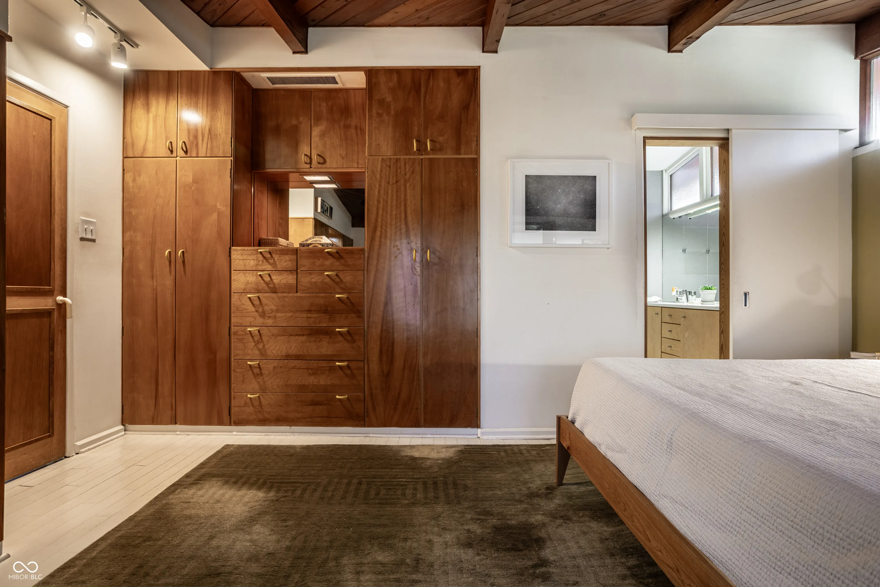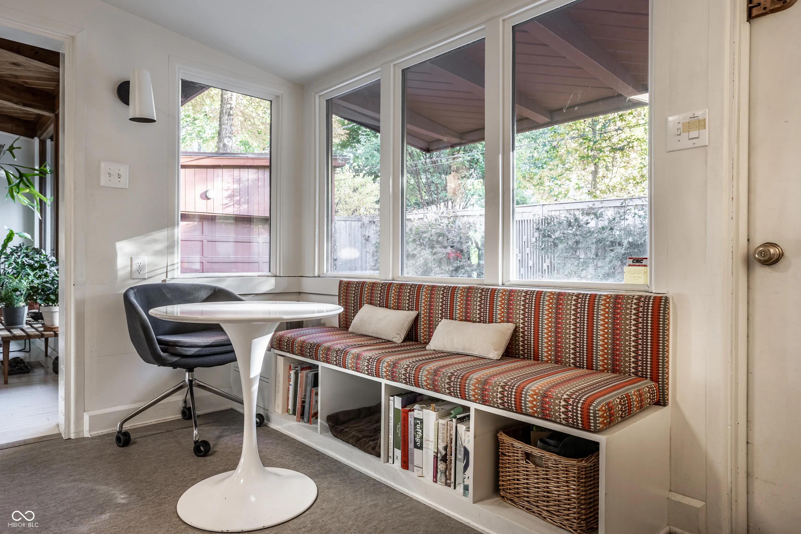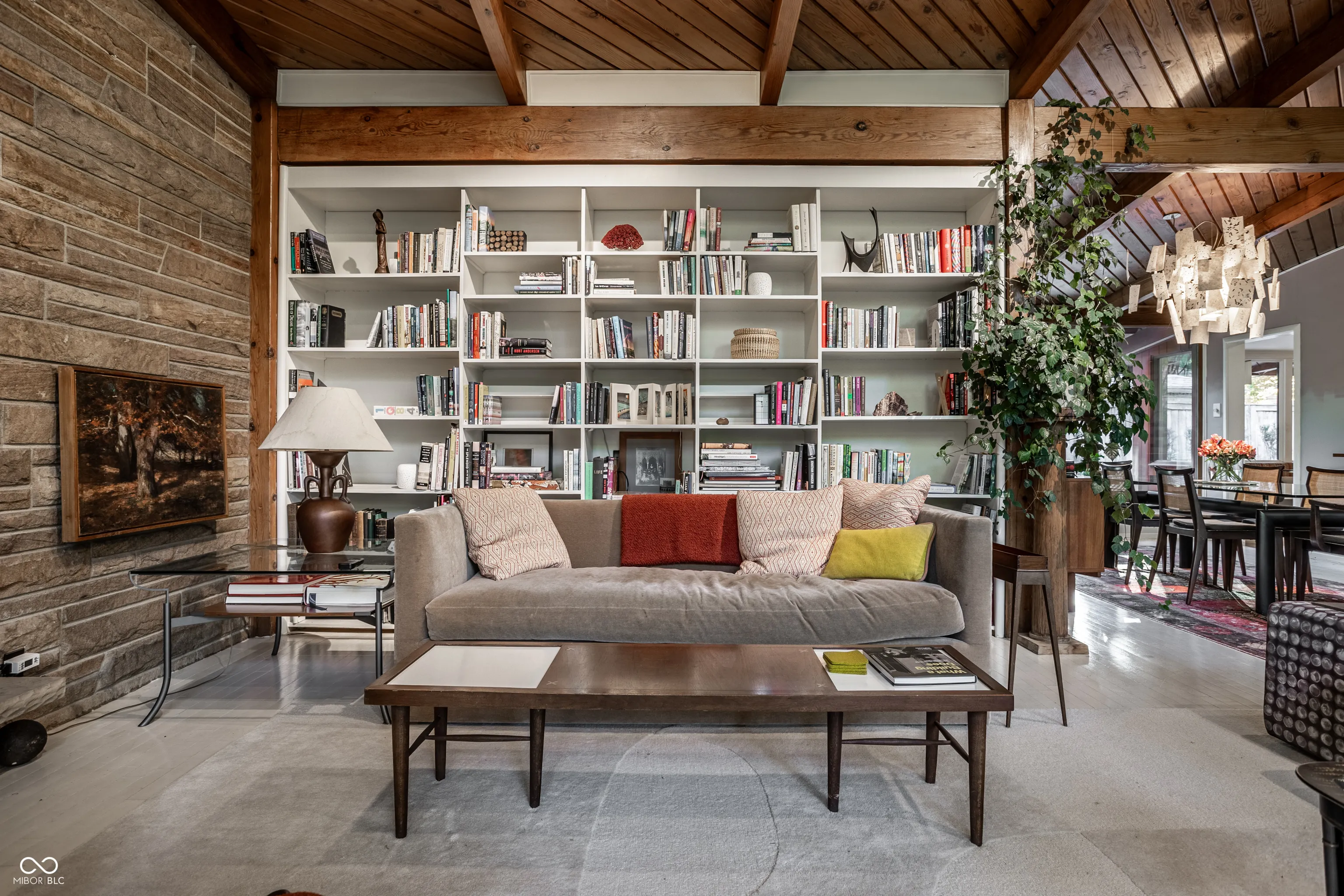 MID-CENTURY MODERN in heart of Meridian-Kessler; 3 BR/2.5 baths; 11-foot floor-to-ceiling windows overlook park-like front lawn with mature trees, Koi pond and bocce court; post-and-beam construction; light-filled house remains true to 1953 (original SS kitchen counters and cabinets, built-ins throughout house) but is also tastefully updated – with a significant addition (designed by Mark Demerly, built by Bly Bennett 2018), new membrane/commercial grade roof (2015), new HVAC system (2025), new kitchen appliances (2024). Backyard consists of a large, private, walled, professionally landscaped garden and patio designed for entertaining/dining.