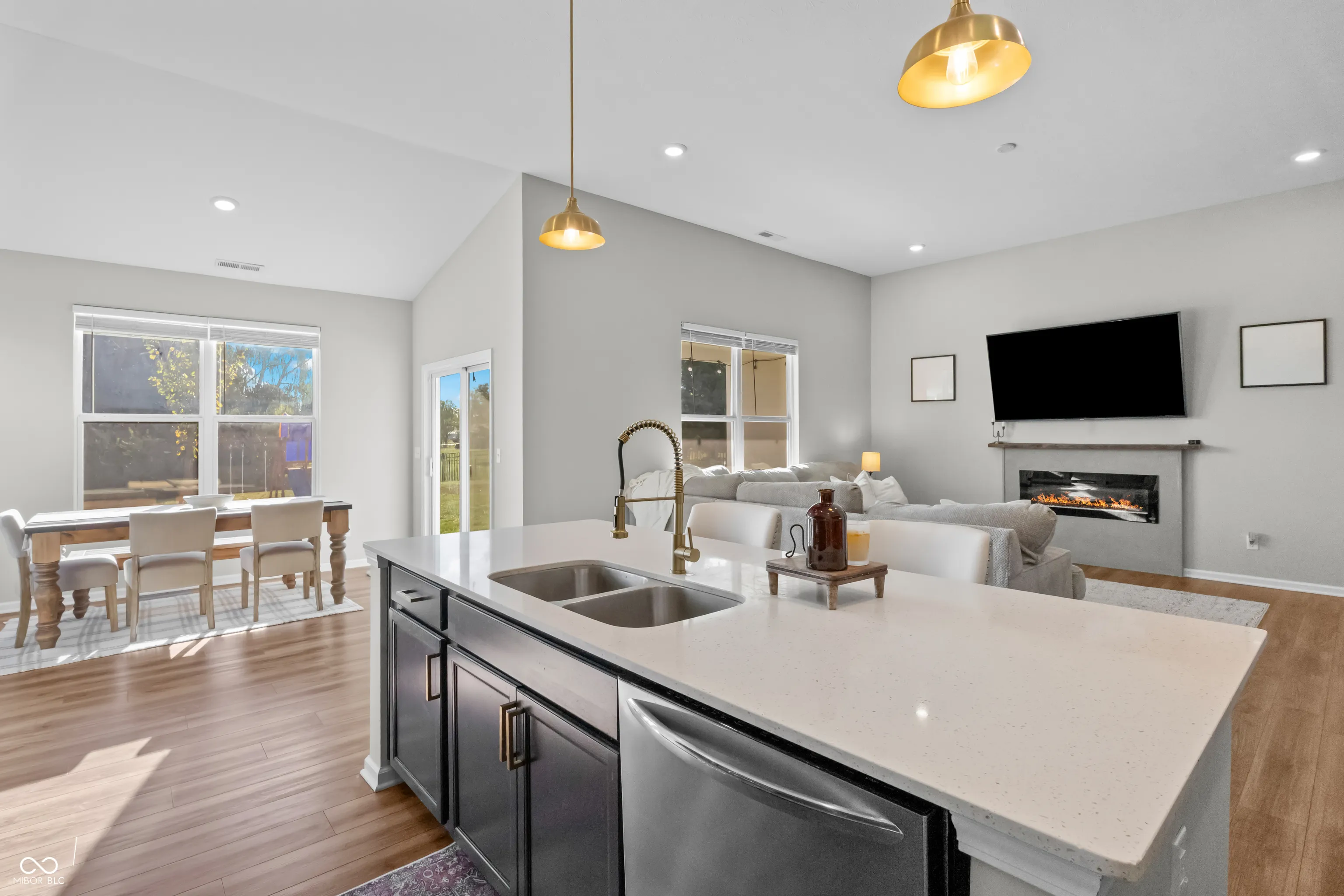 Welcome to this beautifully crafted ranch home, built in 2022. Offering a perfect balance of modern design, comfort, and practicality, this home is sure to impress. As you enter, you’re greeted by a bright and open great room that seamlessly blends the living, kitchen, and dining areas. The sleek, modern kitchen is a standout with its stainless steel appliances, elegant quartz countertops, and a spacious island with built-in outlets-ideal for meal prep, entertaining, or enjoying casual meals. The living area is anchored by a stylish built-in electric fireplace, adding both warmth and sophistication to the space. The large primary suite provides a serene retreat, featuring a luxurious ensuite bathroom with double vanity sinks, a beautifully tiled walk-in shower, and a generously sized walk-in closet. For added convenience, direct access to the laundry room is just off the suite, as well as easy access from the adjacent sitting room near the garage. Both the second and third bedrooms are generously sized, each offering its own walk-in closet. The second full bathroom features a double vanity and a tub/shower combo, making it perfect for family or guests. Additional highlights include clean, modern finishes throughout, recessed lighting, and a spacious, oversized two-car garage with plenty of room for storage. Outdoor living is equally impressive, with a charming covered front porch and a large covered back patio-complete with ceiling fan and lighting-providing the perfect setting for year-round enjoyment. This is a rare opportunity to own a home in Wildflower Estates below market value. And an HOA of only $150/year.