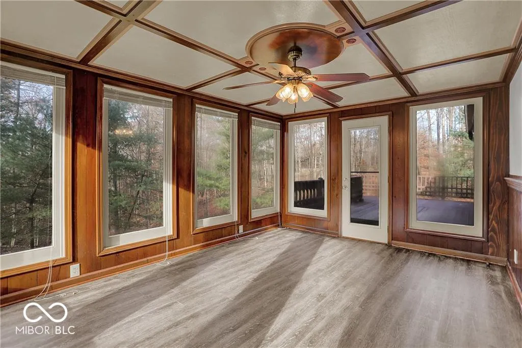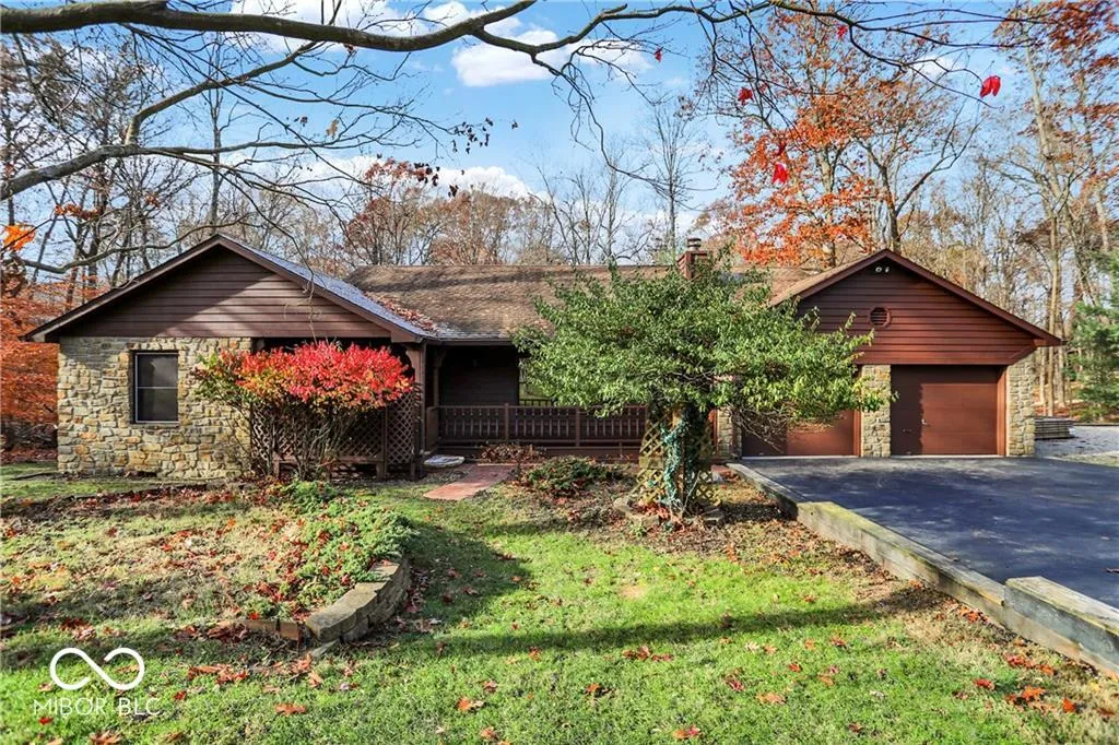 Wonderful opportunity to purchase on 500-acre Lamb Lake. Sitting on almost an acre, this ranch home with finished walk out basement is nestled in a beautiful wooded setting. Home is located off the water, but all lake rights are included and can be enjoyed. Home structure is a wonderful mixture of natural stone and wood exterior with private backyard and multi-level decks offering plenty of area to entertain. Open living room with natural stone fireplace leading into dining and large kitchen with Nichols cabinets. Open basement with 2nd natural stone fireplace, 2 bonus rooms currently used as 2nd and 3rd bedrooms, or could be office and gym. Level driveway with extra gravel area to park & 10×10 workshop in garage. Exterior painted and new gutters in ’22. Fresh paint on both decks and glassed-in porch. Hard wood flooring on main level, carpet in master, LVT flooring throughout walk out basement & upper level fully enclosed glass porch installed in ’22. Recently updated stone bathroom countertops. Incredible price point for Lamb Lake community where you can enjoy long days on the water enjoying water sports, fishing, or anchoring in coves to enjoy crystal clear water. Close proximity to hiking trails and community activities all year long. 45 min to the airport or downtown Indy, 30 min to Greenwood or Columbus and just 20 mins to historic Nashville and Brown county state park.