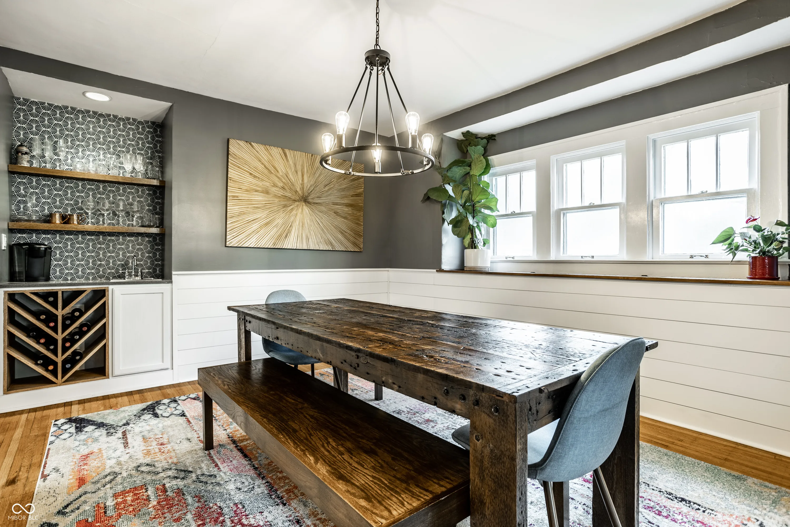 Nestled in the Warfleigh neighborhood, this wonderful house is awaiting its next chapter. Built in 1922, this home offers a blend of classic charm and modern potential, promising a lifestyle of comfort. Imagine evenings spent in the living room, the fireplace casting a warm glow across the crown molding, creating a cozy atmosphere for relaxation. The bar, complete with shaker cabinets, offers an ideal space to craft your favorite cocktails, making it easy to host friends. The kitchen features shaker cabinets, granite countertops, a backsplash, and a high-end range oven, offering an inspiring space for culinary creations. The property features a deck and outdoor dining area, perfect for enjoying the outdoors. The fenced backyard allows for peace of mind. Easy walk-ability to all of what Broad Ripple has to offer! New Fridge, Mudroom in 2022. New Furnace, completely new bathroom upstairs, and dining room updates 2023. New Roof and crawl space insulation 2024.