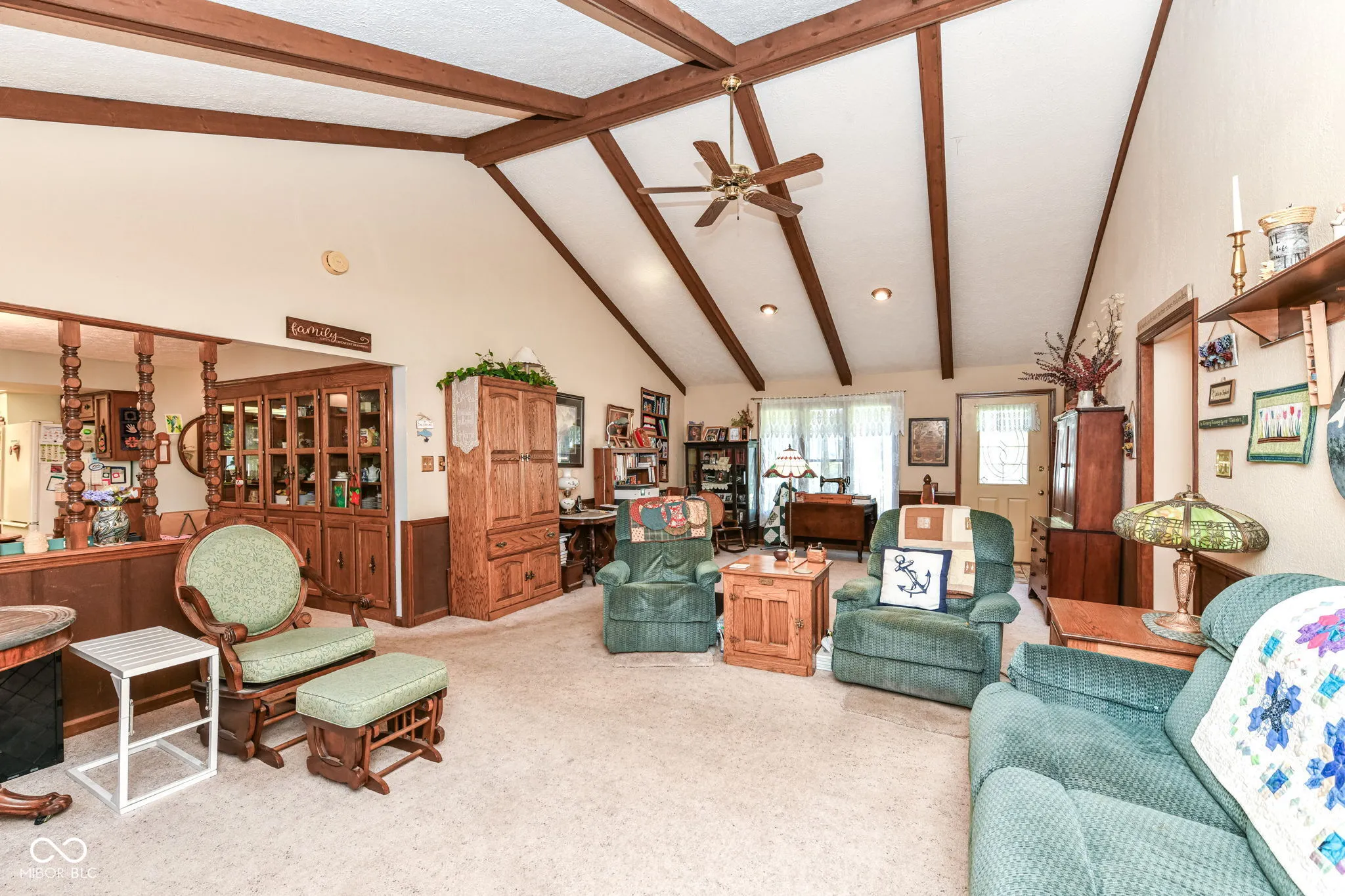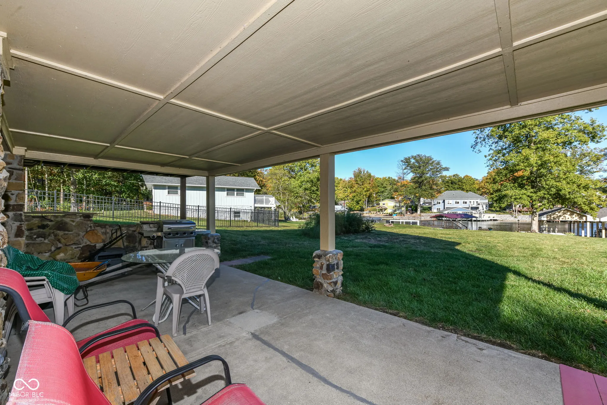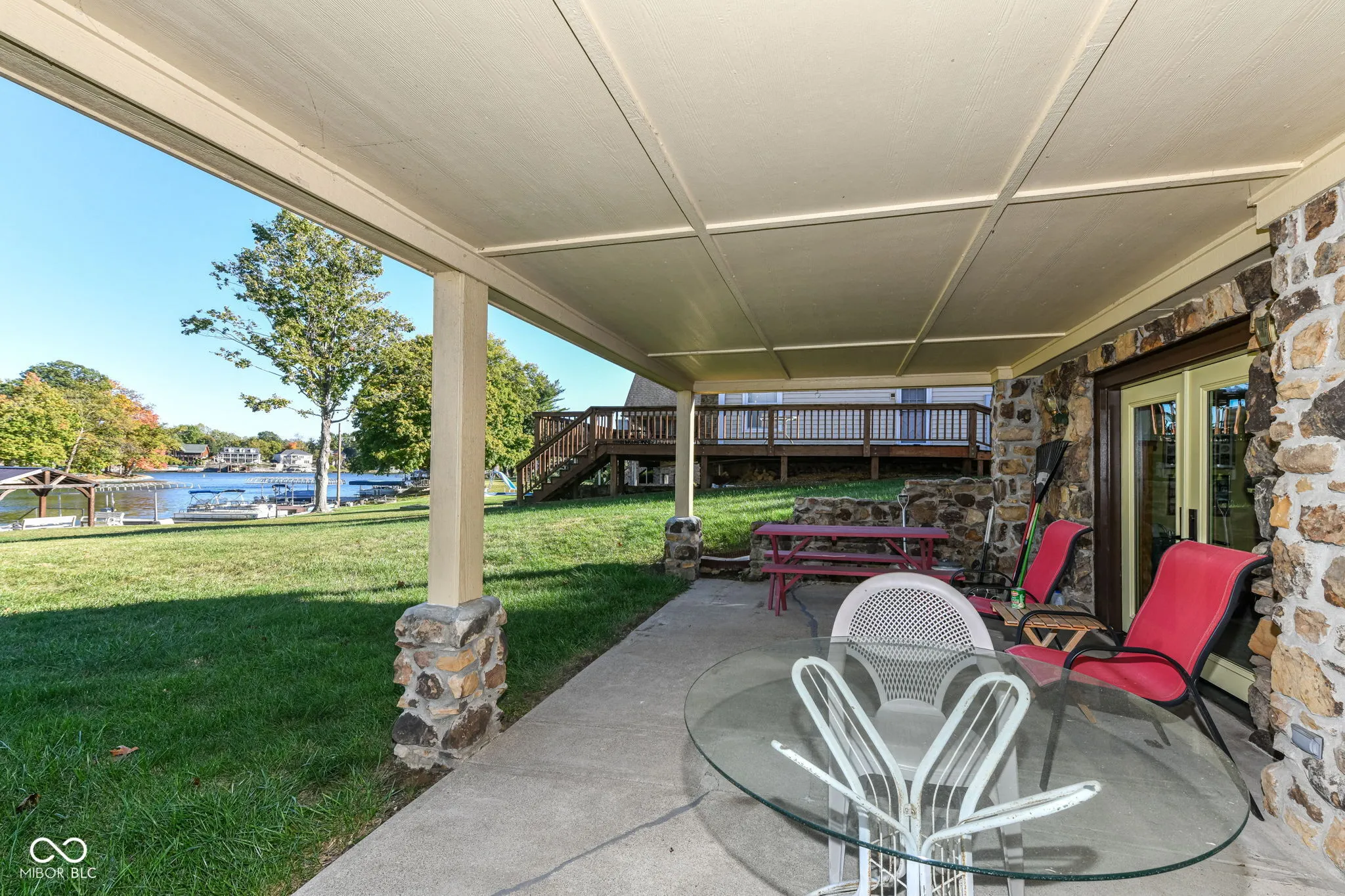 Located on one of the lake’s most desirable coves, this waterfront home offers a rare combination of calm water, breathtaking main-body views, and easy, flat access to the shoreline. A new 2023 dock and covered boat lift with a permanent roof provide excellent functionality and value, while the oversized dock offers generous space for entertaining or relaxing at the water’s edge. The exterior’s stone-and-stucco design gives the home timeless appeal. Inside, the property retains its original 1970s charm, ready for your personal touch. The kitchen includes all appliances and could easily be brightened with painted cabinets and updated countertops. The dining room, open to the great room, features a unique built-in china cabinet-perfect for storage or display. The great room offers cathedral ceilings, rustic beams, and a wood-burning fireplace, creating a warm and inviting space with beautiful lake views. Three bedrooms and two full baths are located on the main level, including a primary suite with an updated walk-in shower. The 28 14 three-season room, added in 2011, can be accessed from two bedrooms and provides stunning views of the lake-ideal for morning coffee or evening relaxation. The walkout basement expands your living space with a large recreation area, gas-starter fireplace, and third full bath. Whether you’re seeking a full-time residence or weekend retreat, 139 Mill Springs offers incredible potential in one of Heritage Lake’s premier locations-complete with modern dock features, serene surroundings, and endless opportunities to enjoy the lake lifestyle.