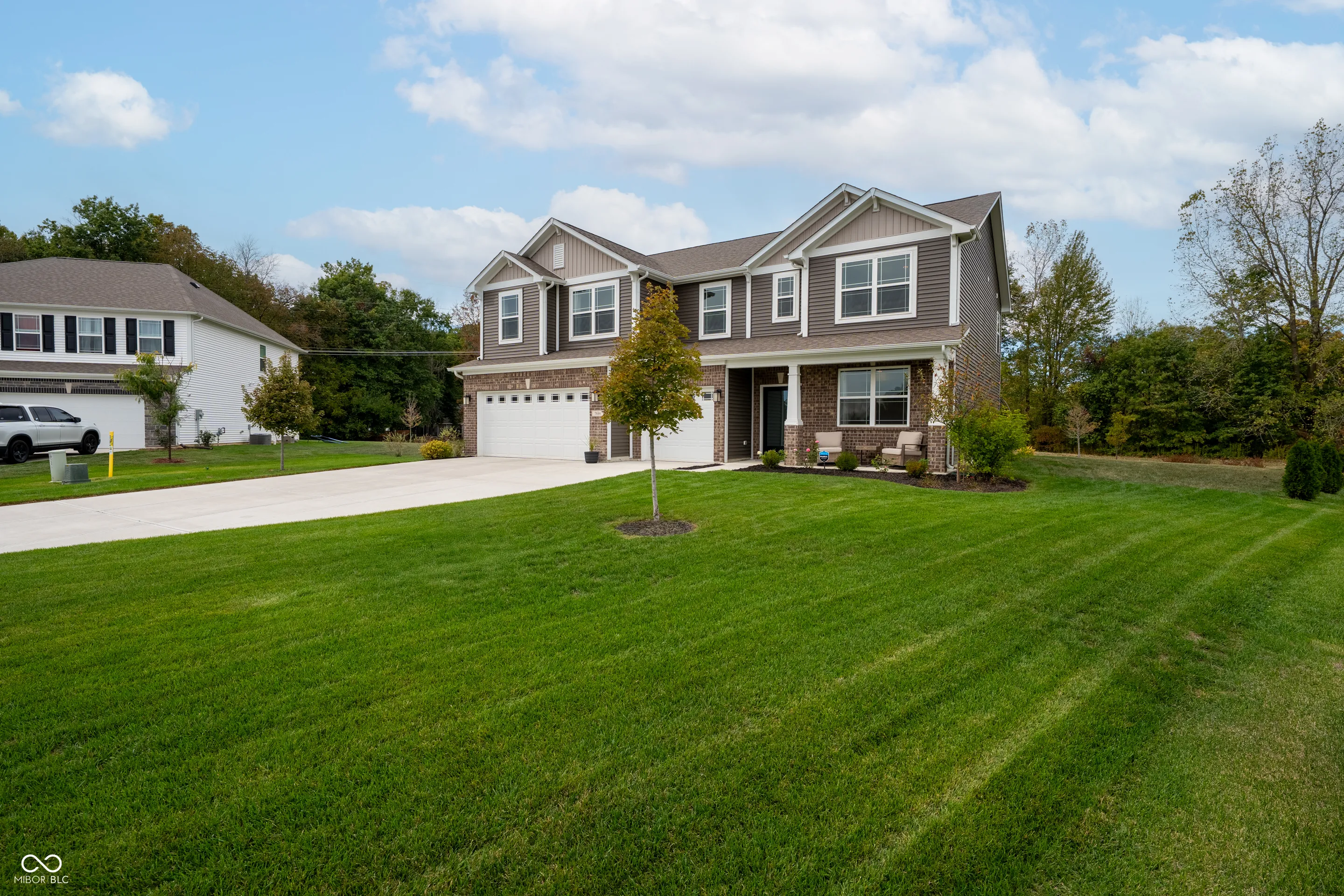 Constructed in 2023, this home is in mint condition and ready to welcome a new owner. Situated on a premium lot just under .5 acres, this home is backed up to quiet woods owned by Avon High School where you can enjoy a cozy fire with a view from your covered patio. The heart of this home is undoubtedly its spacious kitchen, complete with shaker cabinets and stone countertops. A large kitchen island offers plenty of space for meal preparation and casual dining, while the brand-new backsplash adds a touch of elegance. The kitchen bar provides an additional area for seating and entertaining. In the living room, the fireplace creates a warm and inviting ambiance, perfect for relaxing. The spacious primary bedroom and en suite bathroom offer a spa-like experience, featuring a full tub, double vanity, two walk in closets and a walk-in shower. The property boasts five bedrooms and three full bathrooms spread across two stories, providing ample space and privacy. The outdoor dining area is perfect for hosting gatherings. This residence offers a perfect blend of modern amenities and comfortable living, creating an exceptional place to call home. Recent updates include back splash, newly planted trees around property, pergola, and the outdoor fireplace.