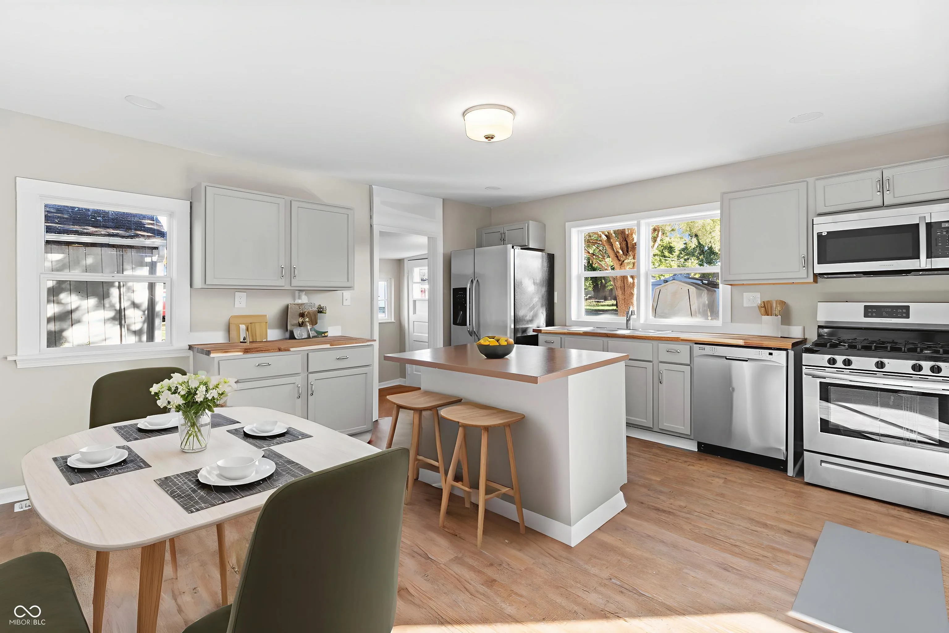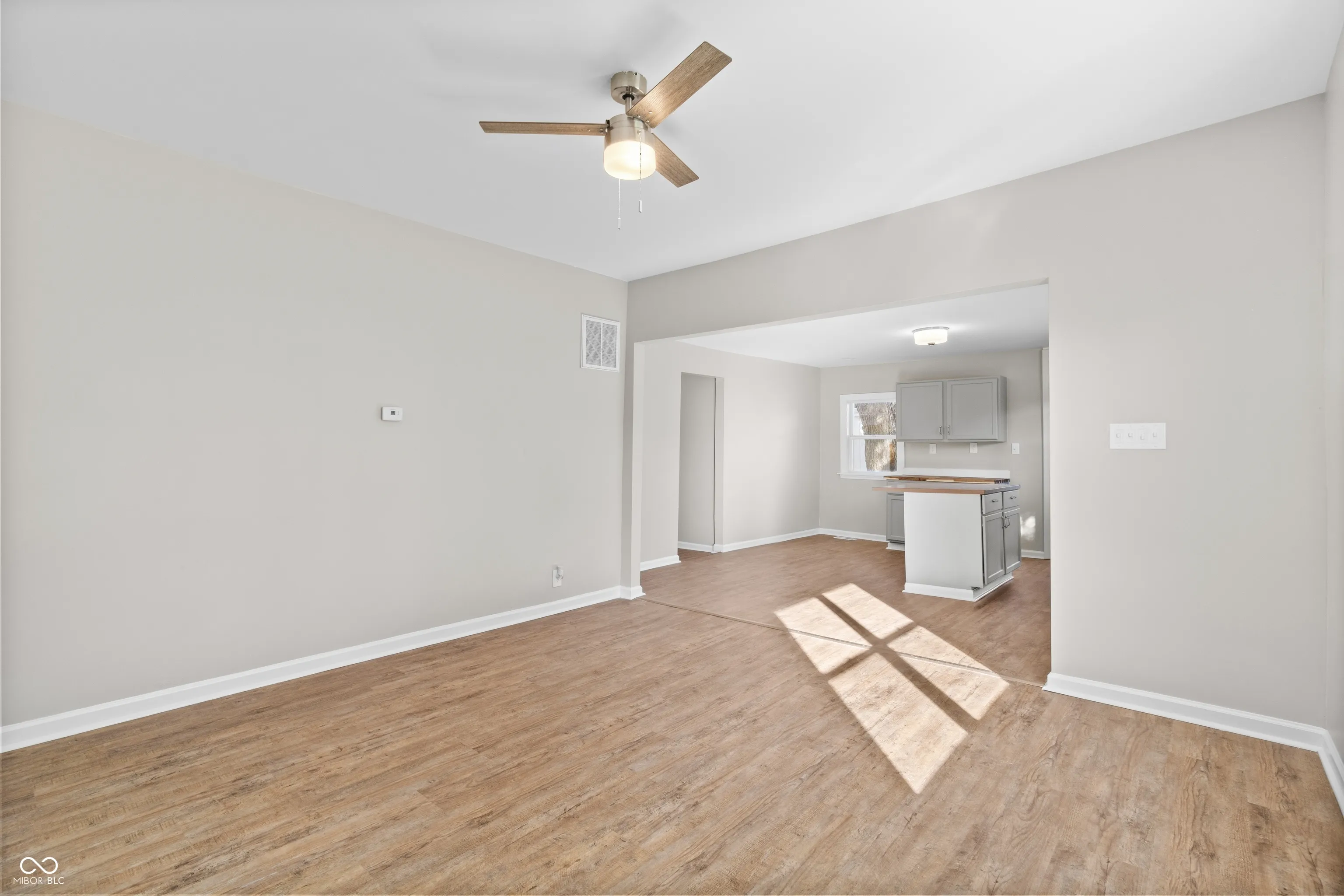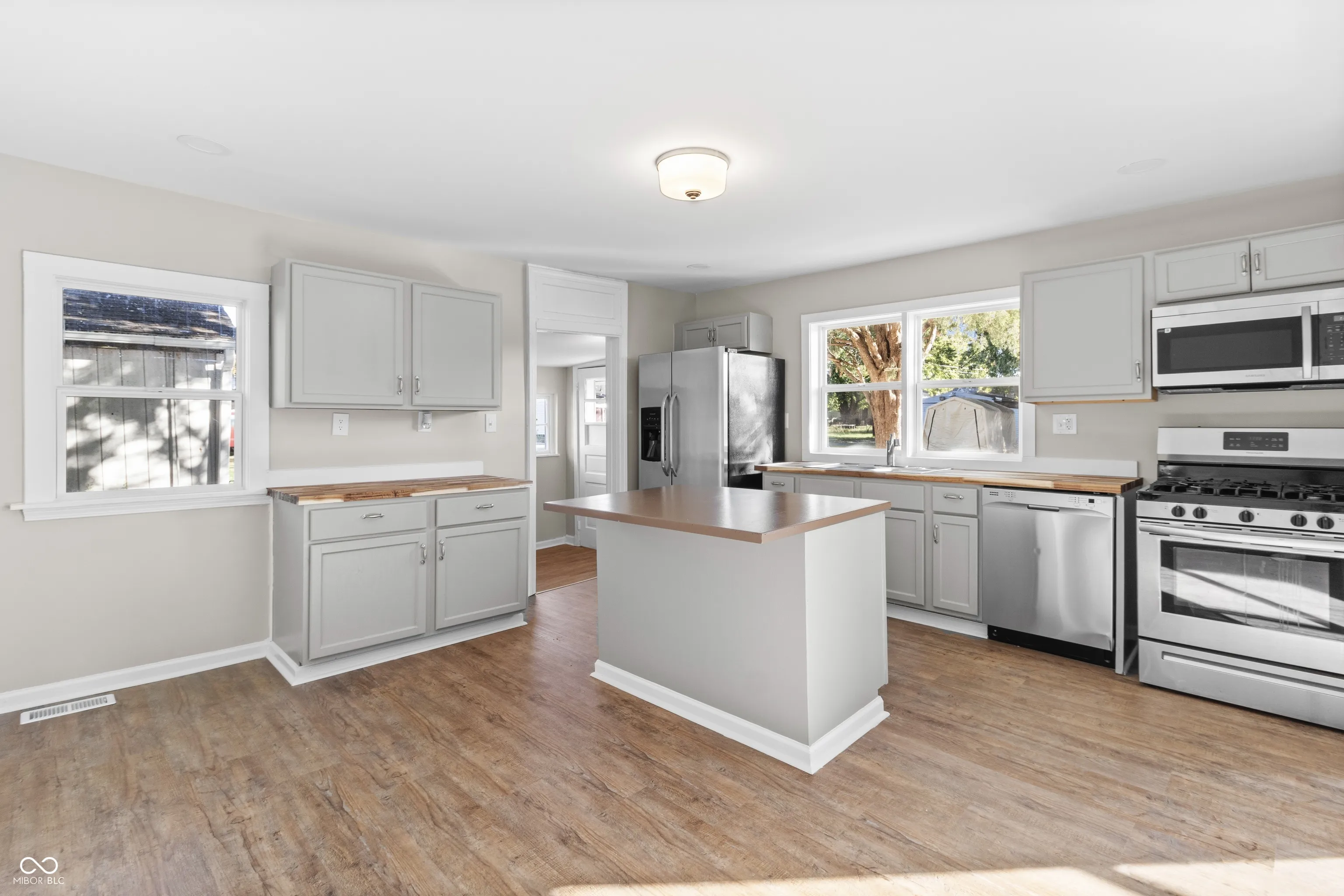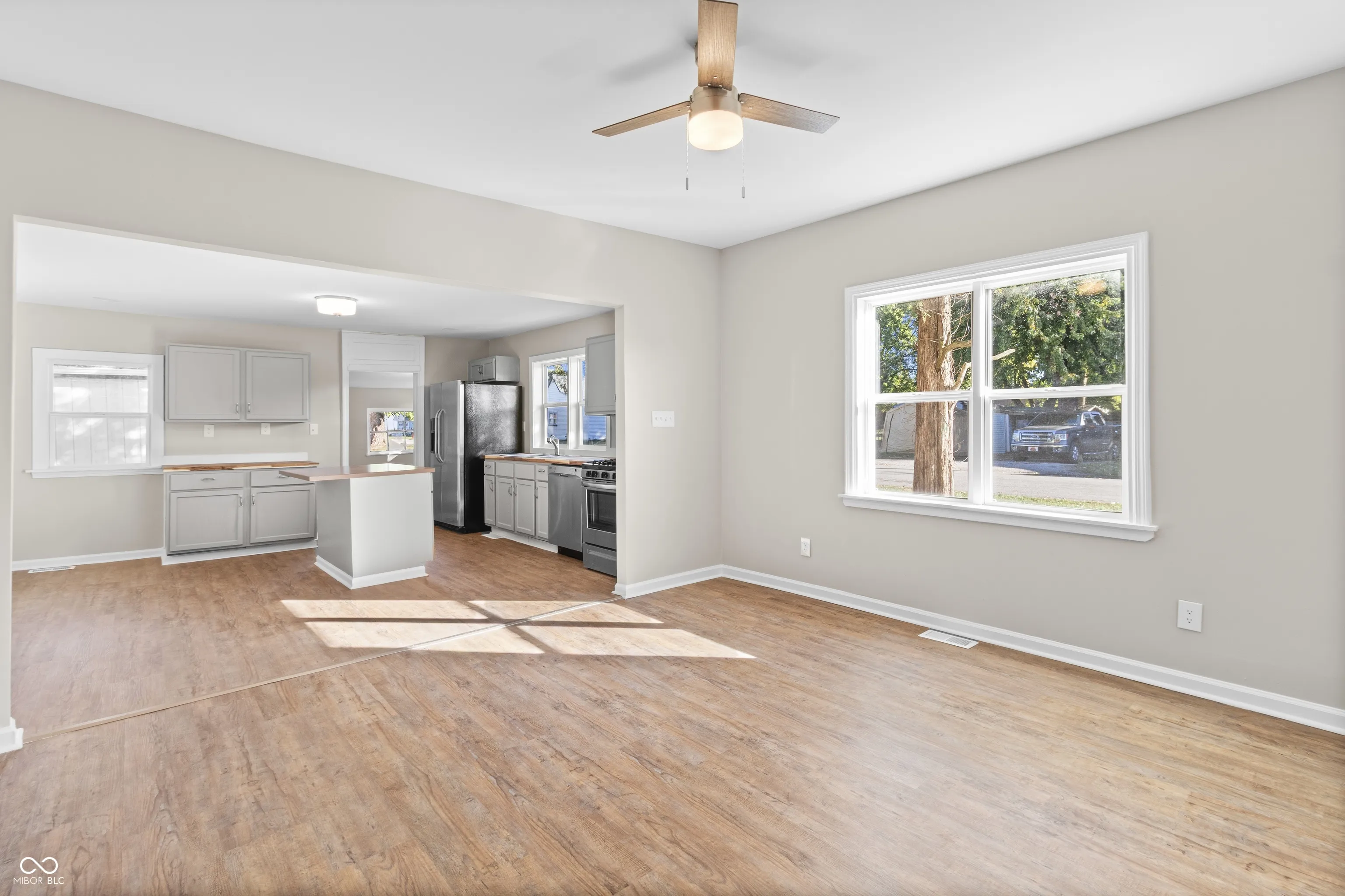 Fully Remodeled Home on an Oversized Corner Lot! Welcome to this beautifully remodeled 2-bedroom home that feels far larger than expected, thanks to its open-concept layout connecting the kitchen, dining, and living spaces. Every corner of this home has been thoughtfully updated to provide both style and comfort. Step into the spacious kitchen, featuring tons of cabinets and countertop space, plus a center island with an overhang-perfect for pulling up a few stools for quick meals or casual conversation. The kitchen flows seamlessly into the living and dining areas, making it ideal for entertaining or family gatherings. The extra-large bathroom includes a dual vanity setup-one side perfect for use as a convenient changing station or additional counter space. Just off the hallway, a flexible open storage area offers the perfect spot for a large pantry or additional shelving-ideal for food storage or organization. Enjoy peaceful mornings in the fully enclosed front porch, lined wall-to-wall with windows for natural light and a relaxing atmosphere. Outside, the extra-large corner lot provides abundant yard space, while the 1-car garage offers secure parking or workshop potential. And one of the biggest highlights-a long-lasting metal roof known for its exceptional durability and low maintenance-gives peace of mind for decades to come. If you’re looking for a move-in ready home with space, updates, and lasting quality, this one checks all the boxes!