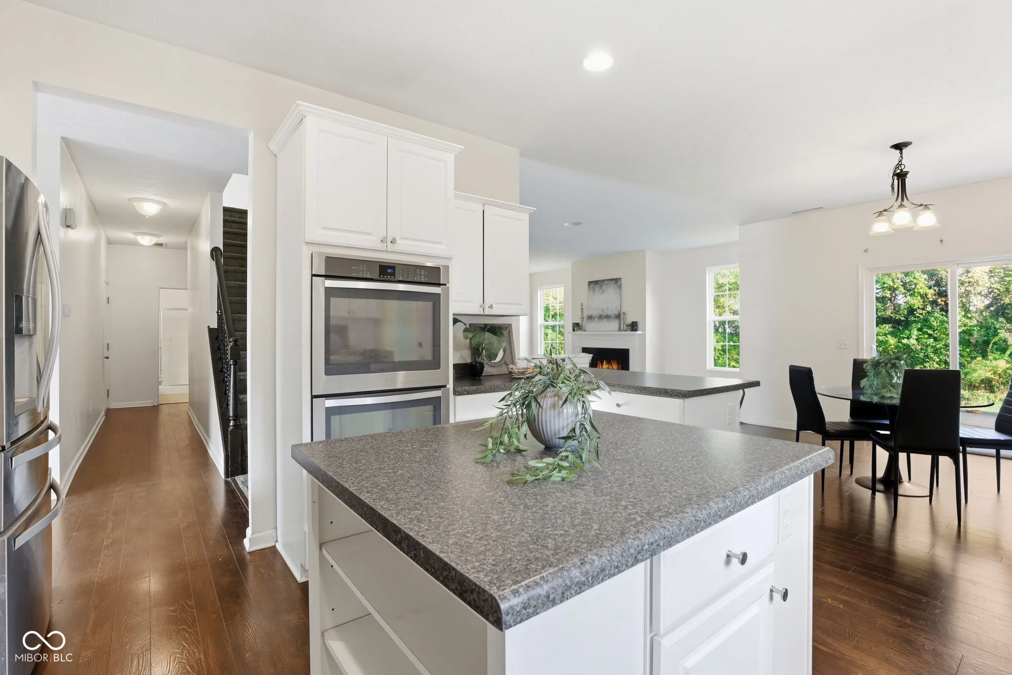 Nestled at 4646 Crosby Buck Dr, Indianapolis, IN, this home in Marion County presents an exceptional living experience. Imagine preparing culinary masterpieces in a kitchen designed for both functionality and aesthetic pleasure; the large kitchen island becomes a central gathering point, while the kitchen bar and peninsula offer additional seating and preparation space, all illuminated by the natural light streaming through the windows, showcasing the shaker cabinets and stone countertops, complemented by the convenience of a double oven and stovetop. The living room offers a space for relaxation and gathering, anchored by a fireplace that promises warmth and ambiance on cooler evenings. Retreat to a bathroom that provides a spa-like experience, featuring a walk-in shower and double vanity, offering both luxury and convenience. The primary bedroom provides an oasis of calm with its tray ceiling, adding an architectural detail that elevates the space. This residence offers five bedrooms and three full bathrooms, along with one half bathroom, thoughtfully distributed across two stories, providing ample space for comfortable living. An open floor plan creates an inviting atmosphere, encouraging effortless movement between spaces. Step outside onto the deck and envision enjoying the expansive 16335 square foot lot. With a living area encompassing 3301 square feet and built in 2017, this home is complete with a walk-in closet, offering significant storage. This 2017 residence promises a lifestyle of comfort and sophistication.