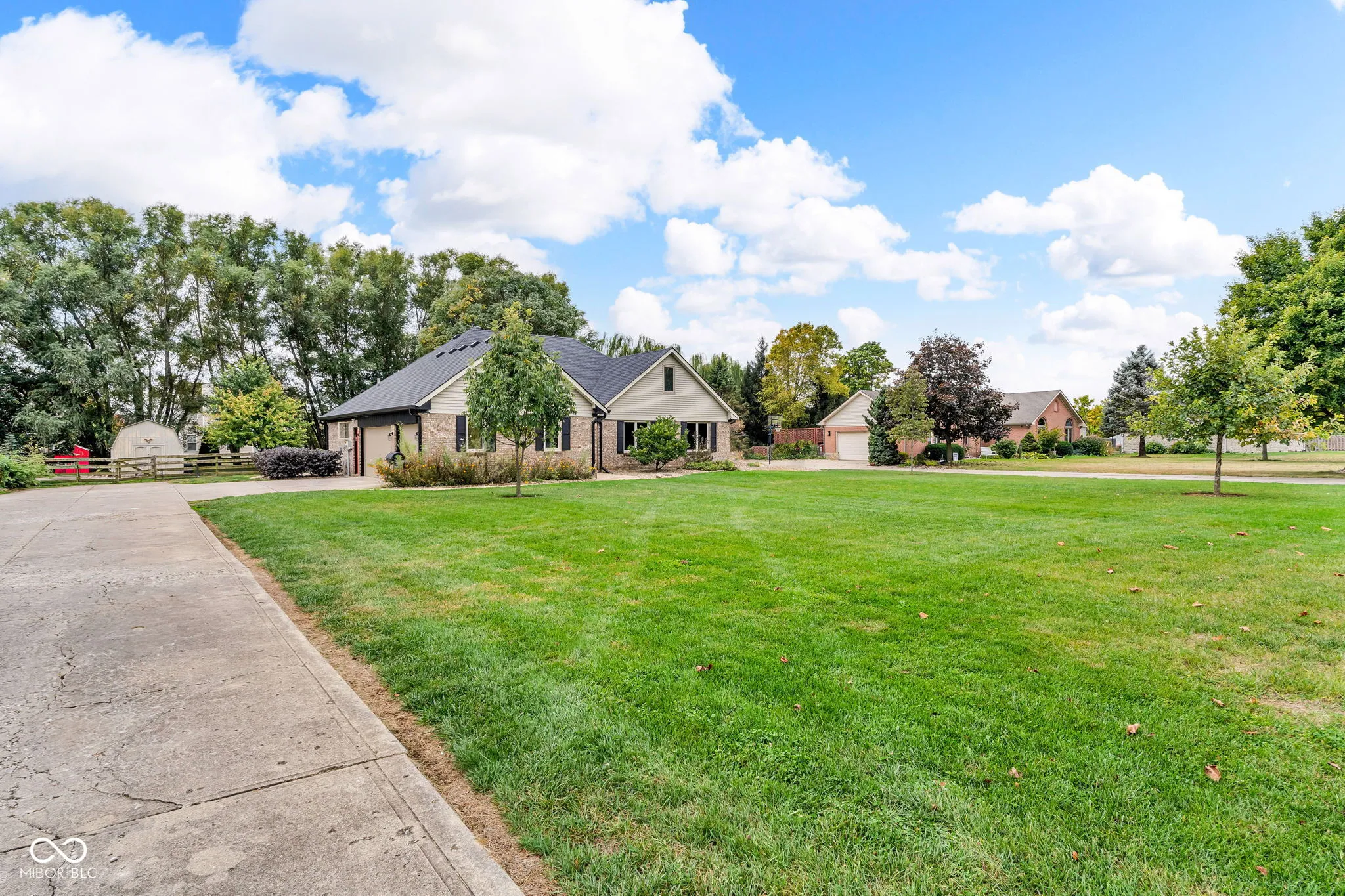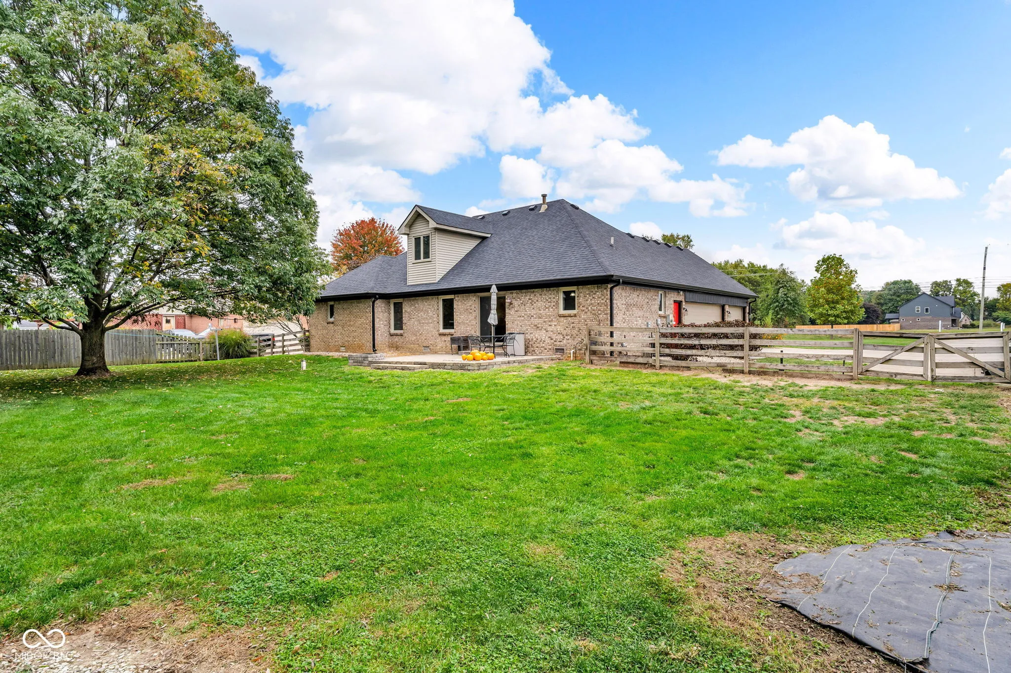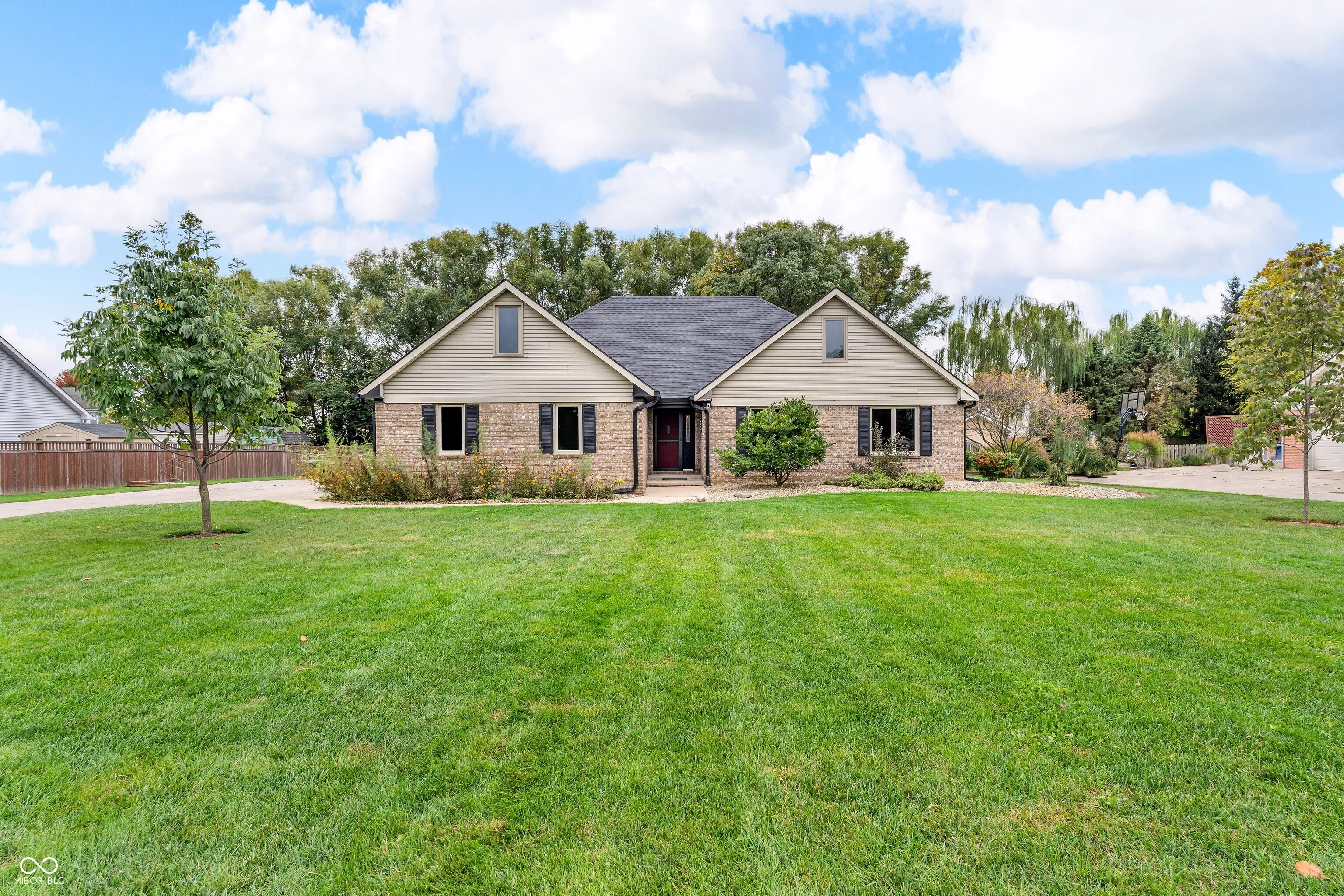 Brownsburg School District. All brick 1 1/2 level home featuring 4BR/3 Full BA along with a generously sized upper level bonus room. Spacious great room opens to Kitchen w/ceramic tiled floors, SS appliances and an abundance of cabinets. New carpet, laminate flooring and fresh paint in multiple areas. Master suite on main level offers walk-in closet, full bath w/full shower stall & double sinks. Upper level 4th bedroom has private bath and bonus room. Windows – 2017. Water Heater – 2018. HVAC – 2020. Roof – 2023. Oversized 3 car garage. Fully fenced .61 acre lot with plenty of open space to garden and play. Situated near Eagle Creek Golf Course and Park.