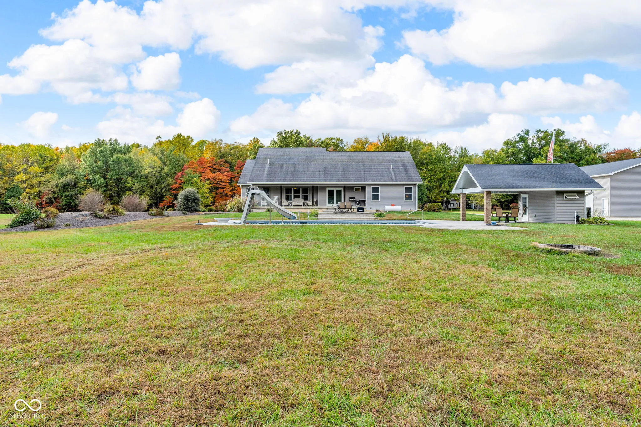 Welcome to your very own private oasis – four acres of peace, privacy, and perfection. This beautiful custom-built home is ready to welcome you! Located just minutes from I-70, this property offers nearly 5,000 square feet of living space and truly has it all. Step inside, and you’ll instantly see why you’ll want to start packing your boxes – the immaculate layout is designed for both comfort and entertaining. You’ll never run out of space for guests! The main level features a bright, open floor plan with a spacious living room, formal dining area, laundry room, and three bedrooms, including two full baths and one half baths. But here’s something special – two kitchens! That’s right – the main kitchen is a chef’s dream with Amish built cabinets, complete with everything you need to cook up your favorite meals. And downstairs, the second kitchen makes it easy to host your next big gathering, with all appliances staying! Need extra space? The bonus room above the garage could easily become a fourth bedroom with the addition of a closet – and the basement offers potential for a fifth bedroom too. The basement is an entertainer’s paradise – featuring a cozy fireplace, pool table, kitchen, a potential home gym, and even a secure room perfect for storing your firearms or valuables. Step outside, and the fun continues – your in-ground pool with a shelter and pool house makes summer living an absolute dream. There’s also an attached two-car garage and a heated pole barn with electric, an office, and doors large enough for all your favorite toys and equipment. This home truly has everything you’ve been dreaming of – and more. Come experience it for yourself. Your oasis is waiting.