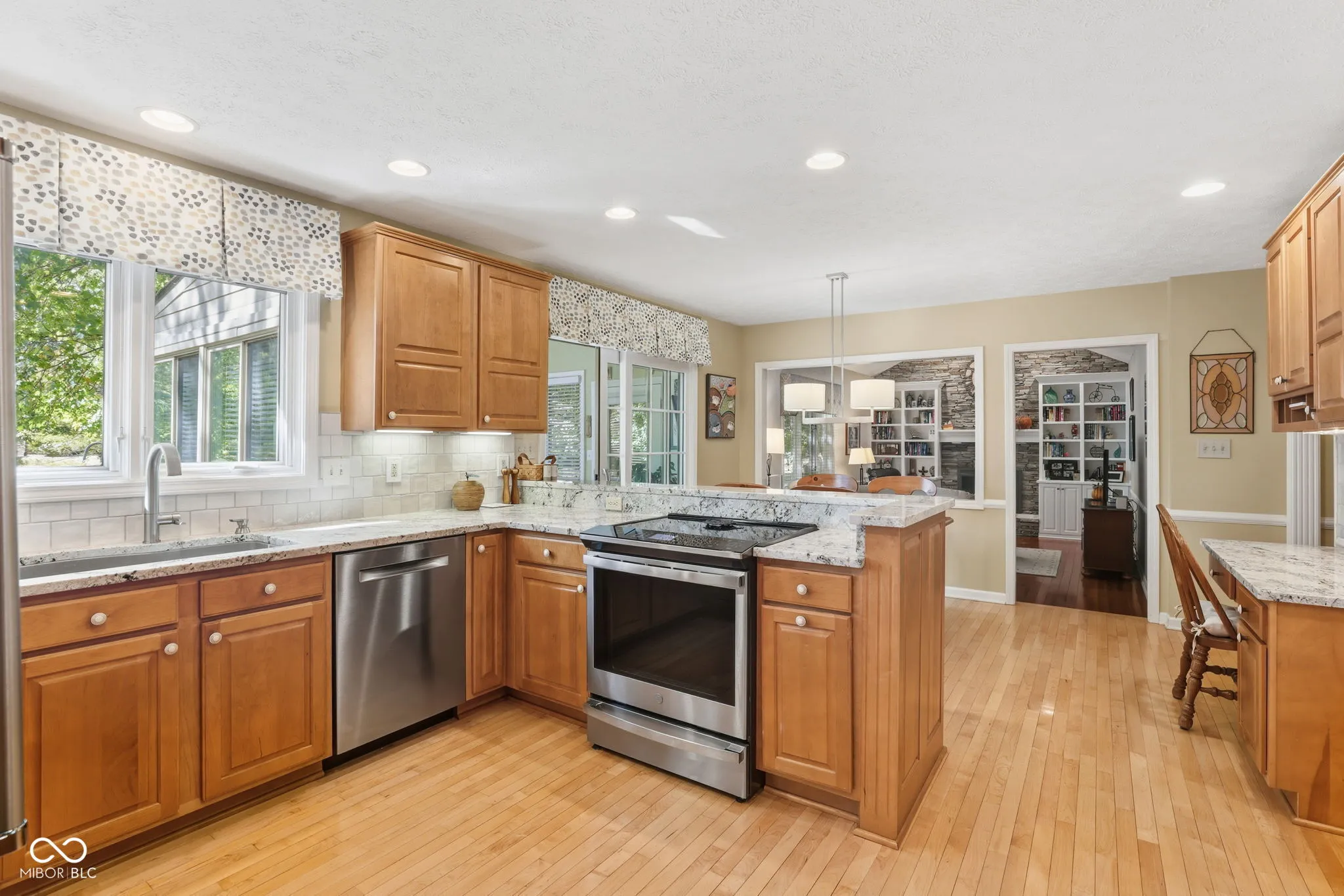 Welcome to the popular neighborhood of Village Farms. Situated on a cul-de-sac .38 of an acre lot, this beautiful home offers so much. Enjoy your coffee in the updated kitchen, or head to the 3 season sunroom and enjoy the park-like setting of your backyard. Entertain guests cooking on your newer induction range/oven, eating in the formal dining room or have a BBQ on the patio while playing basketball in the driveway. Grab your favorite novel and cozy up to the fireplace in the family room. Primary bedroom offers cathedral ceiling, large walk in closet and an updated bathroom. Updates within last 4 years: Roof & gutters, tankless water heater, induction range, dishwasher, refrigerator, water softener, front door, plantation shutters, crawlspace insulation, kitchen granite, sink & backsplash, primary bedroom hardwood. Seller has done many updates throughout the years, windows, siding, flooring, kitchen, bathrooms, etc. Sellers have meticulously maintained this home and it shows. Neighborhood offers so many amenities: Clubhouse, Pool, Pickleball & Tennis Courts, Sand Volleyball, Playground and many activities. Original owners. Schedule your showing today!