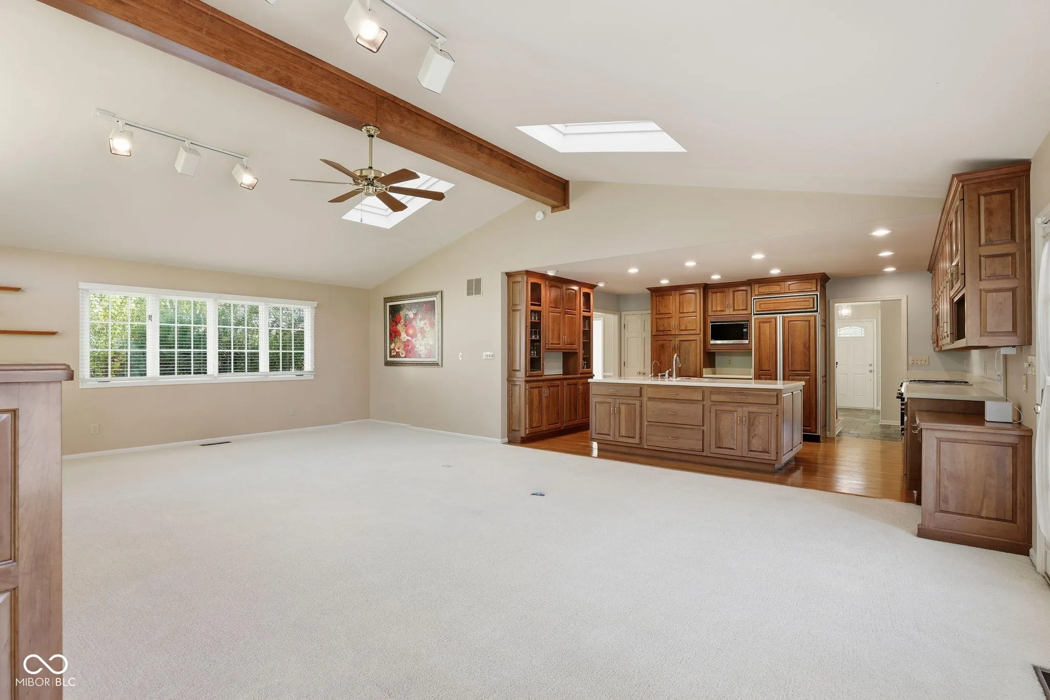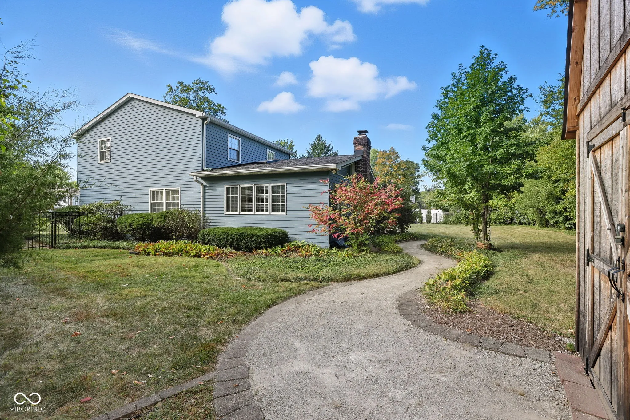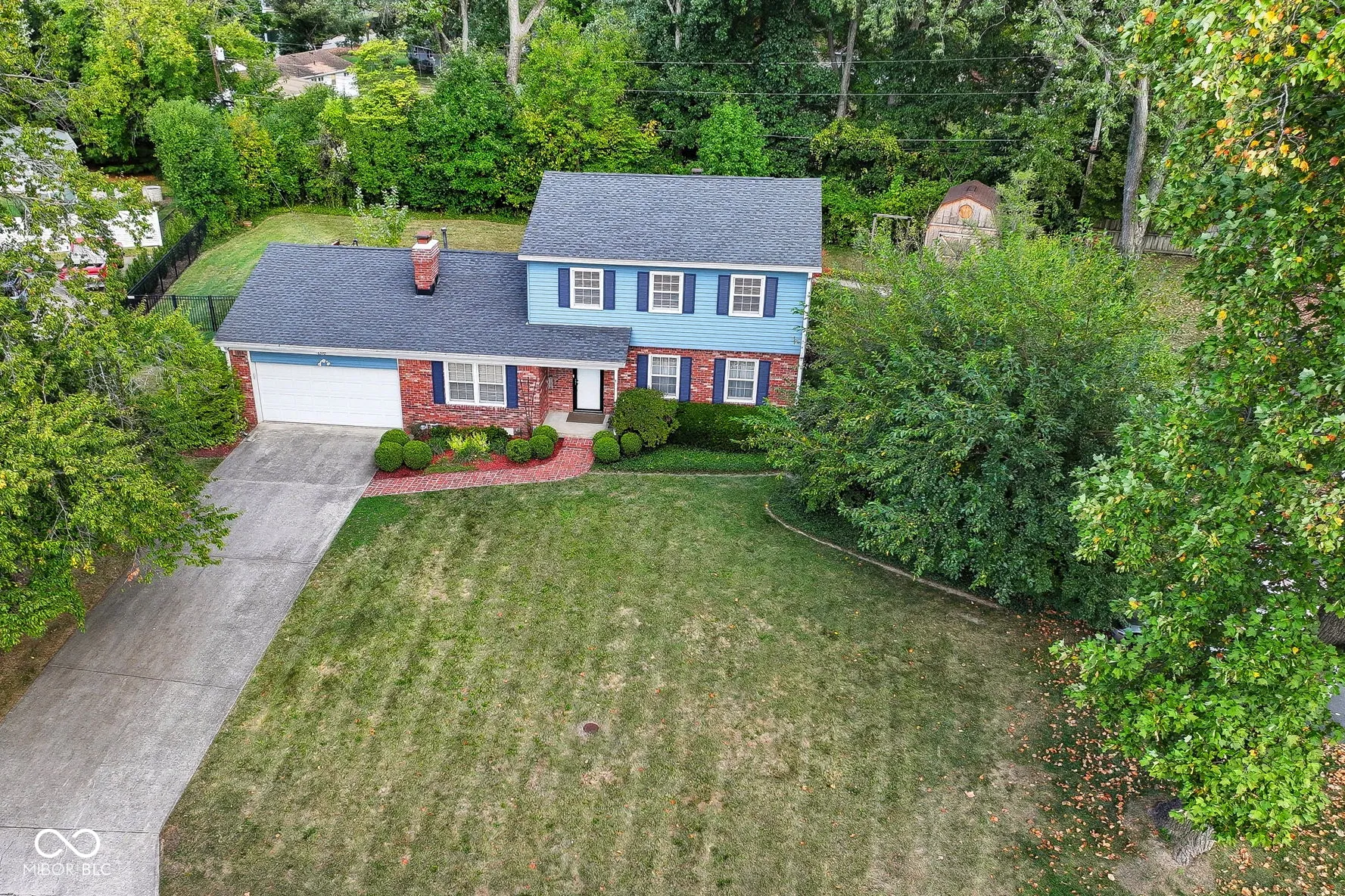Welcome home to this inviting 3-bedroom, 2.5-bath two-story in a perfect location on the northeast side of Indianapolis! You will find this home filled with warmth and natural light, offering endless charm and comfortable living spaces throughout. From the slate tile floors in the foyer to the real hardwood floors on the upper level, this home has all the charm! The main level features a private den/office with a gas log fireplace, an open formal living room, a formal dining room, and a beautiful kitchen with custom cherry cabinets, built in China cabinet, pantry and huge island. From the kitchen, you will step into the big, bright great room, with a centerpiece wood burning fireplace, large windows, a cathedral ceiling, and a beautiful wood beam creating an open, welcoming atmosphere. Upstairs, real hardwood floors bring classic beauty and character to each spacious bedroom including the primary suite with his-n-hers closets and a private en-suite bath. Outside, the large, fully fenced, tree-lined backyard provides plenty of room to play, garden, or simply enjoy peaceful evenings under the stars on the paver patio with a built in firepit. The large storage barn offers tons of space for lawn equipment, athletic gear, and more. The attached, finished garage has an additional storage area as well, perfect for a small workshop area. Located near schools, parks, shopping, and dining, this home offers the perfect balance of comfort, convenience, and charm – ready to be loved for years to come.