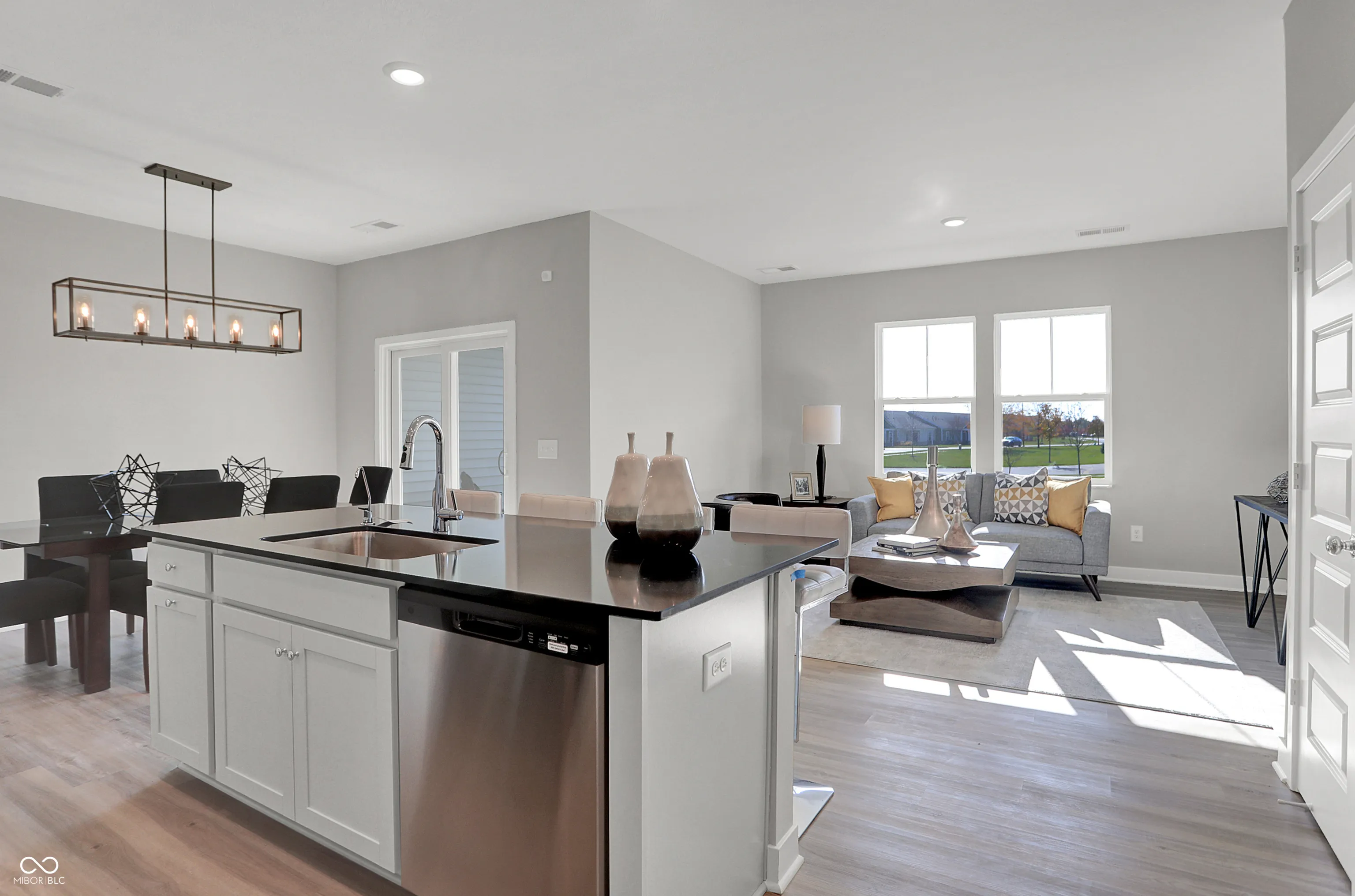 The Townhomes Collection features new townhome designs coming soon to the Abbott Commons master-planned community in Fishers, IN. Homeowners will enjoy a wide array of future amenities, including a swimming pool with a convenient pool house, a playground, and winding trails. Situated in the top-rated Hamilton Southeastern School Corporation, the area offers a family-friendly atmosphere with diverse attractions. Residents can attend year-round concerts and seasonal festivities at the Nickel Plate District Amphitheater. For outdoor enthusiasts, Geist Waterfront Park offers a beach, pirate-themed playground, picnic areas and a watercraft launch. This two-story townhome-style condo makes smart use of the available space. The open living area is on the first floor and includes a kitchen, family room and dining area with a covered patio attached. Upstairs are three bedrooms, including the owner’s suite, as well as a versatile loft and laundry room. *Photos/Tour of model may show features not selected in home.